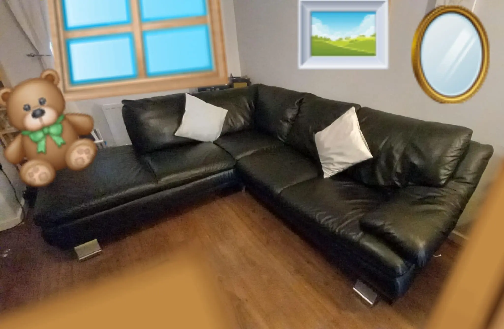 Black Leather Corner Sofa, good condition with a few minor signs of wear