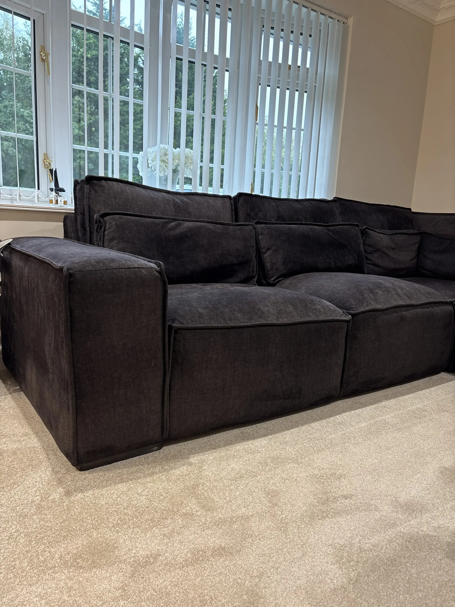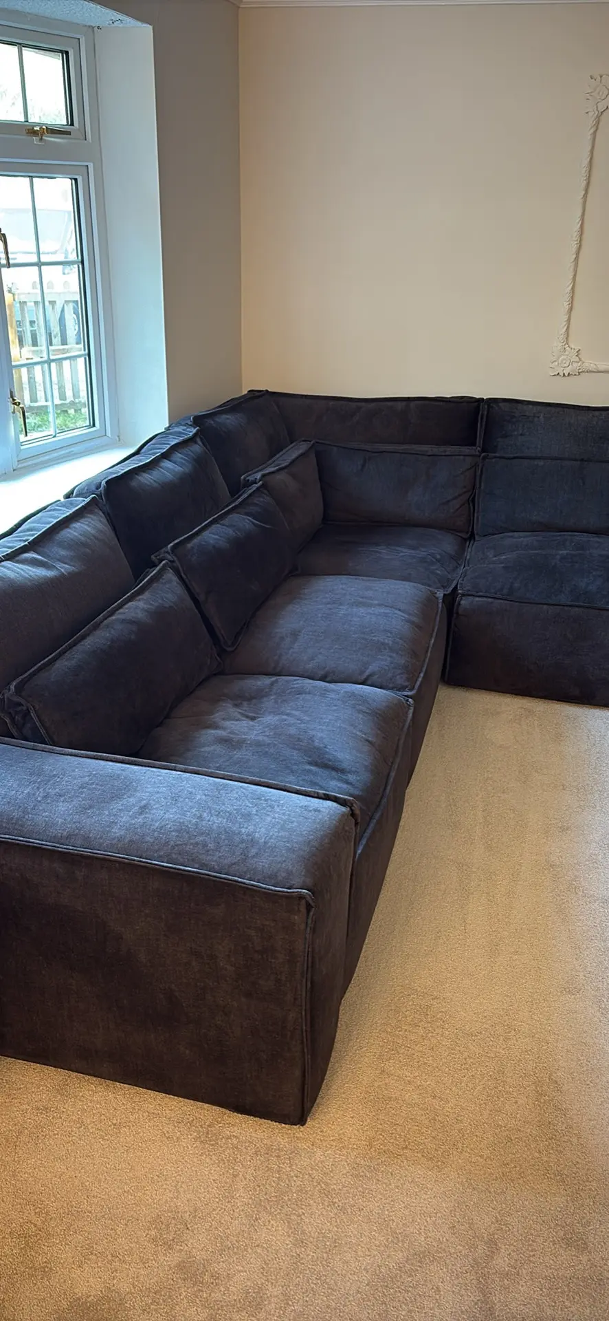 The sofa is 1 year old bought it for a house I rented for a year and now I have moved back home I need to sell it. It’s in great condition no marks or signs of wear. I believe this cost me £2300 so grab a bargain. Smoke and pet free