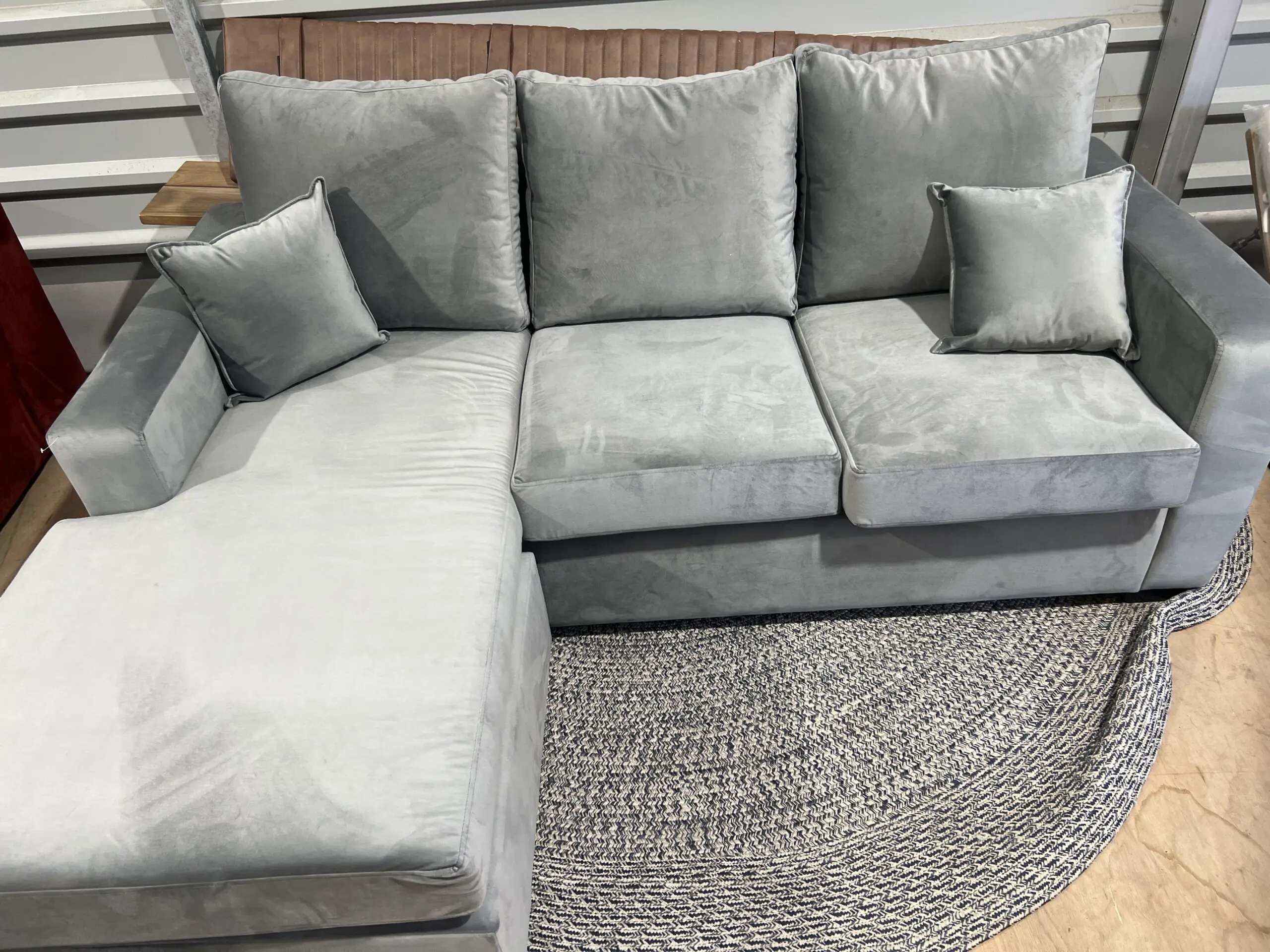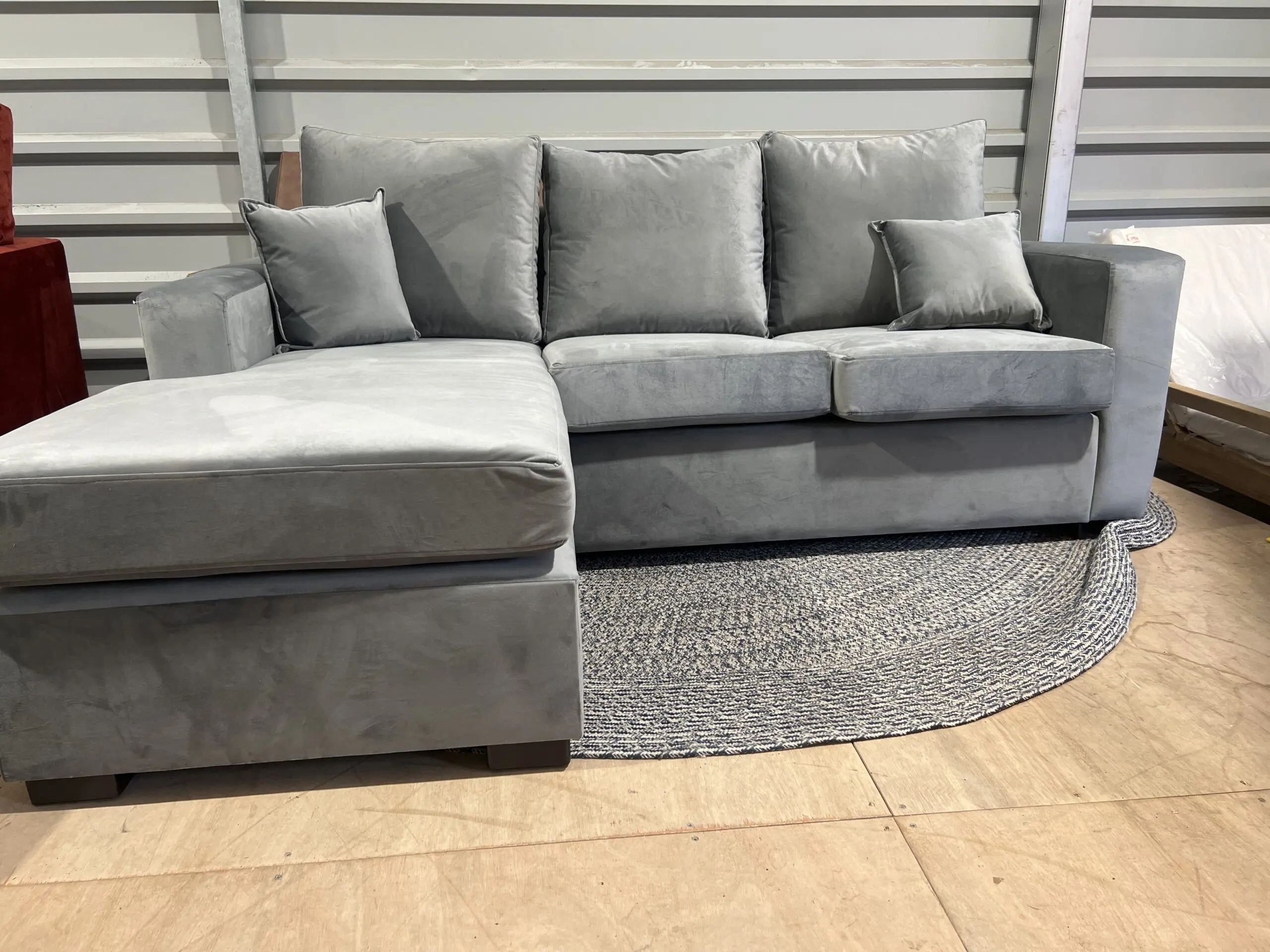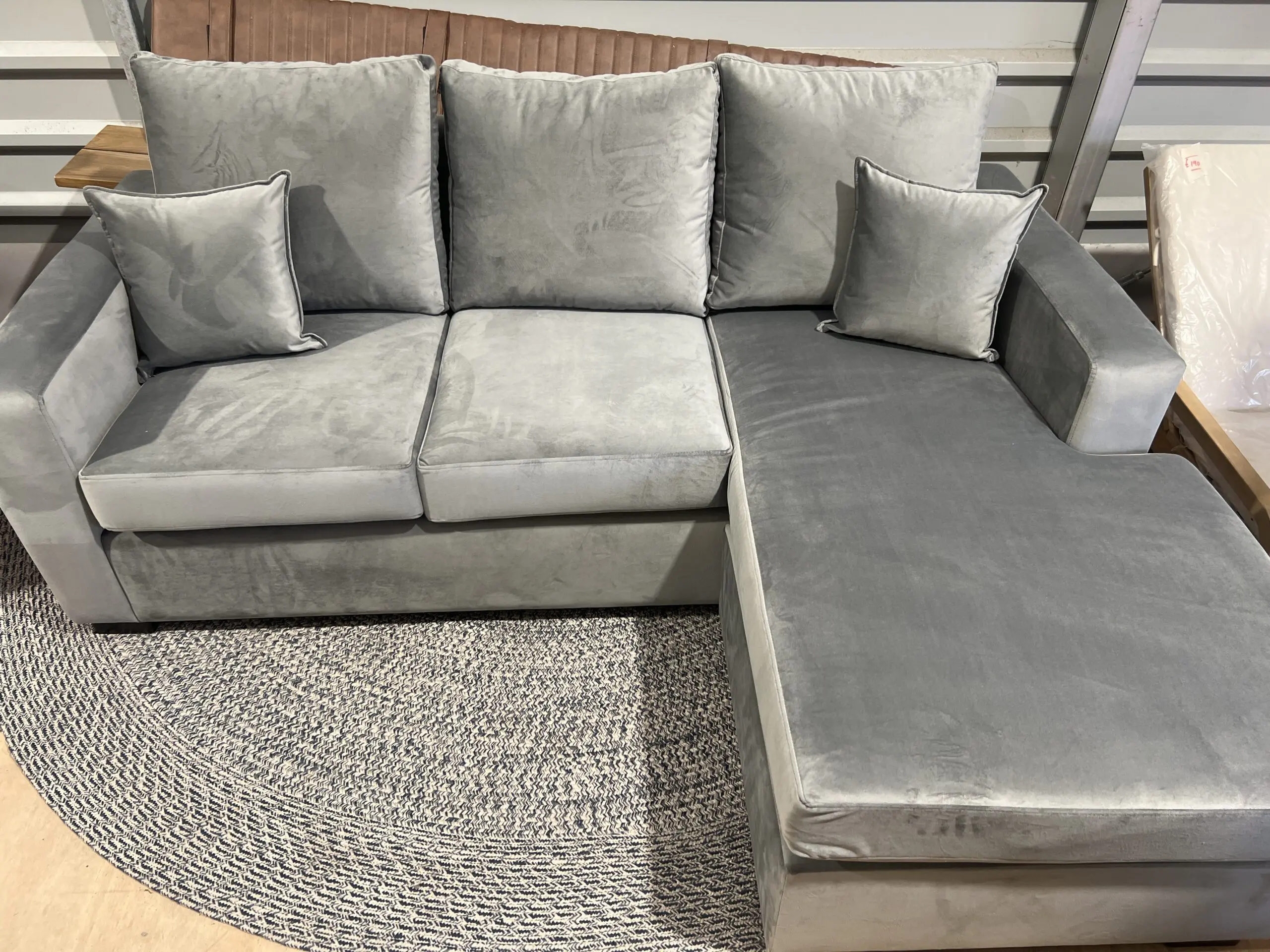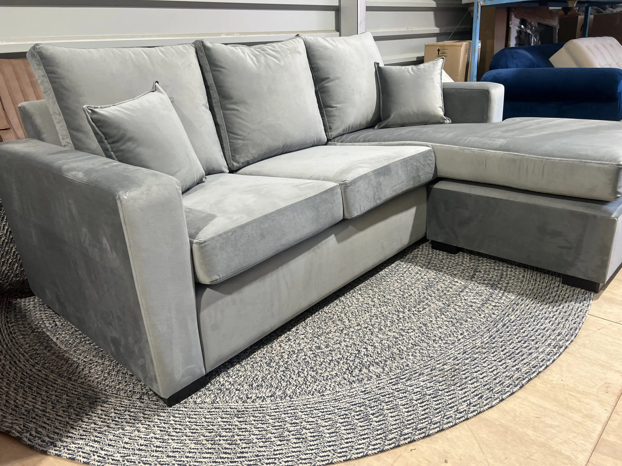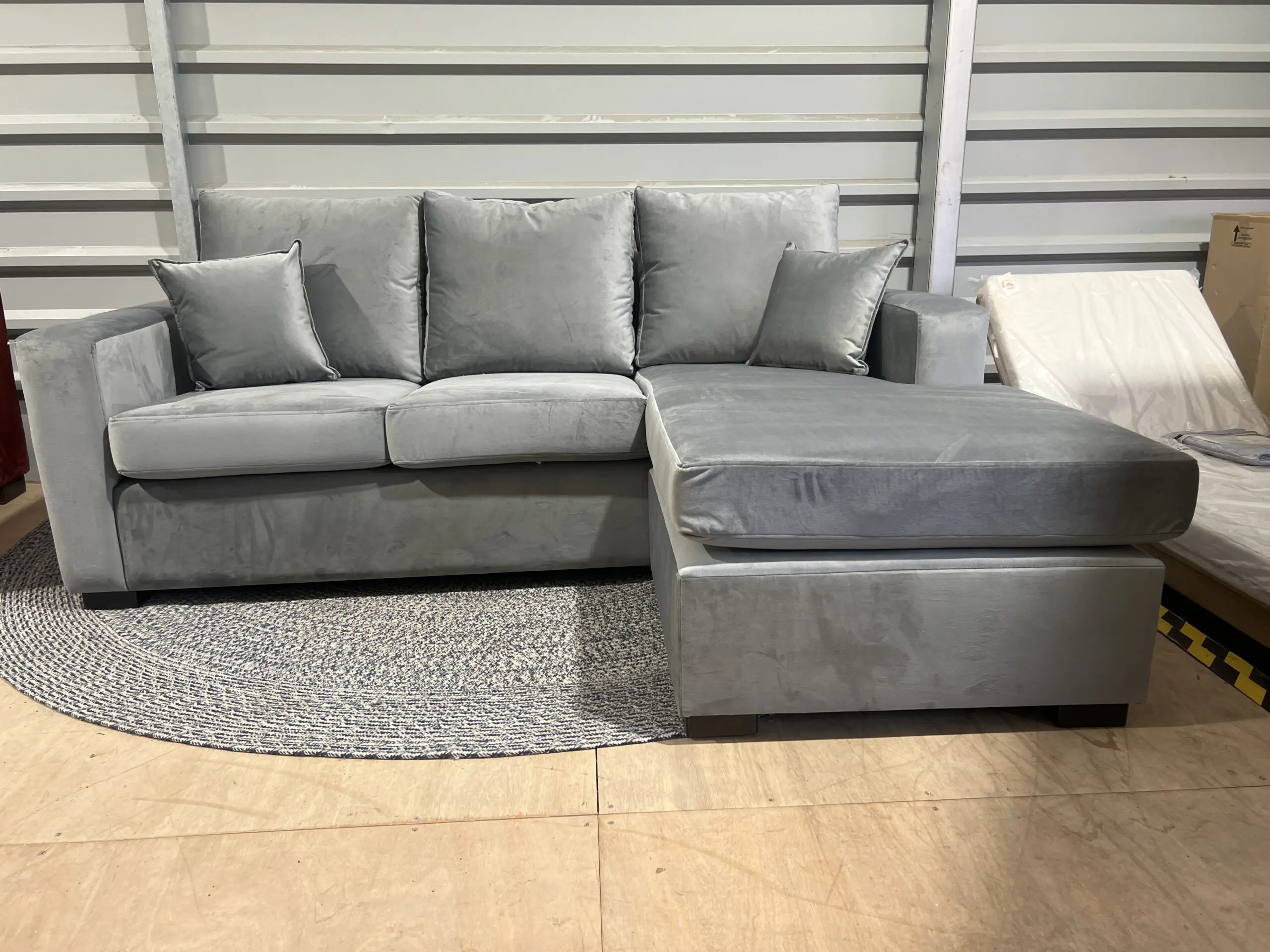 Brand New Corner Chaise Sofa Camden Grey Velvet