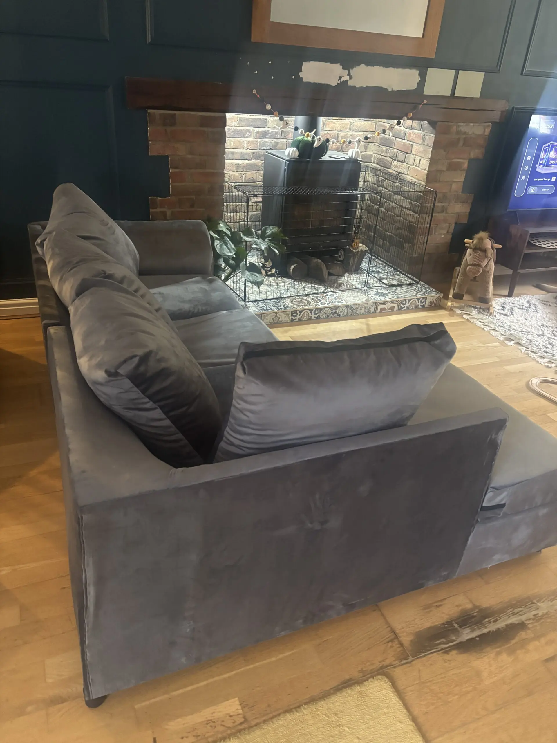 Brand new corner sofa – non-refundable but bought the wrong thing! Non-smoker and no pets allowed in that room so perfect condition. Dark grey satin finish. Lovely sofa!