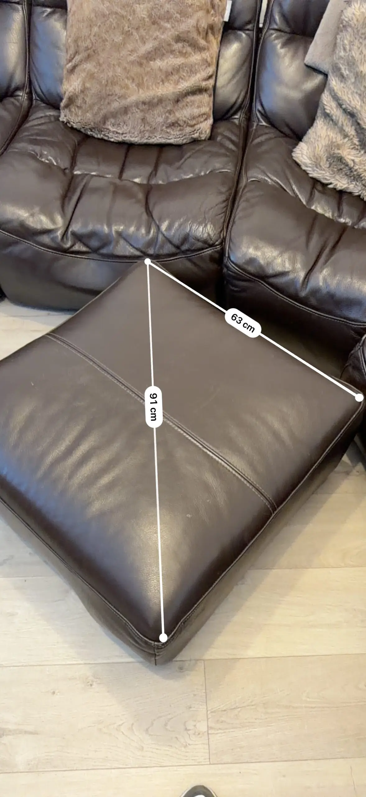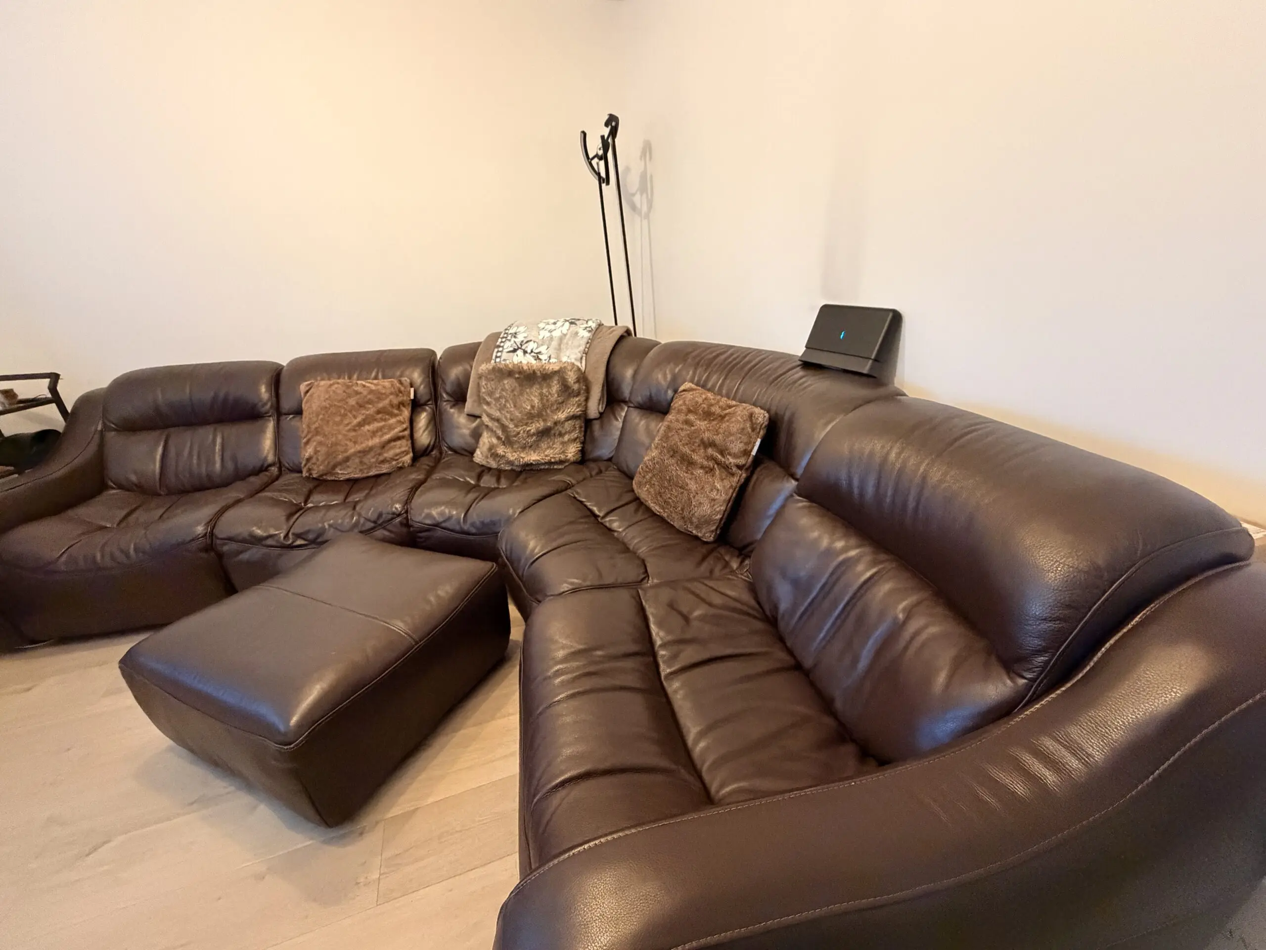 brown leather corner sofa (5 sections) and poufee