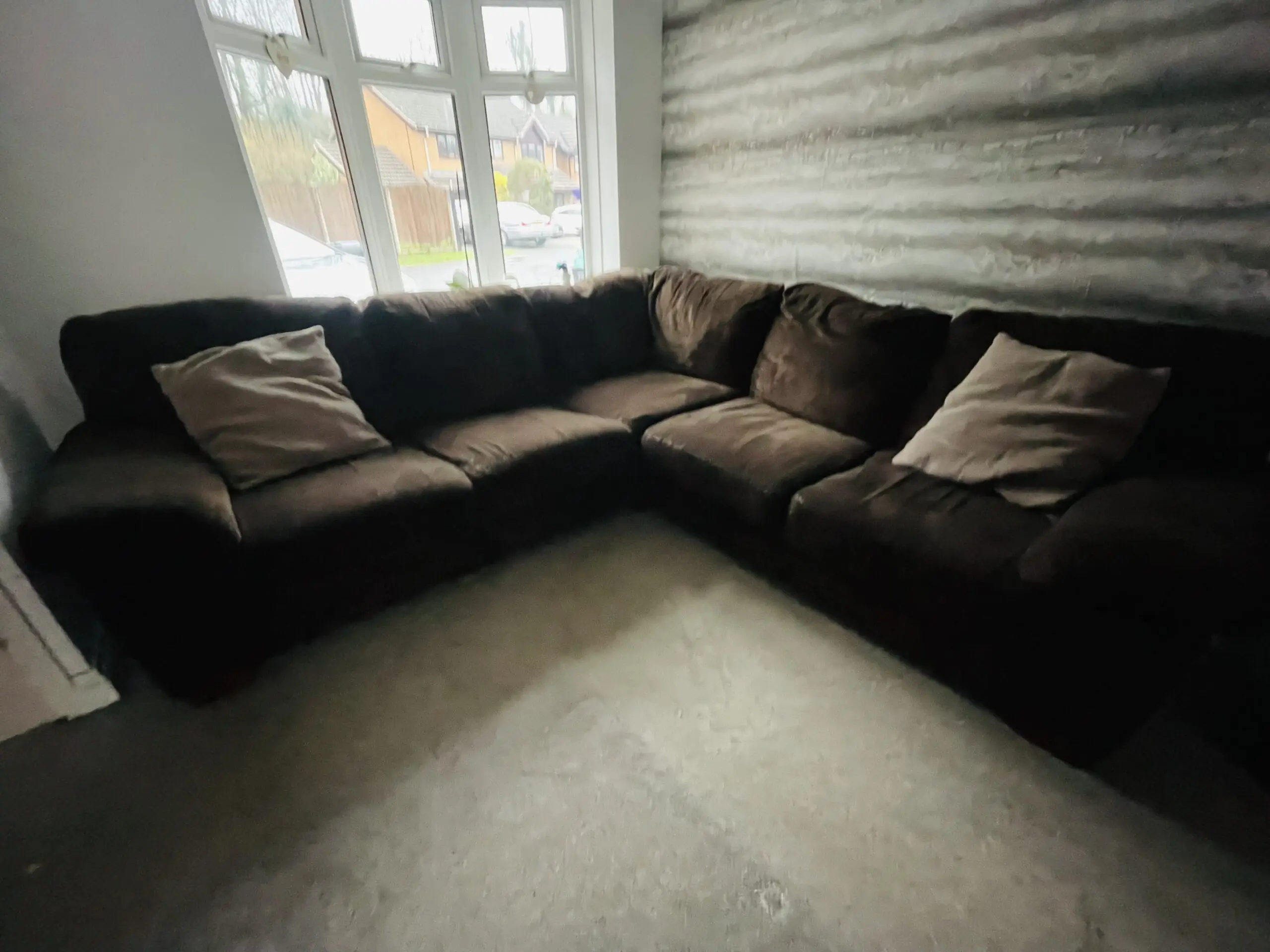 240×240 originally from Cousins still in reasonably good condition and still extremely comfortable fixed cushions comes in two pieces