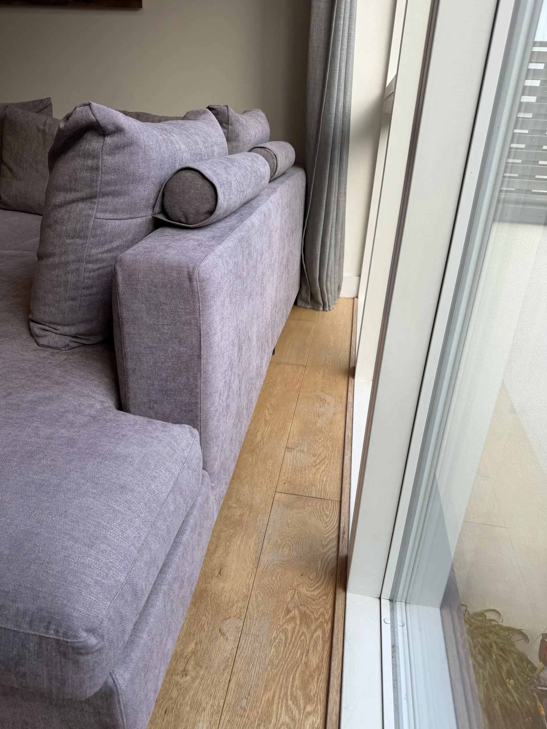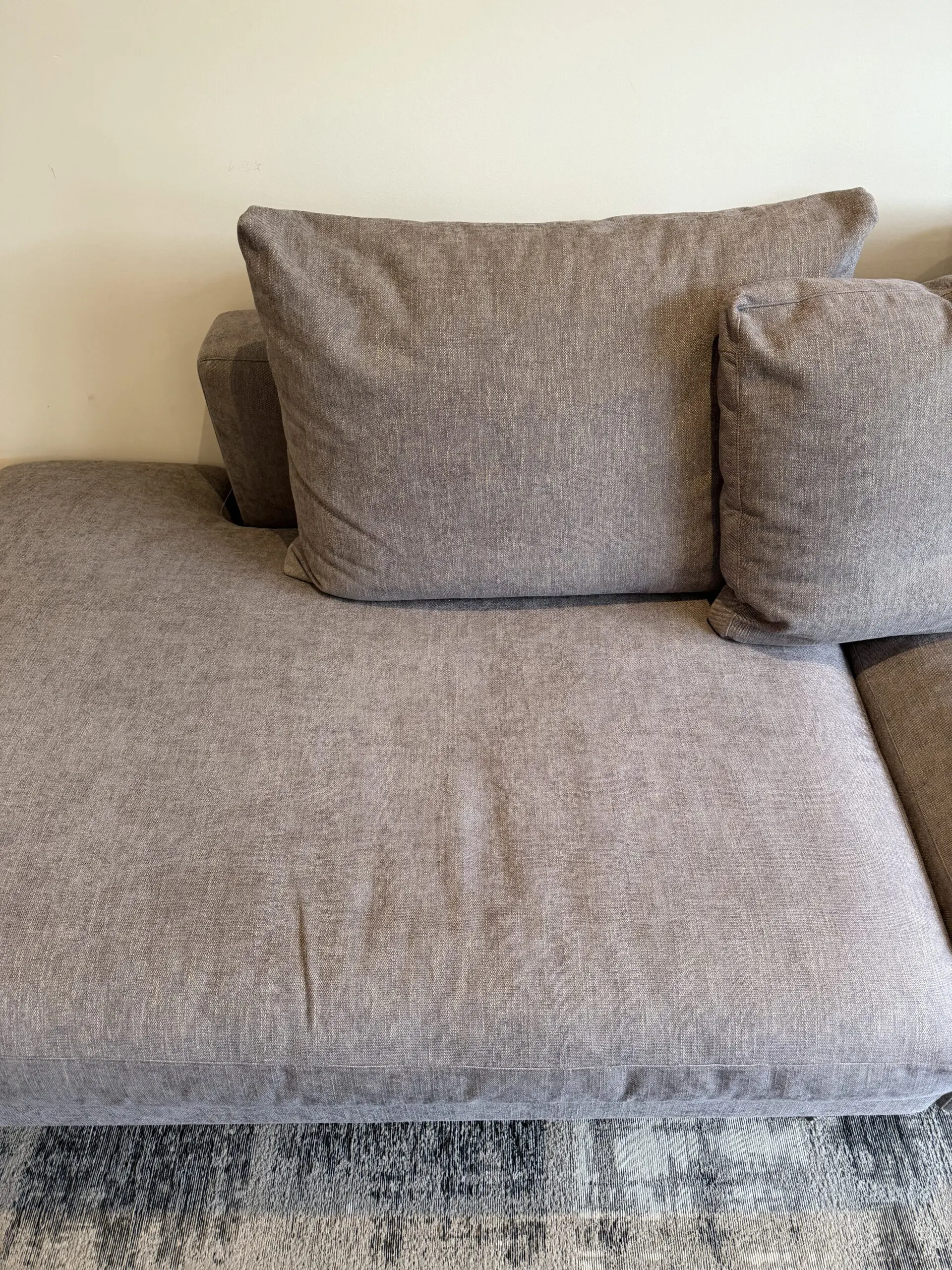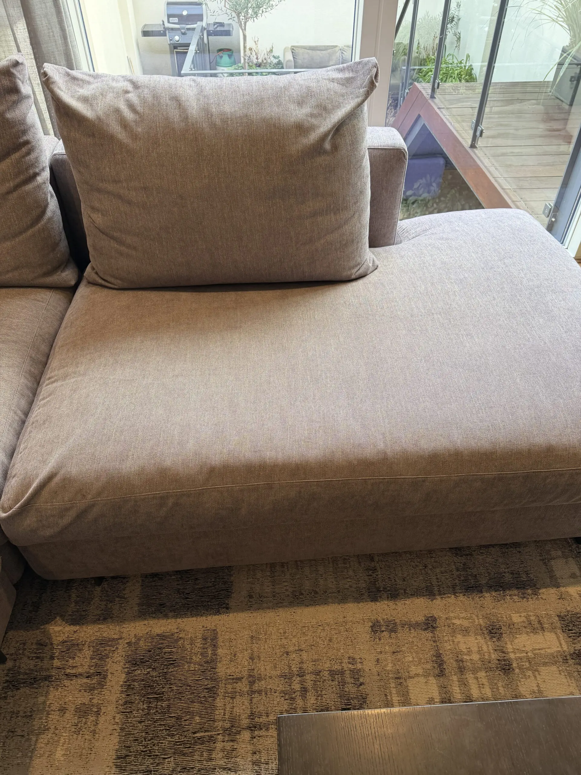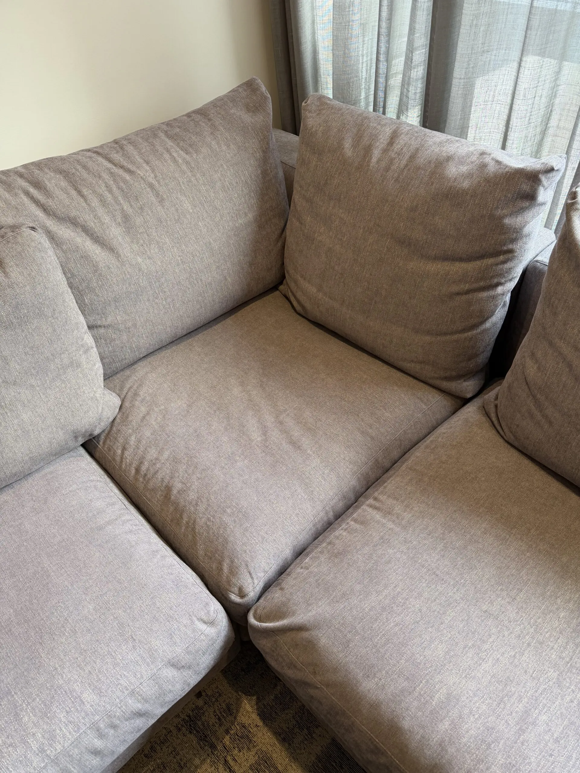 Measurements below: all sections’ seats are 104cm deep. When configured in L shape like below it measures 358cm wide and 244cm long.