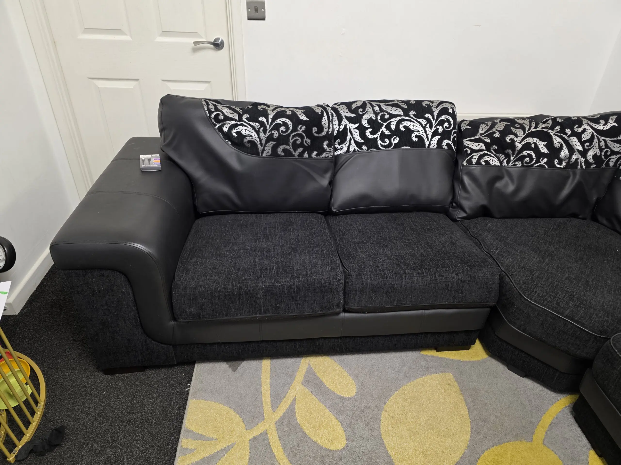 Sofa was purchased from Wayfair. Colour is a mix of grey and black.