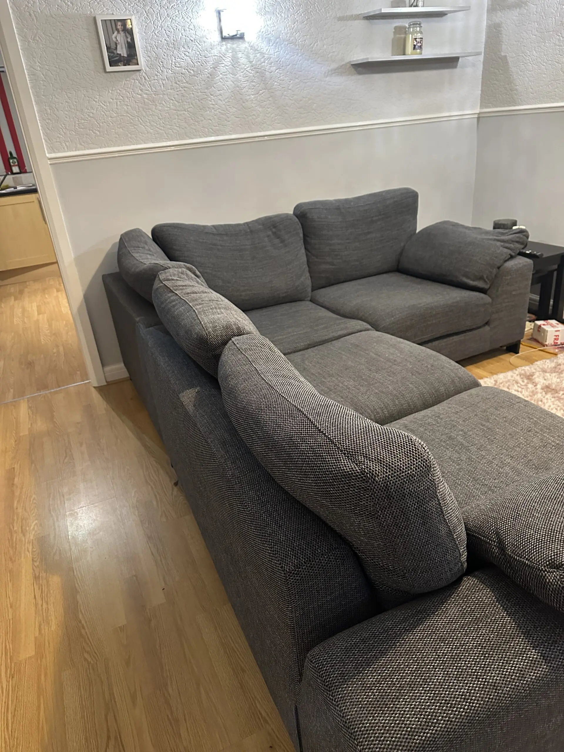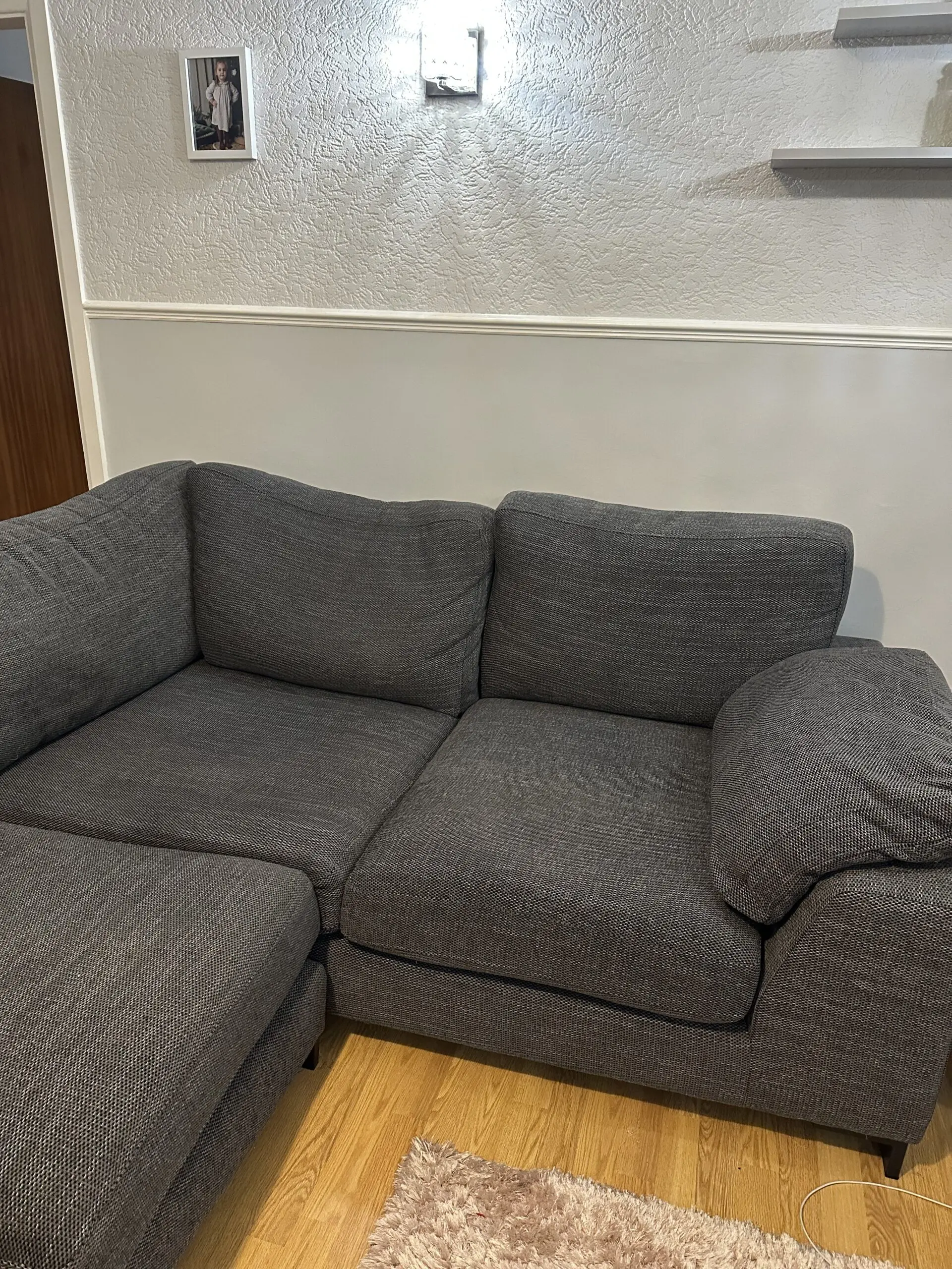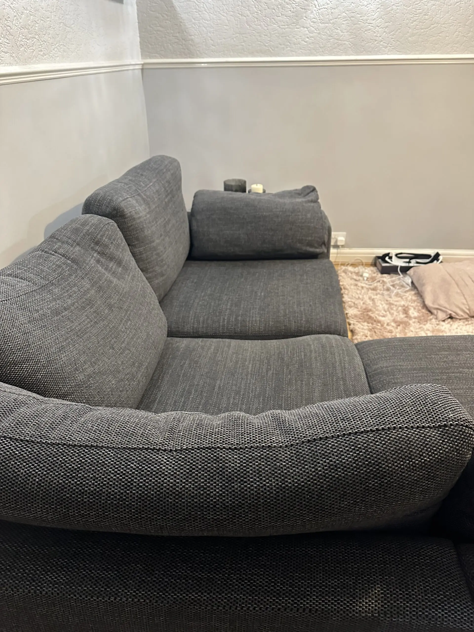 Charcoal corner sofa from DFS. Brought in January 2022. From a smoke and pet free home. In good condition as I live on my own.