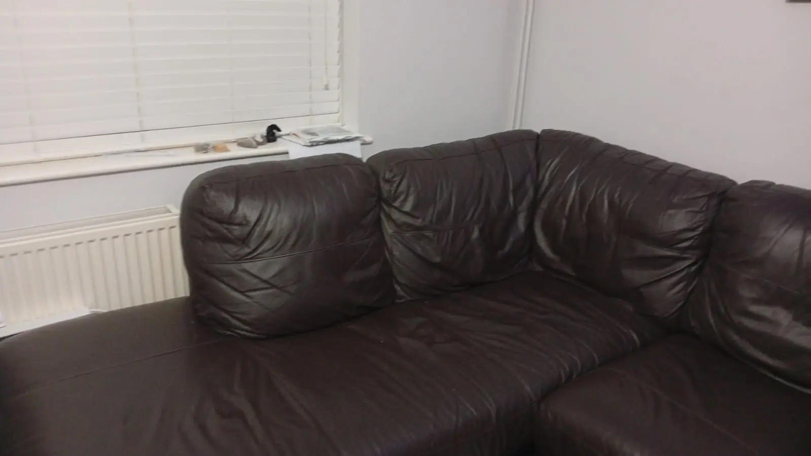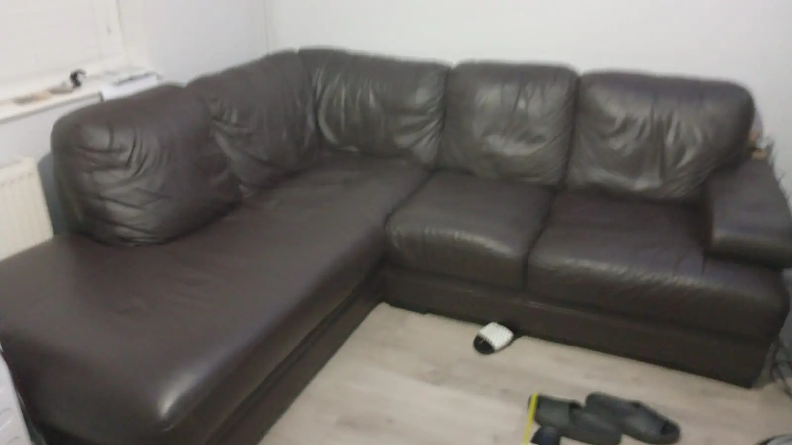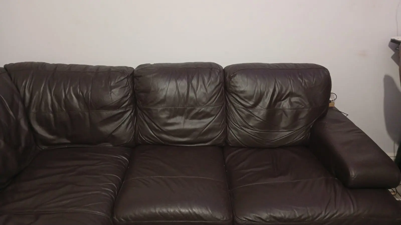 The corner sofa is coffee brown with width of 135×115, height of 87cm and 96cm measurement from the side