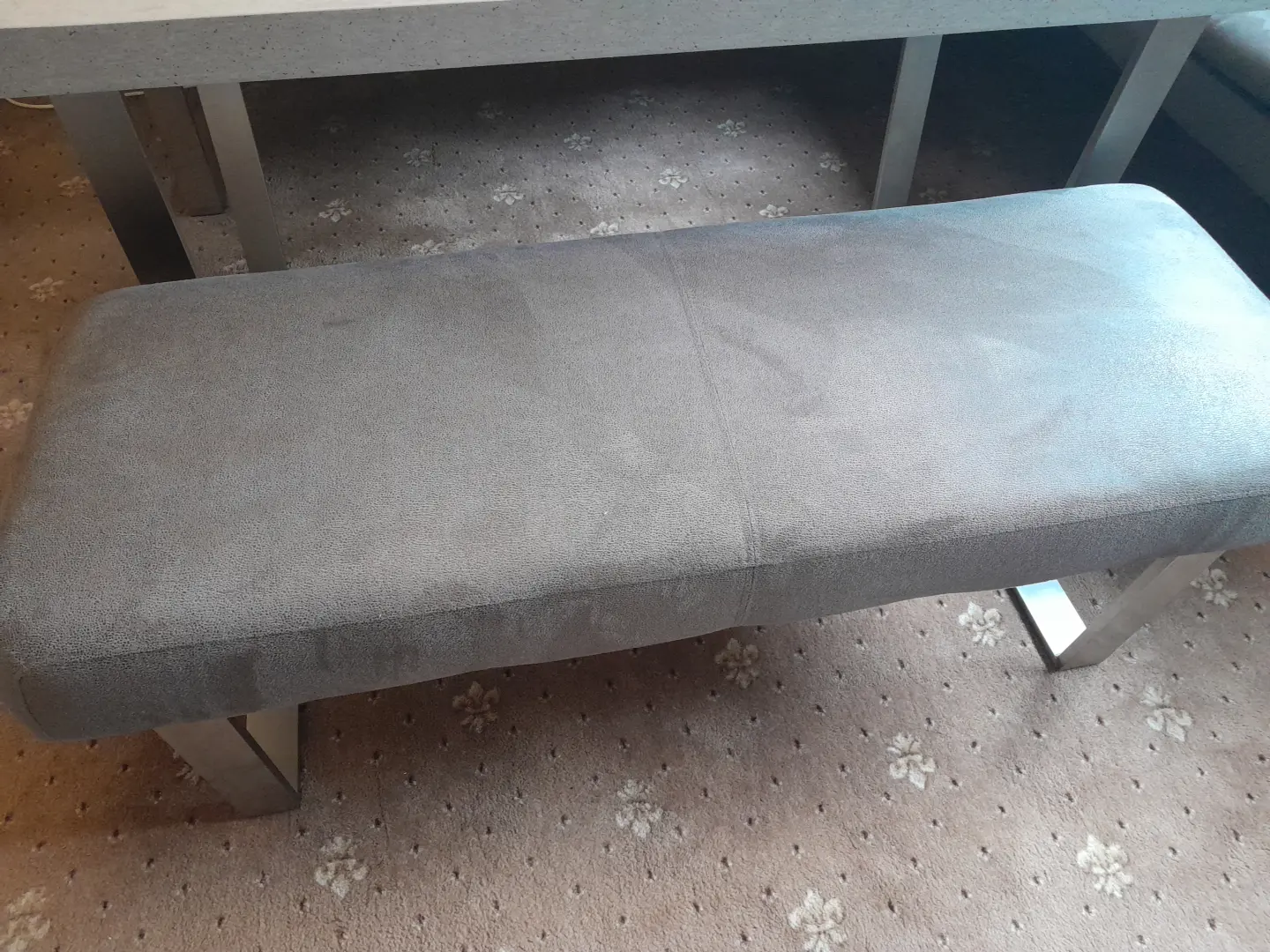 Very comfortable settees upholstered in a soft wipeable material, finished with modern brushed chrome legs