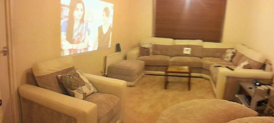 Corner fabric and leather mixed sofa, swinging arm chair and 1single seat. Looking to clear out. Own transportation and moving required. You can have both the foot rest as well.