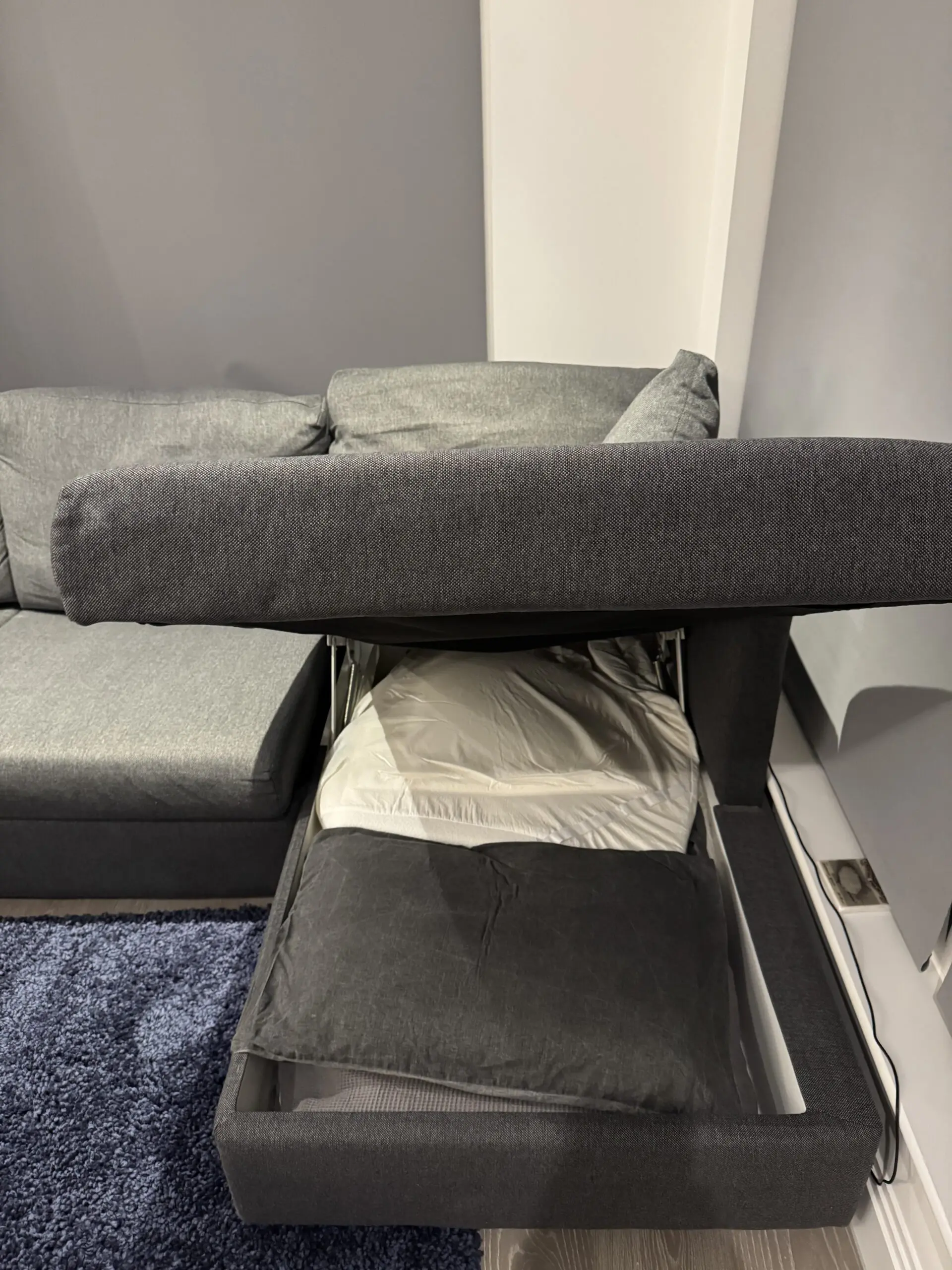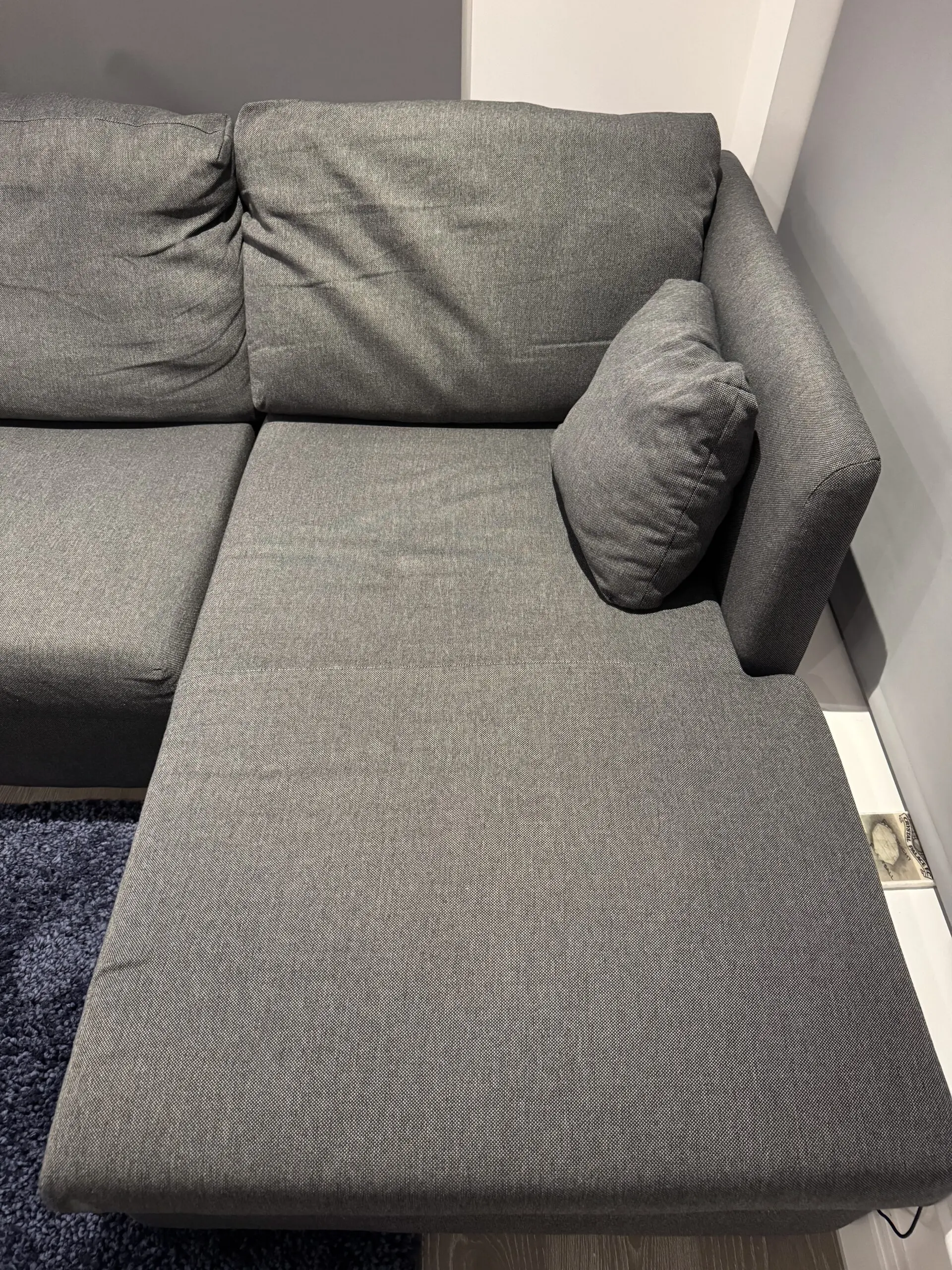 Grey Milner Sofa Bed from made .com. Has storage and a full pull out double bed. Still in great condition and also have 2 spare back cushions.
