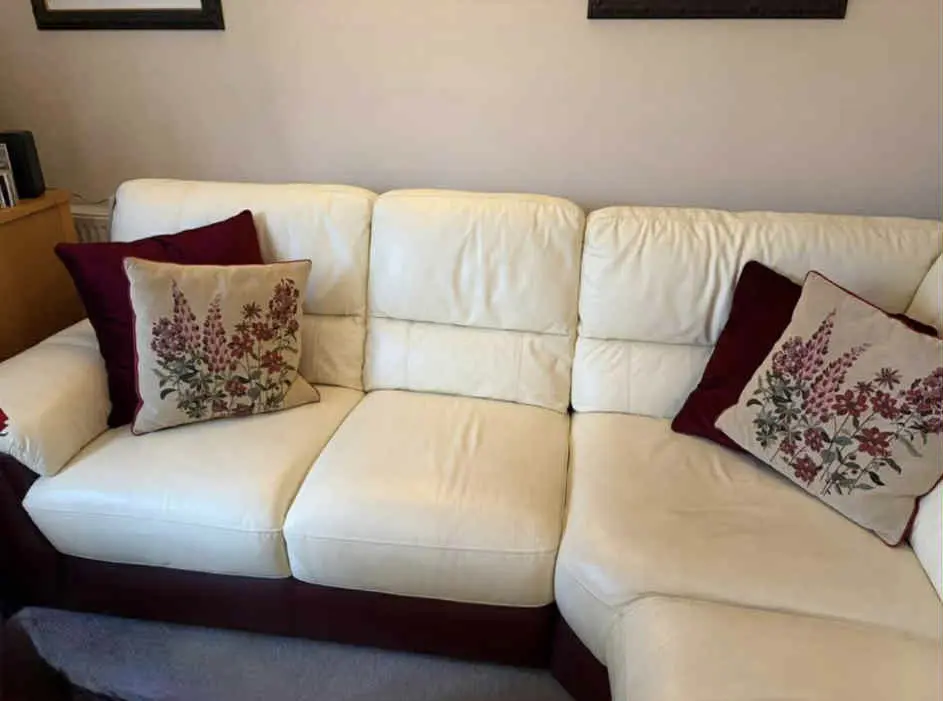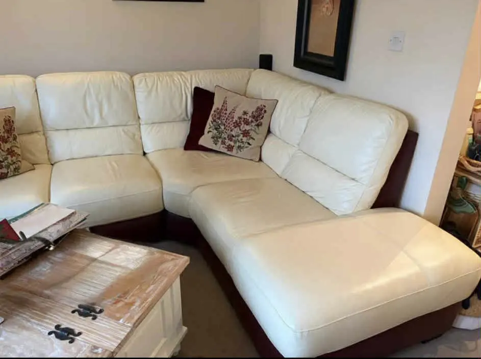 3 seater corner sofa with large chaise corner. Smoke and pet free home. Comes with fire tags and leather cleaning/protector kit.