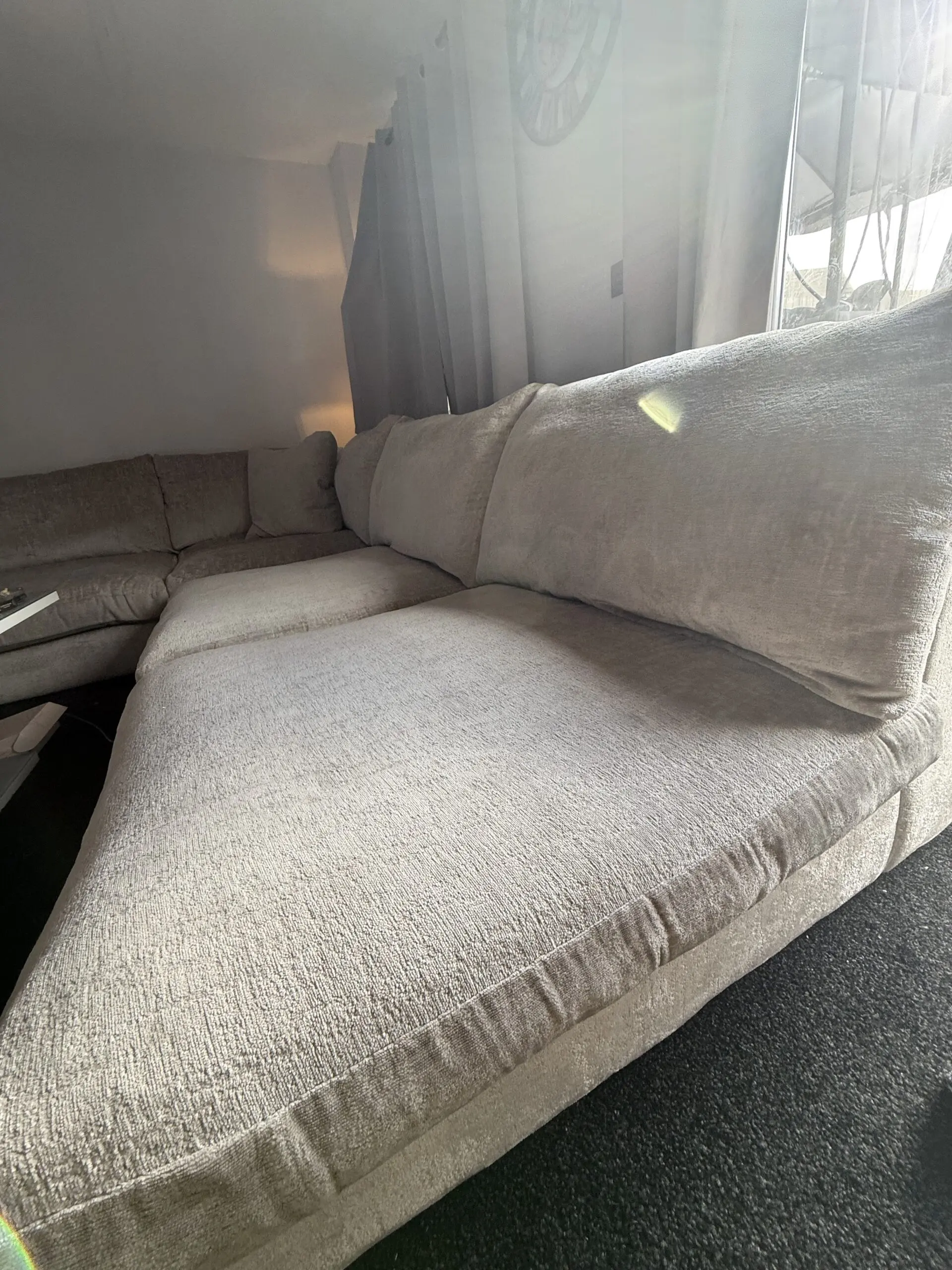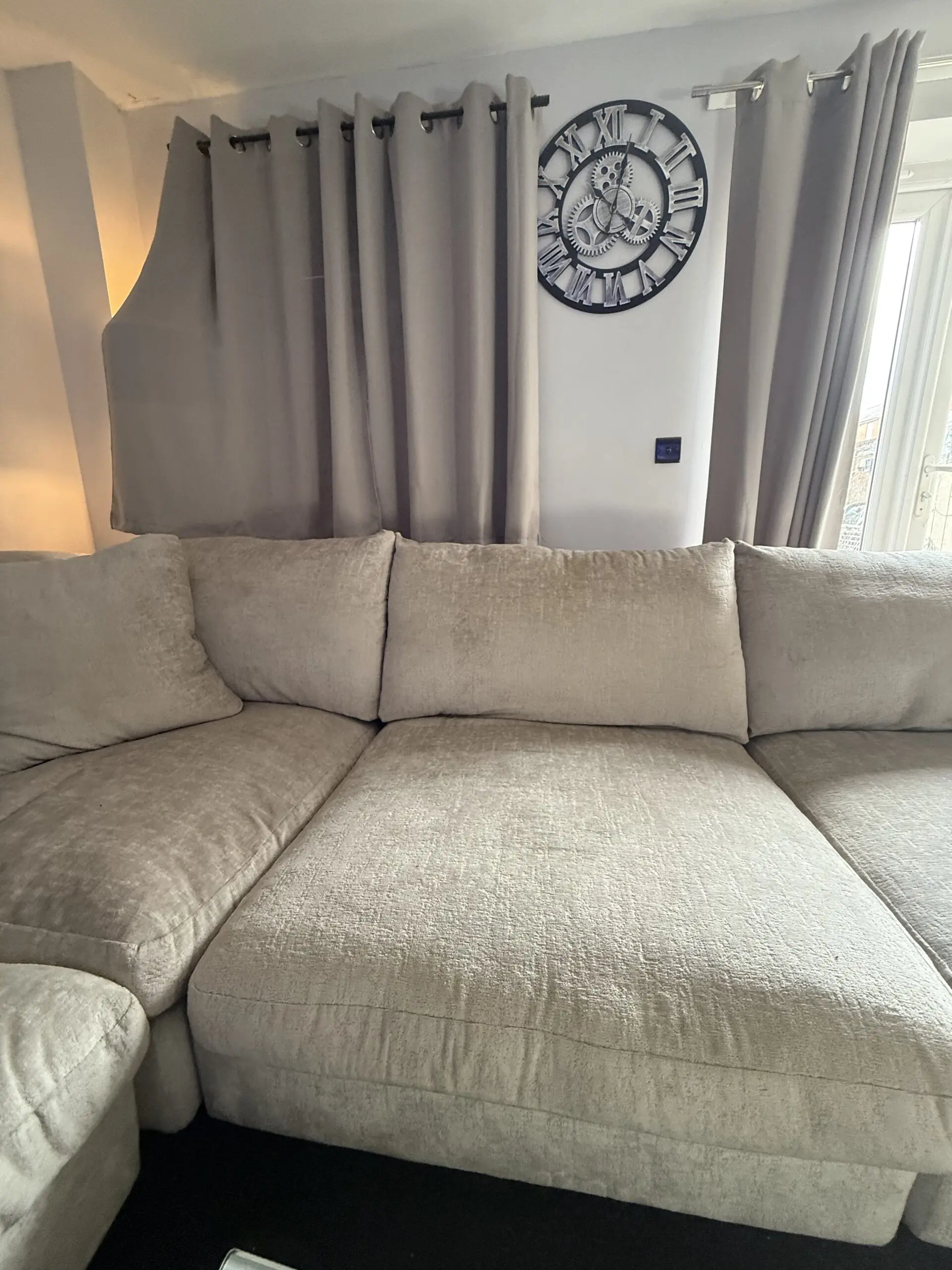 This is a beautiful sofa, it’s very large and comfy, in excellent condition, I purchased it off this site a couple of weeks ago, it was advertised as light grey but in my opinion it’s cream.
