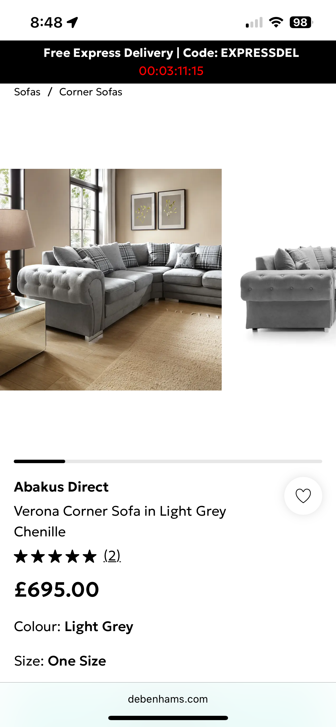 Debenhams grey corner sofa
