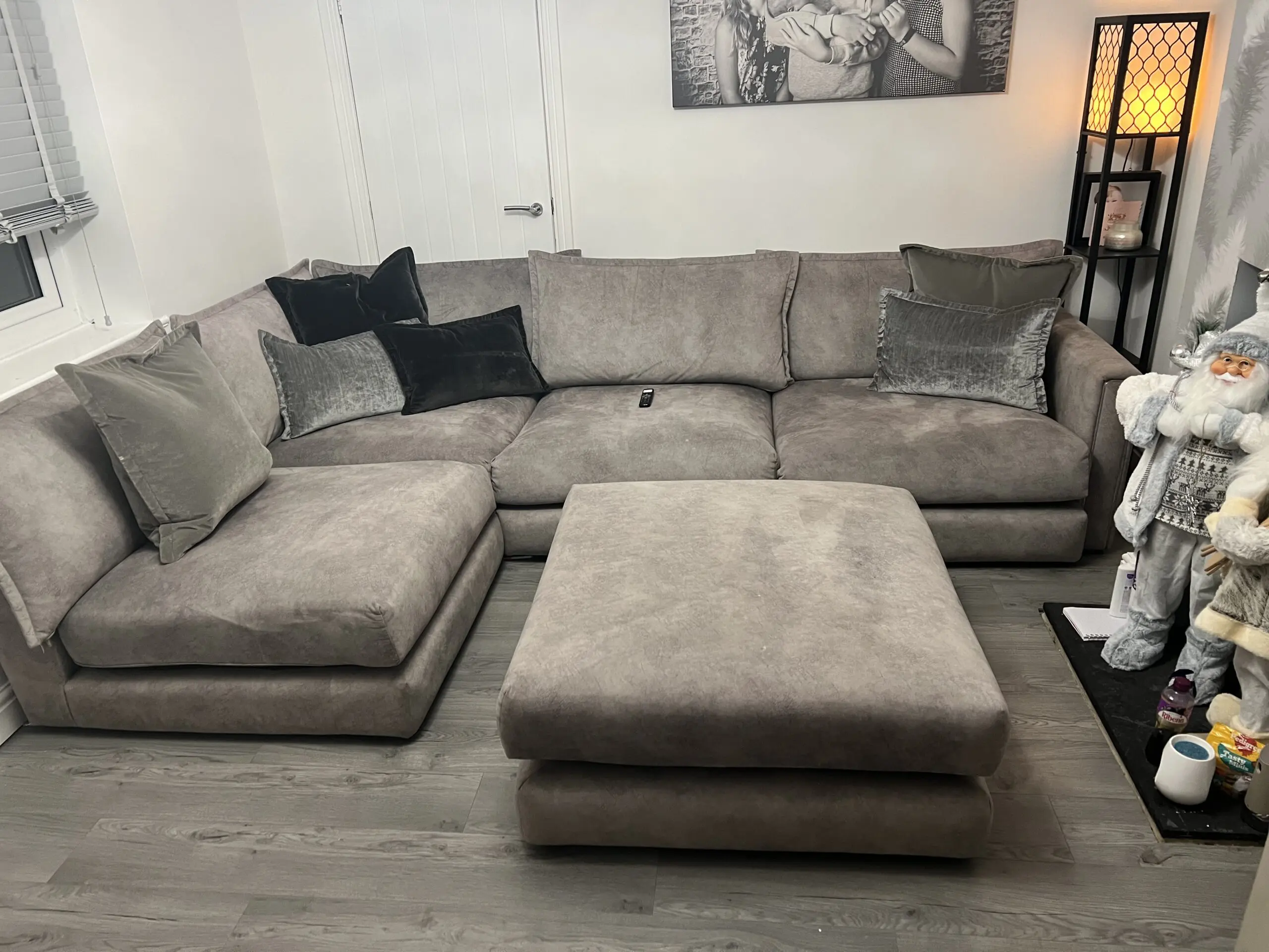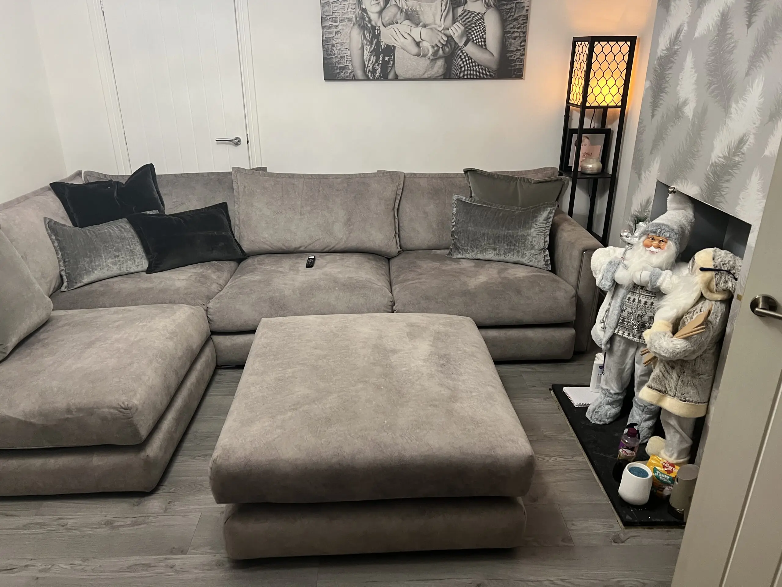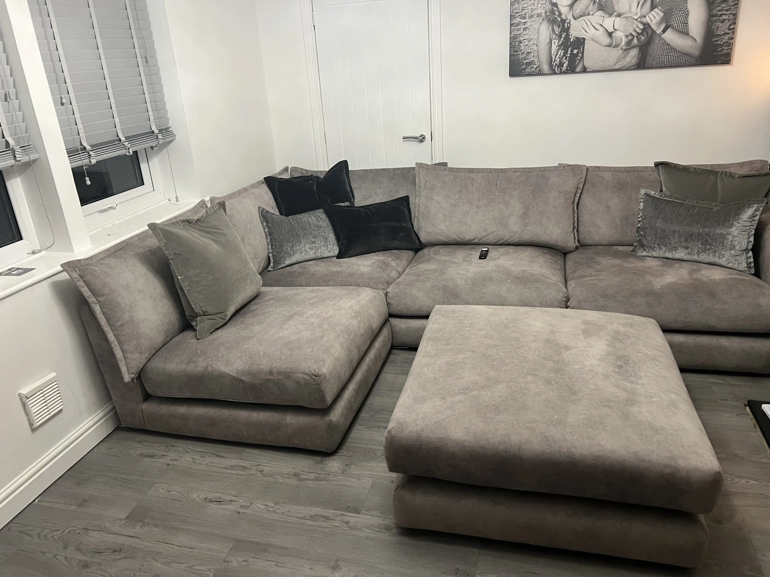 In perfect condition so comfy and really make you house feel like home. I absolutely love my sofa but unfortunately won’t fit into our new home. It has a bit of sun fading to 2 of the back cushions from been near the window but not that noticeable is reflected in the price. £800 cash on collection