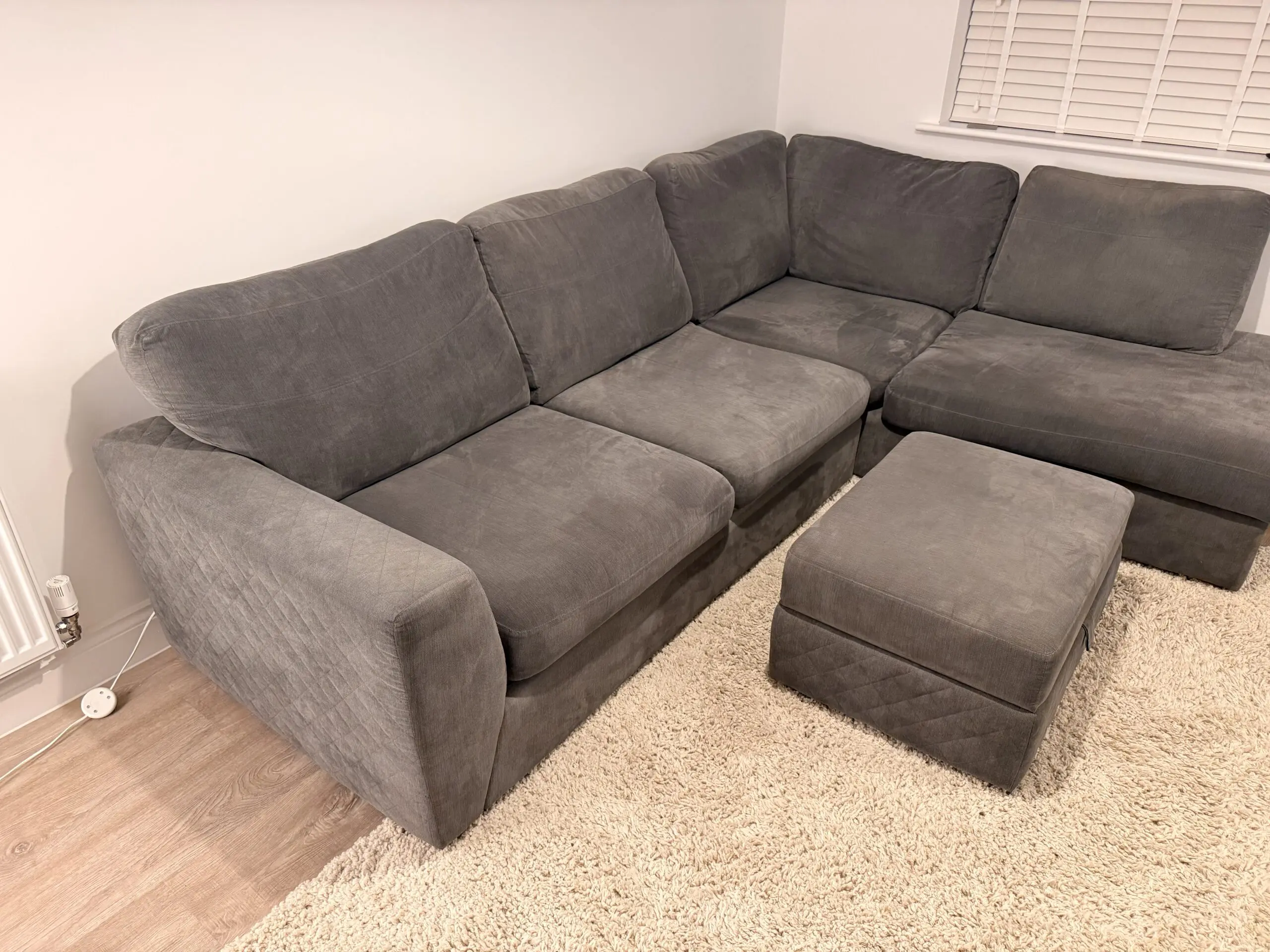 DFD grey corner sofa and footstool
