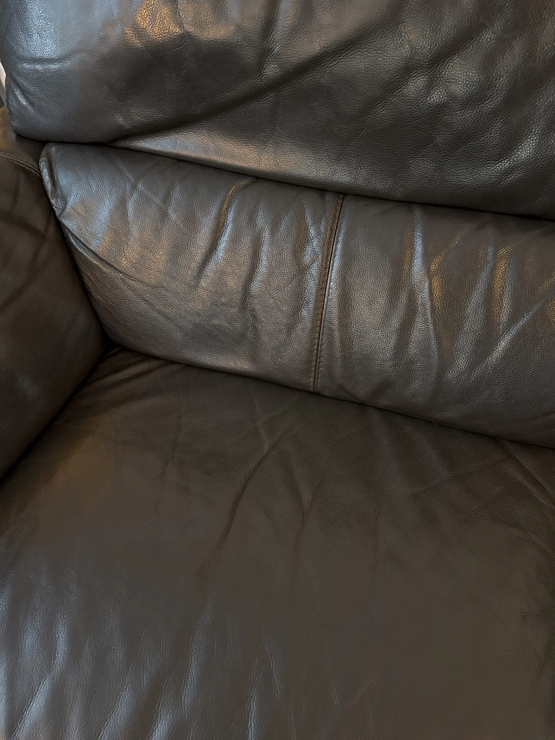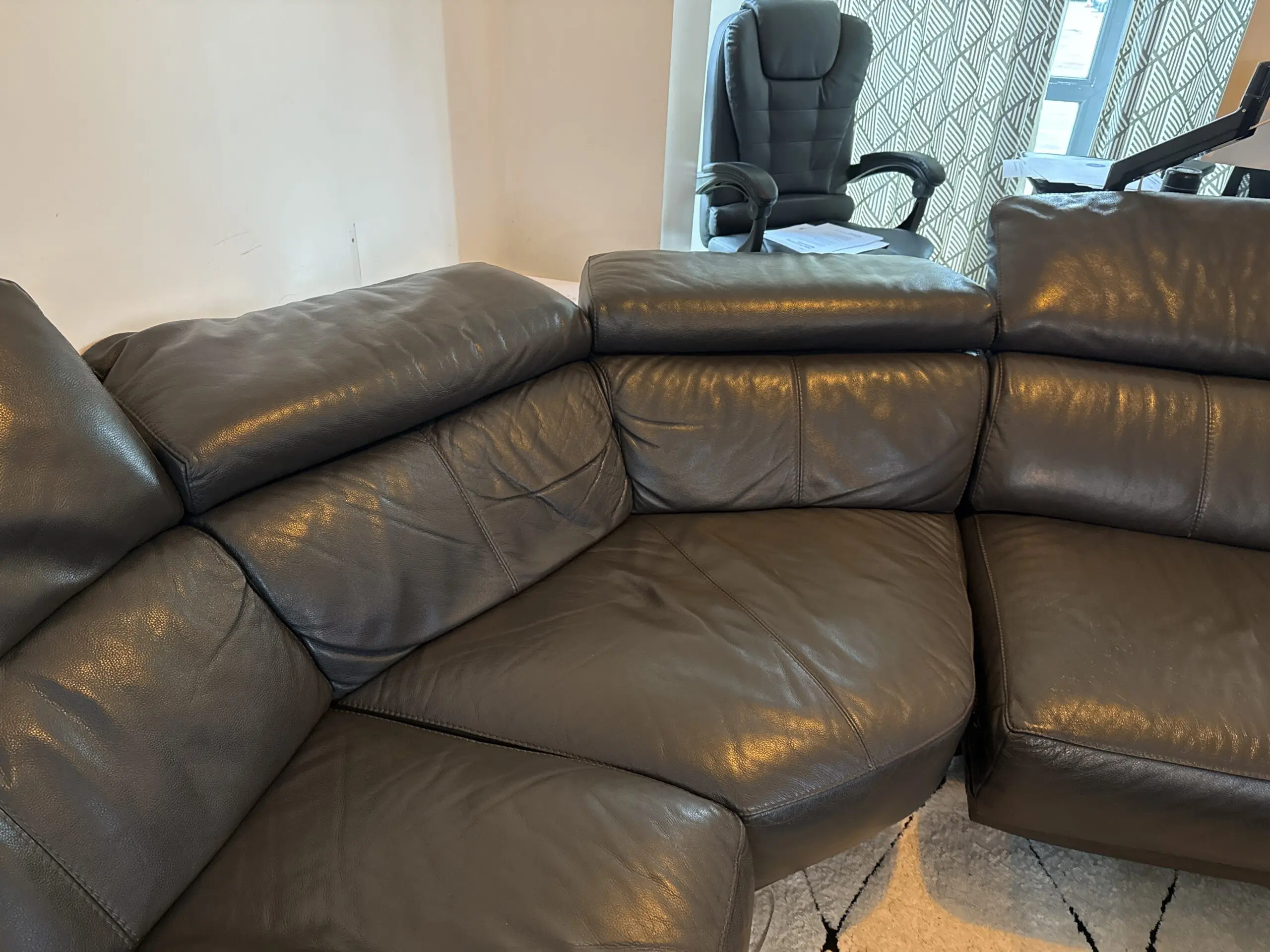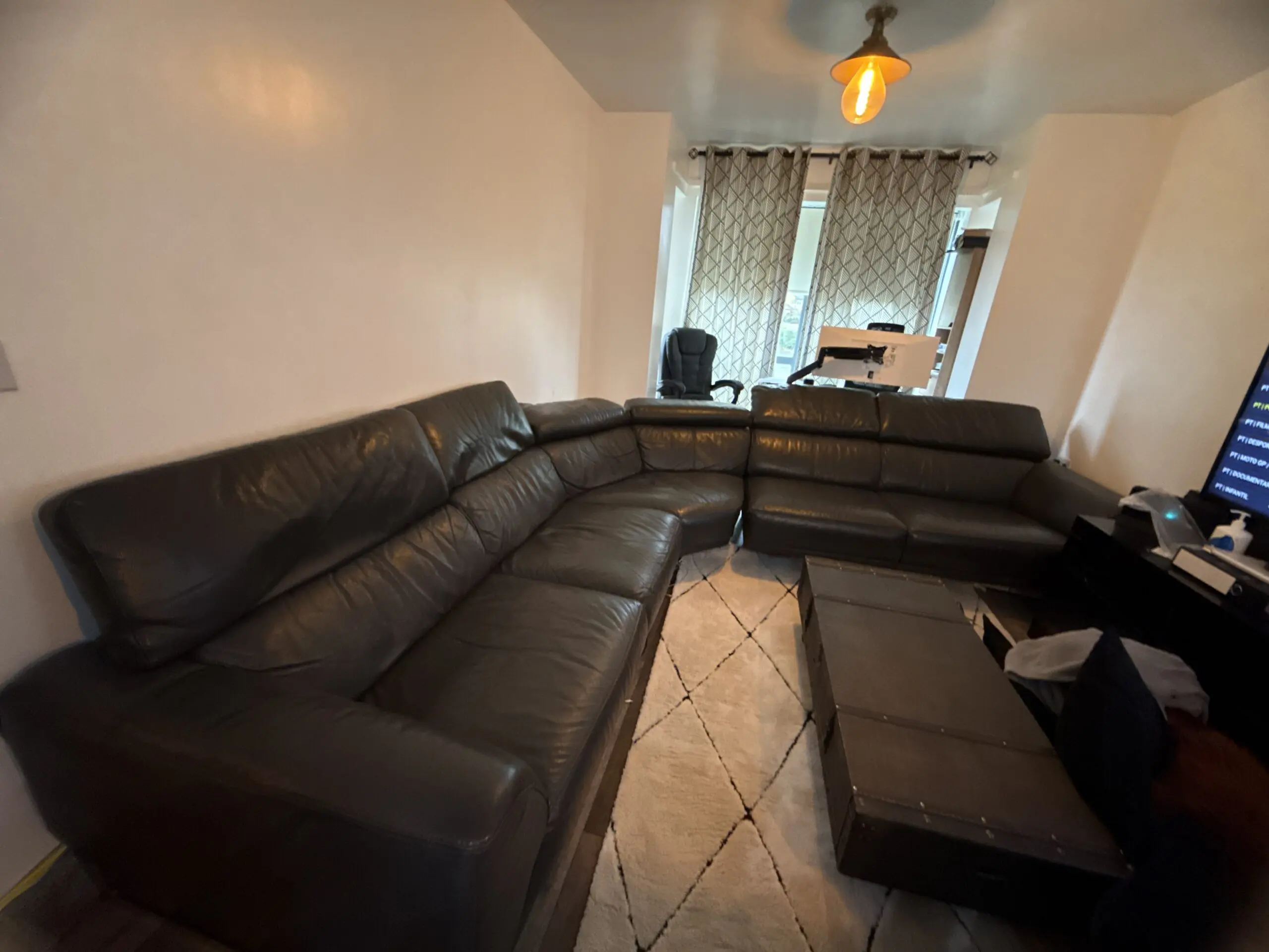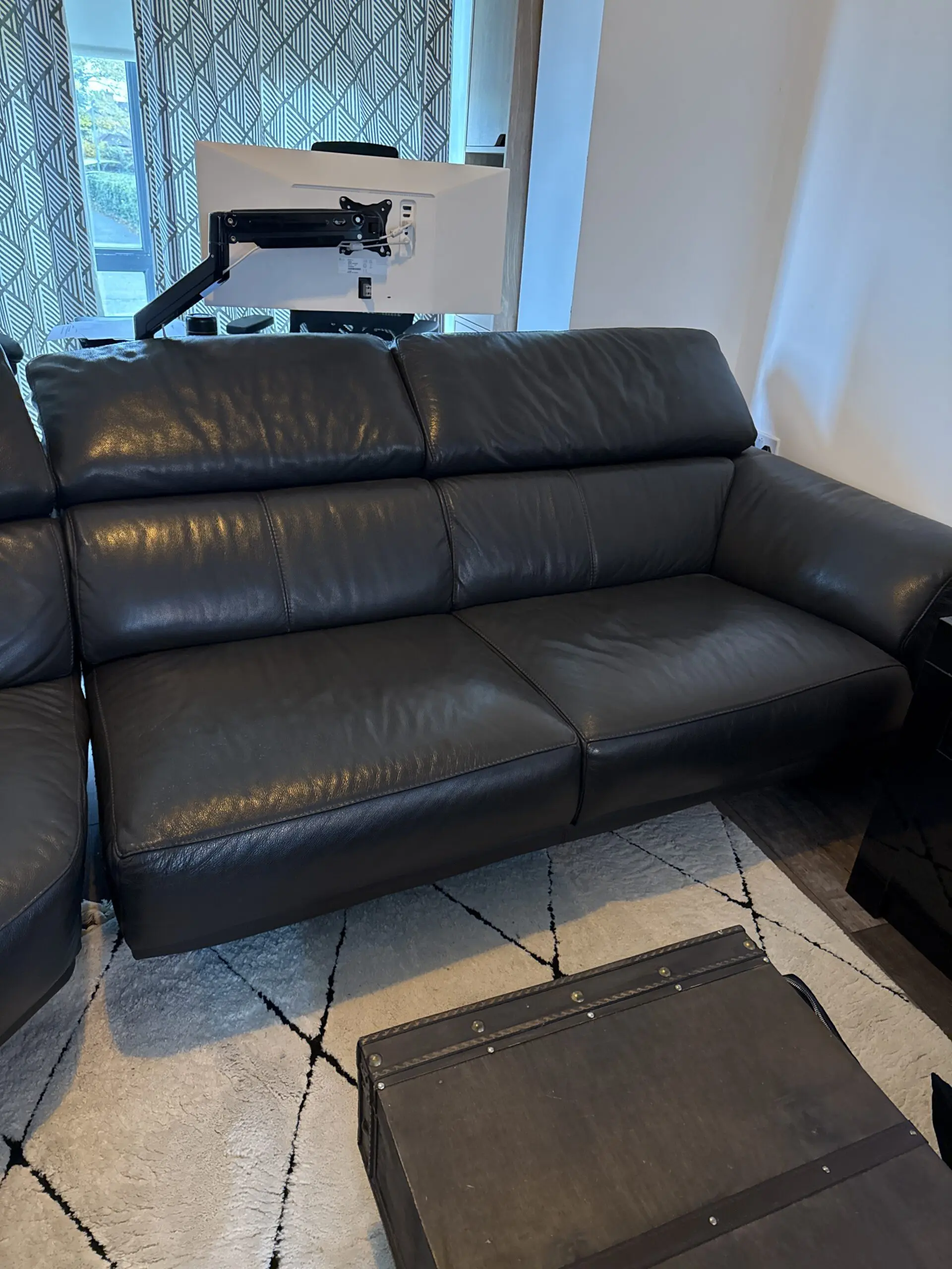Large genuine leather Black corner sofa, good condition, no smokers, no pets. Easy to remove, disassemble in 3 parts