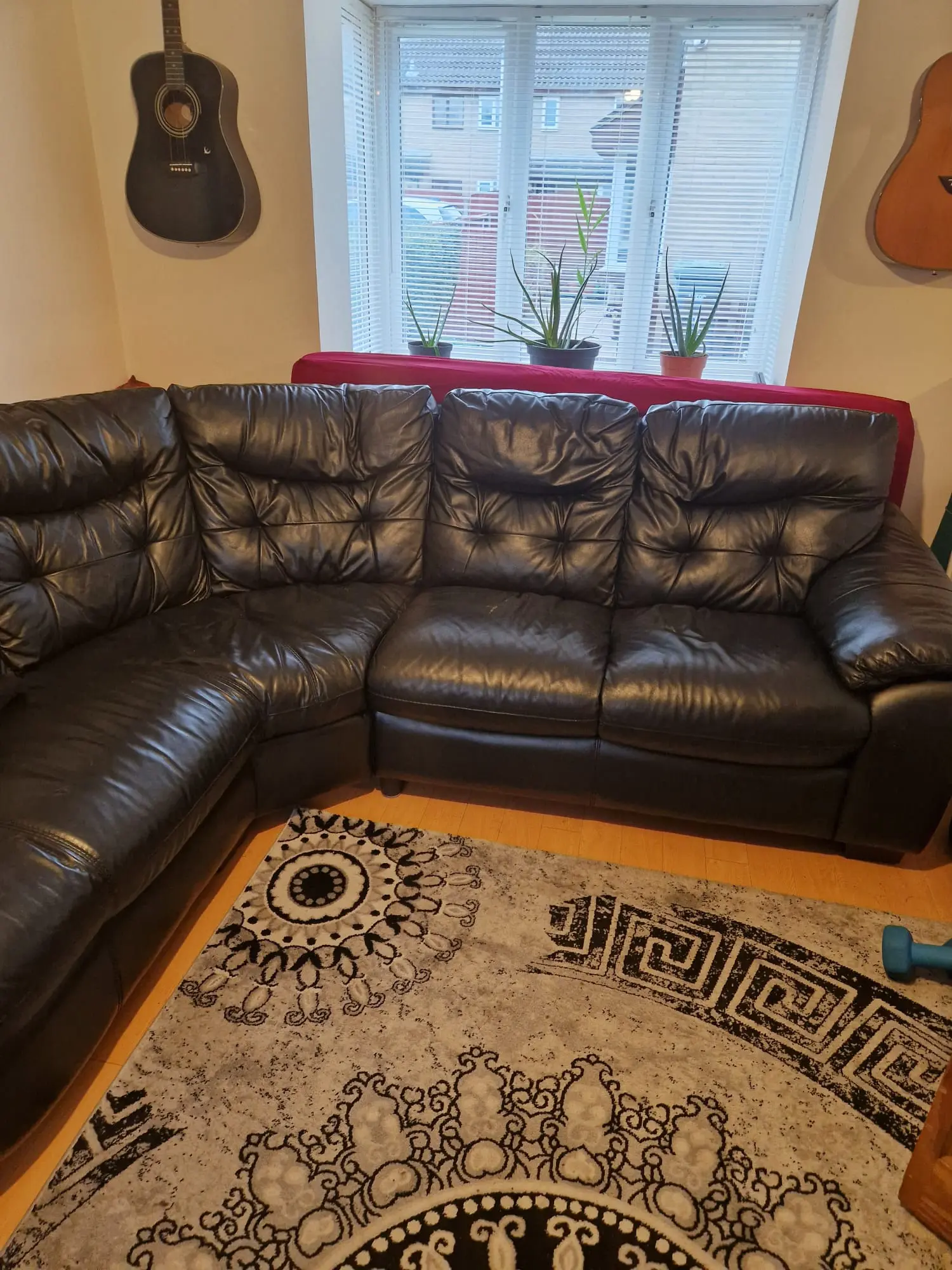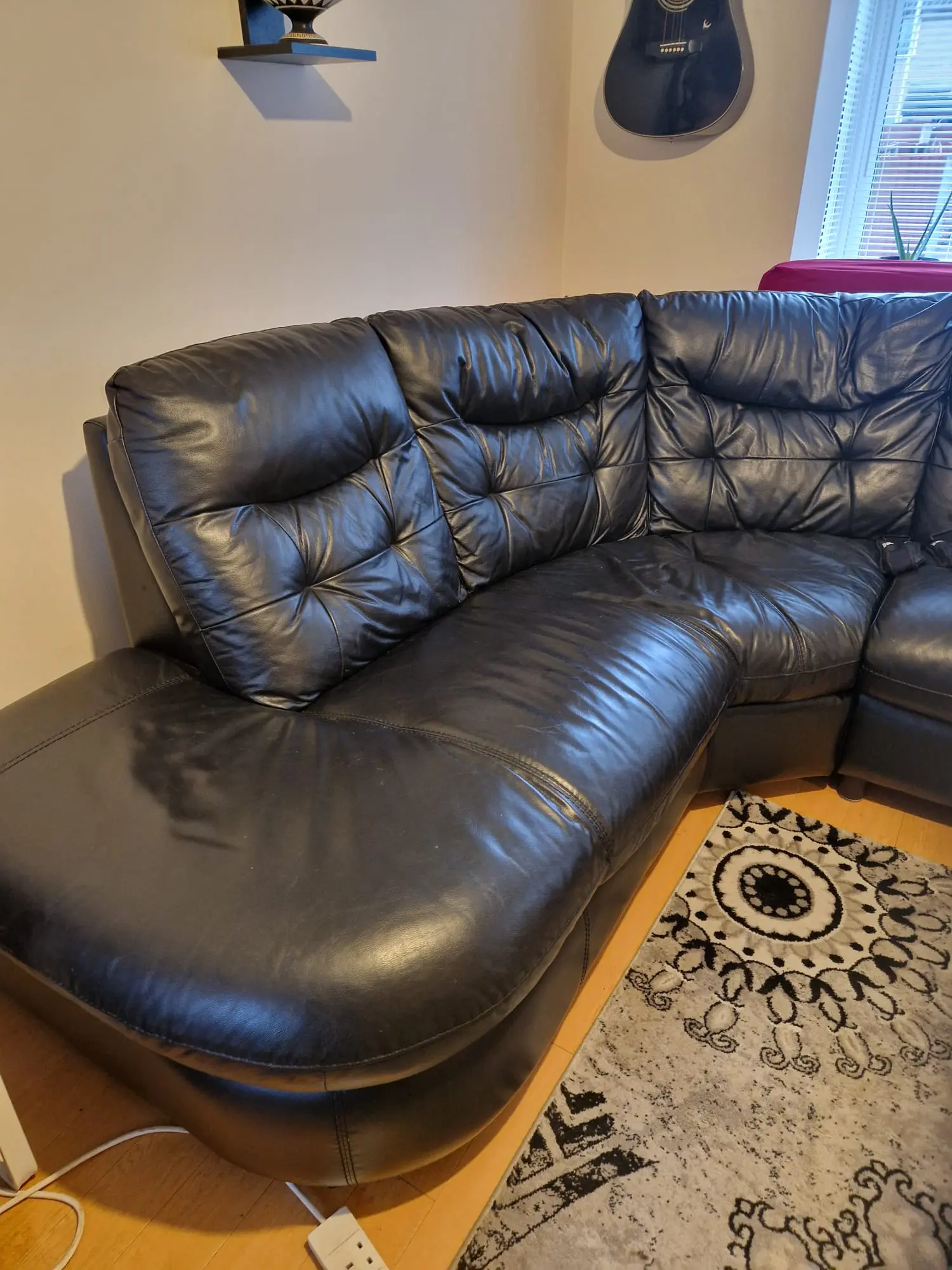 Dfs black leather corner sofa strong and sturdy, very good condition