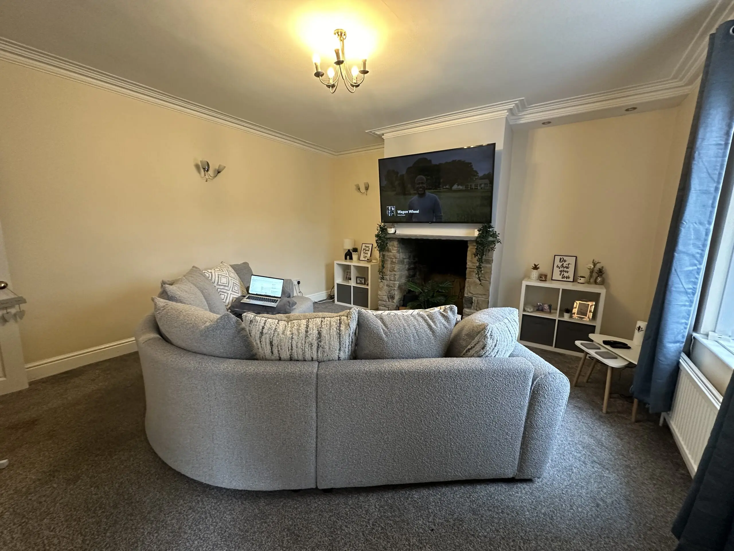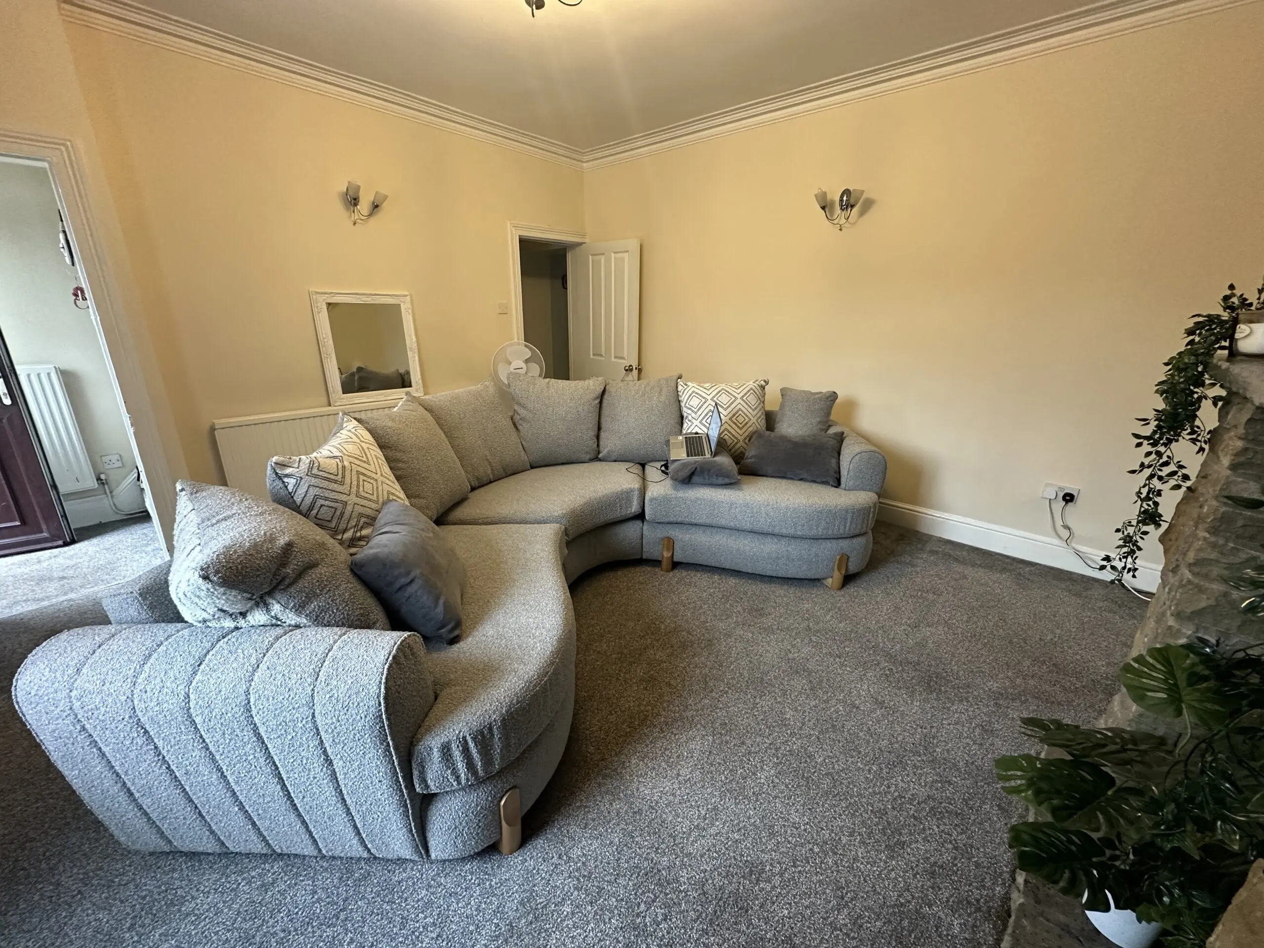 Grey curved corner sofa, in great condition, purchased October 2024, looking to downsize due to moving into smaller house and it is too big for the living room.