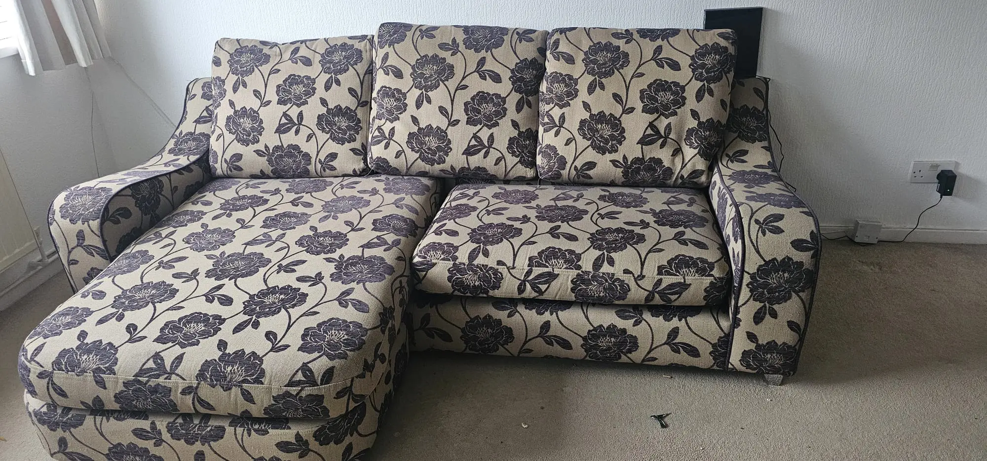 Its DFS brown flower patren Brown sofa. Pet & Smoke free home. Nice condition.