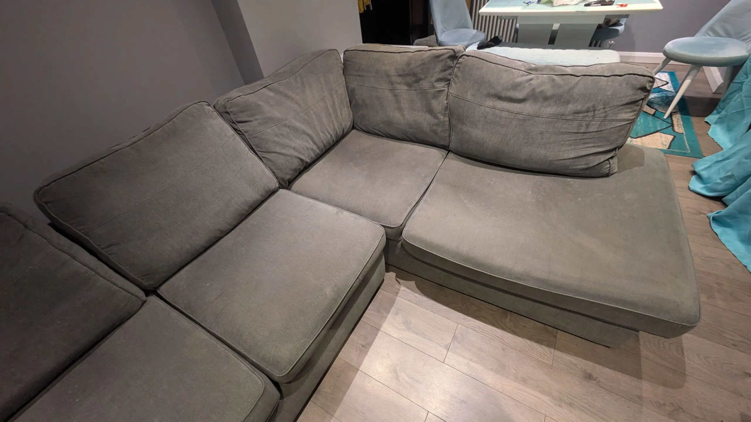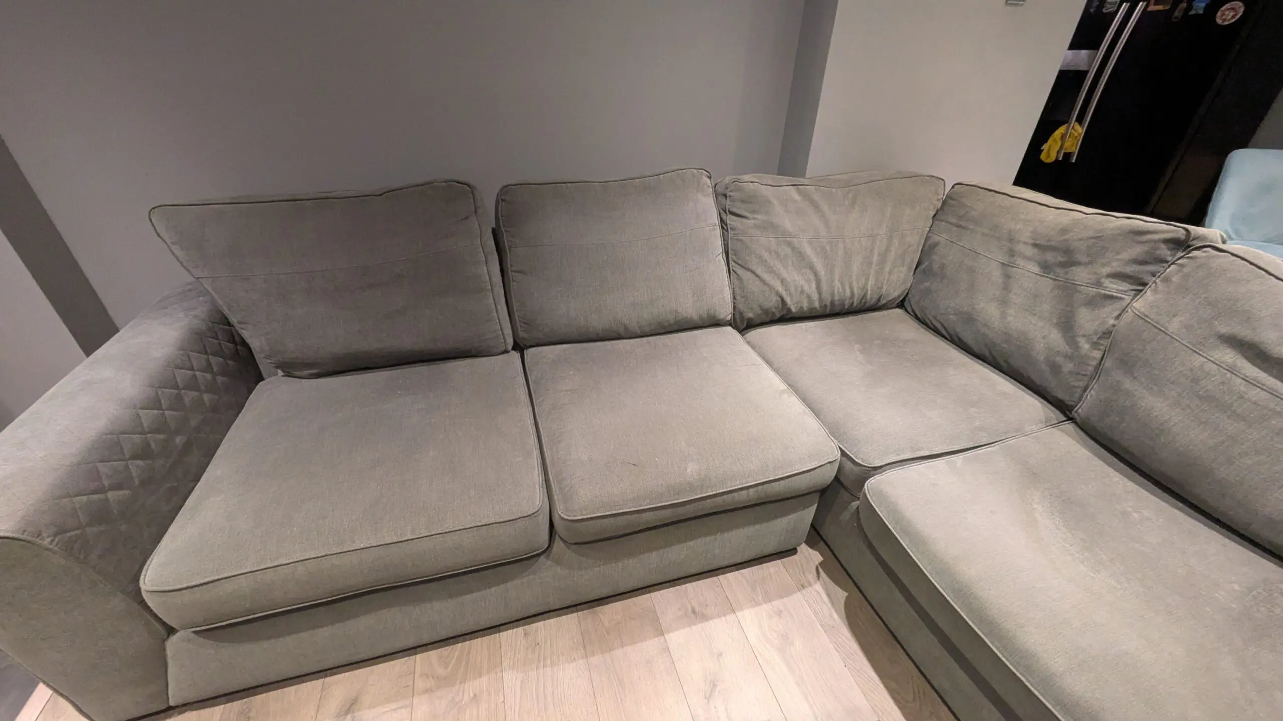 Charcoal corner sofa, very cosy and hasn’t been used alot within the last year.