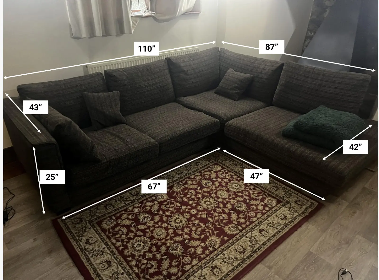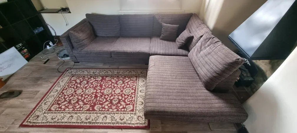 4 year-old cocoa brown DFS Keaton weave corner sofa in good condition (comes from a non-smoking house). We will give it a thorough clean and wash before handing over!