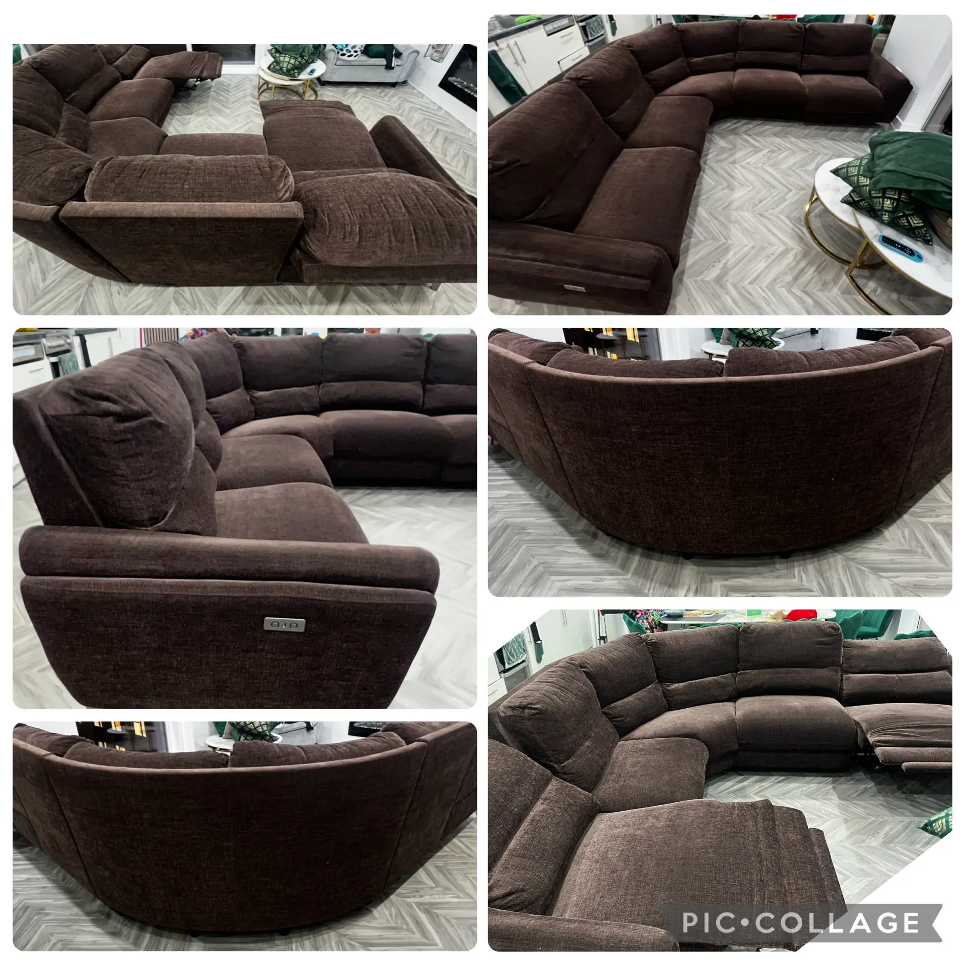 DFS brown corner sofa, with 2 reclining seats, and usb connections.