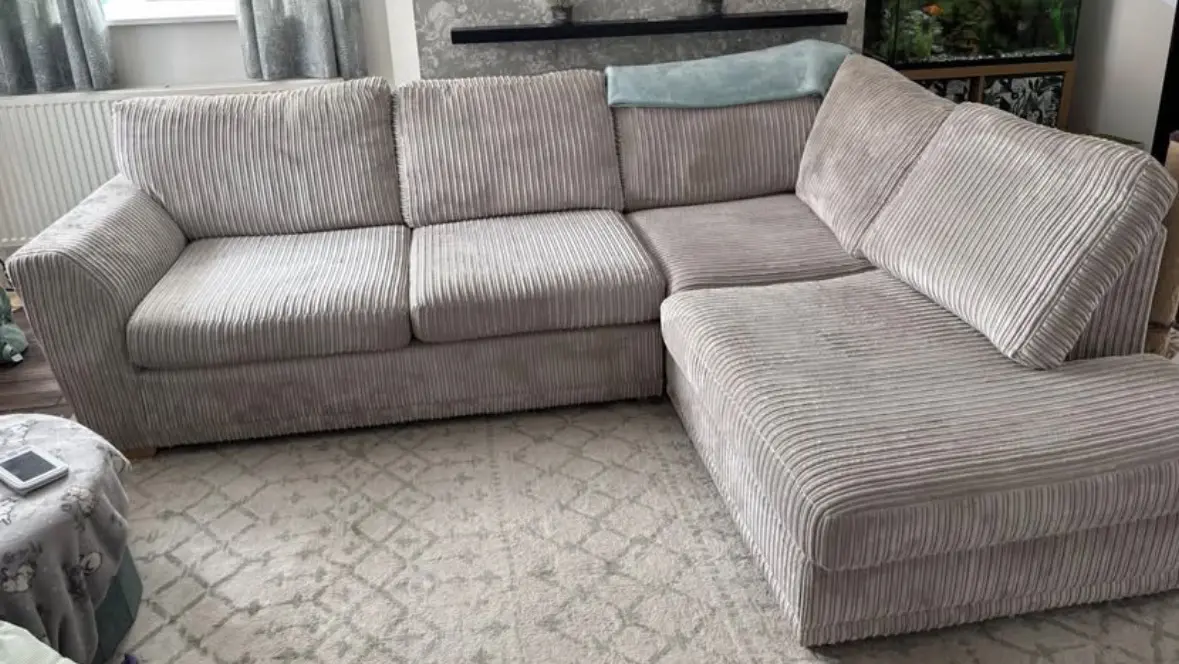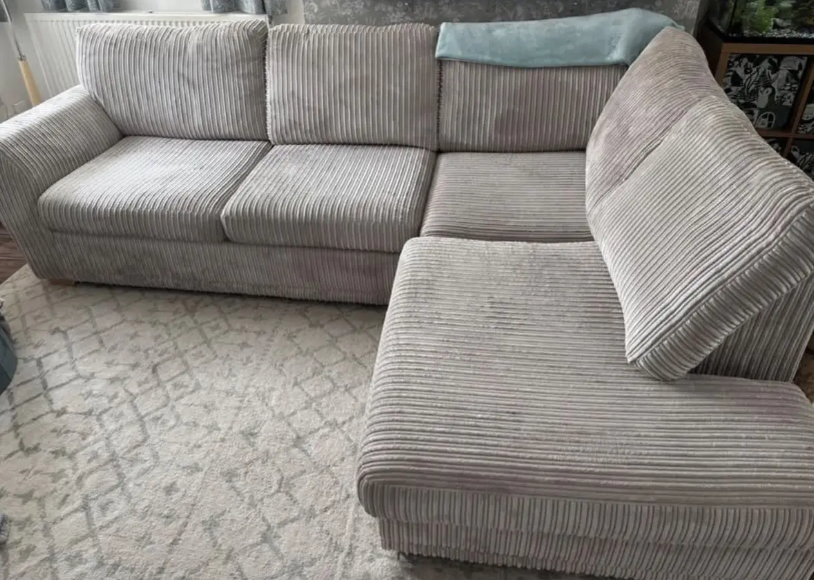 Bought from DFS less than 2 years ago so still in really good condition, sad to sell as it’s so comfy but it just doesn’t fit right in our new house