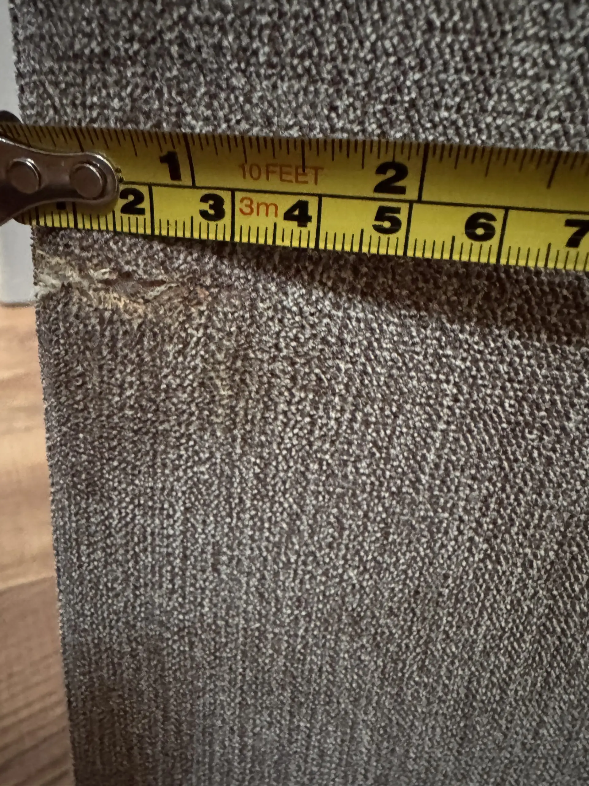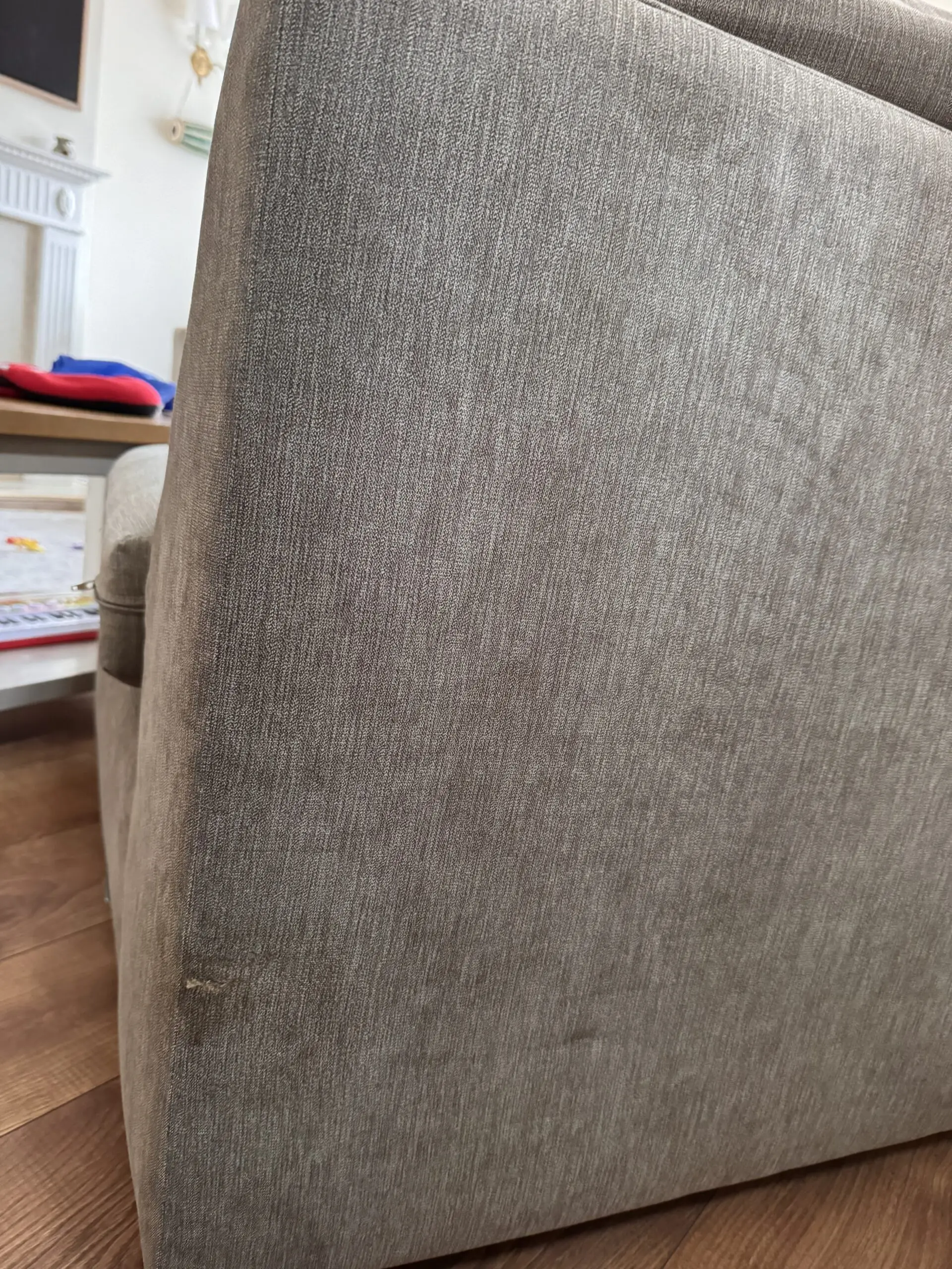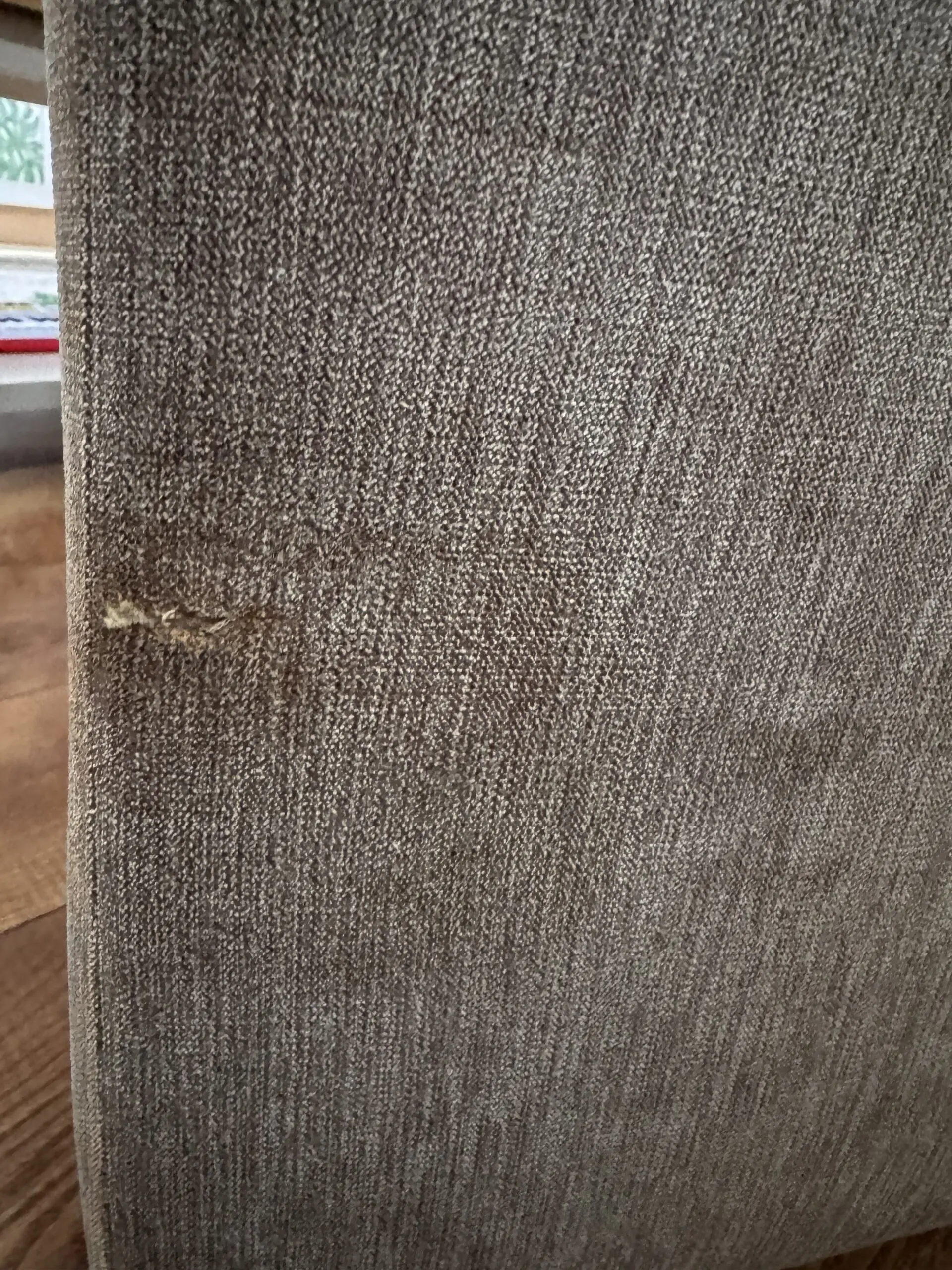 Please note that behind the sofa, there is a 2cm slight tear. I have tried my best to capture it on the image.