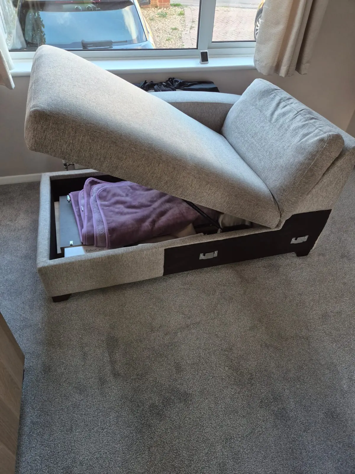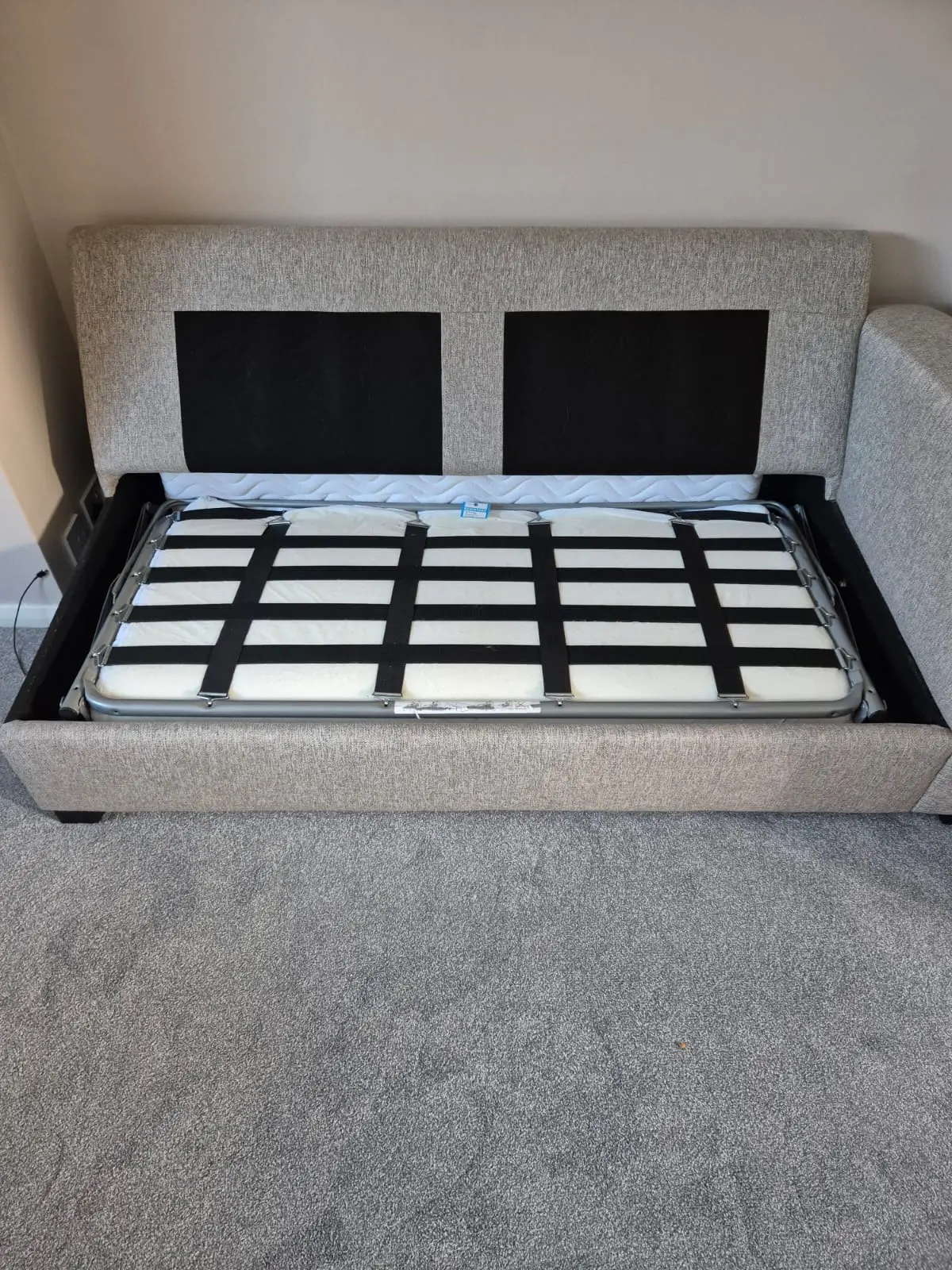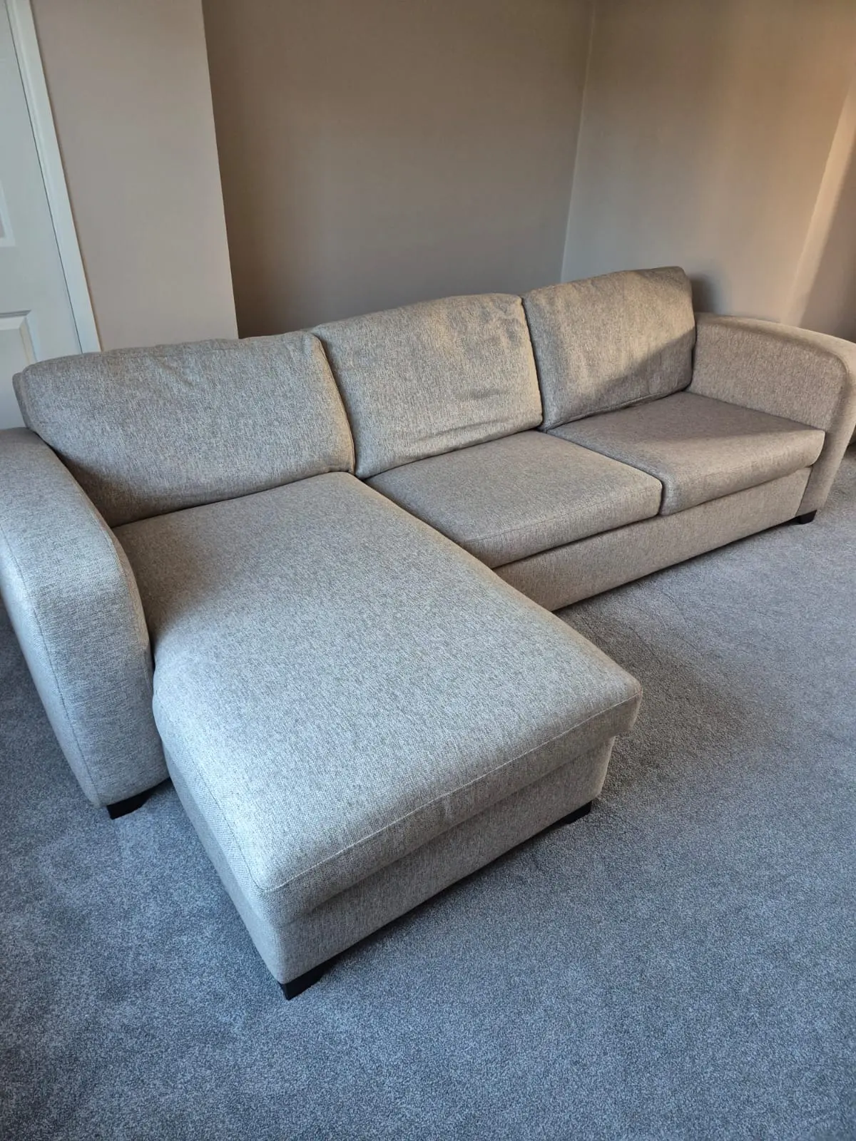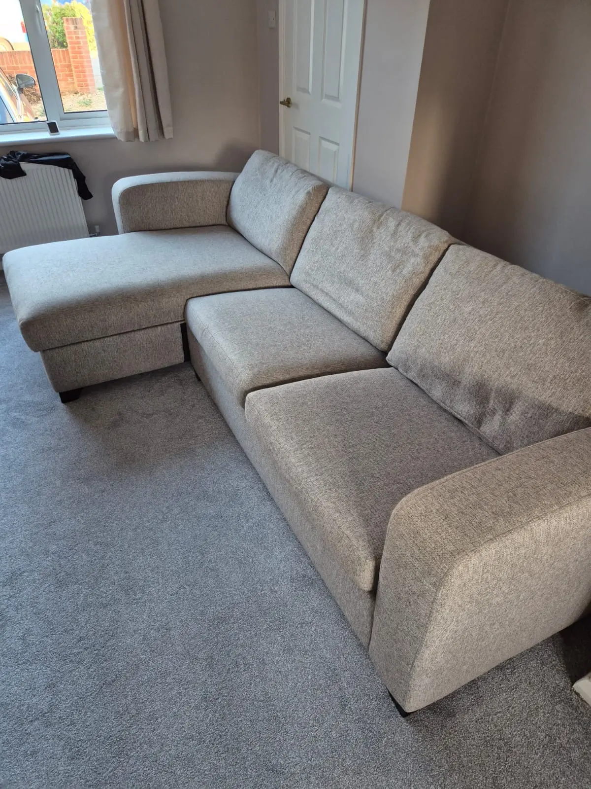 DFS corner sofa with storage under chaise longue. Double sofabed as well. Care kit included. Dimensions: