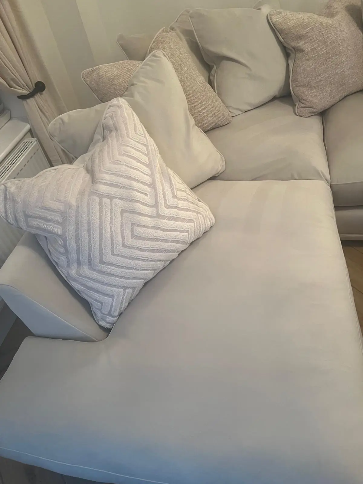 Immaculate condition cream corner sofa, less than 12 months old. All cushions and scatter cushions included.