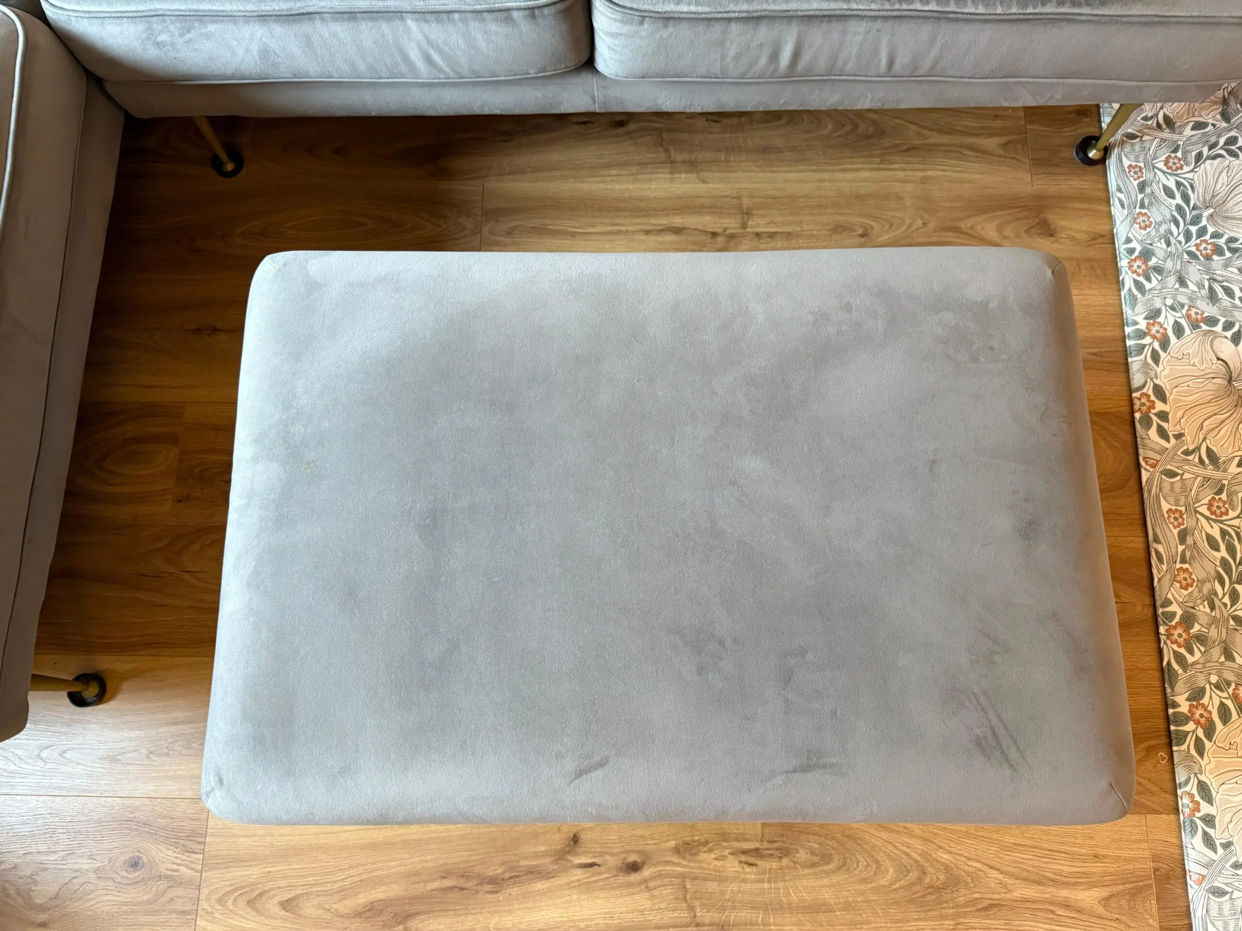1 x 1 x Used DFS Enchanted Bench/Foot Stool – Grey Velvet with Gold Legs