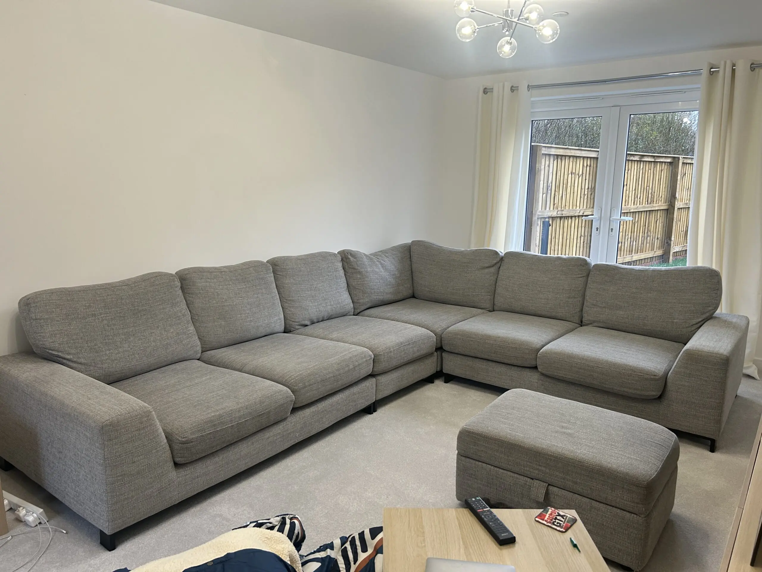 Corner sofa with extra section that can be removed. Sofa can be split for ease of placement. 3 years old. 270cm x 270cm with an extra seat on top. NO OFFERS BELOW £400 WILL BE ACCEPTED.