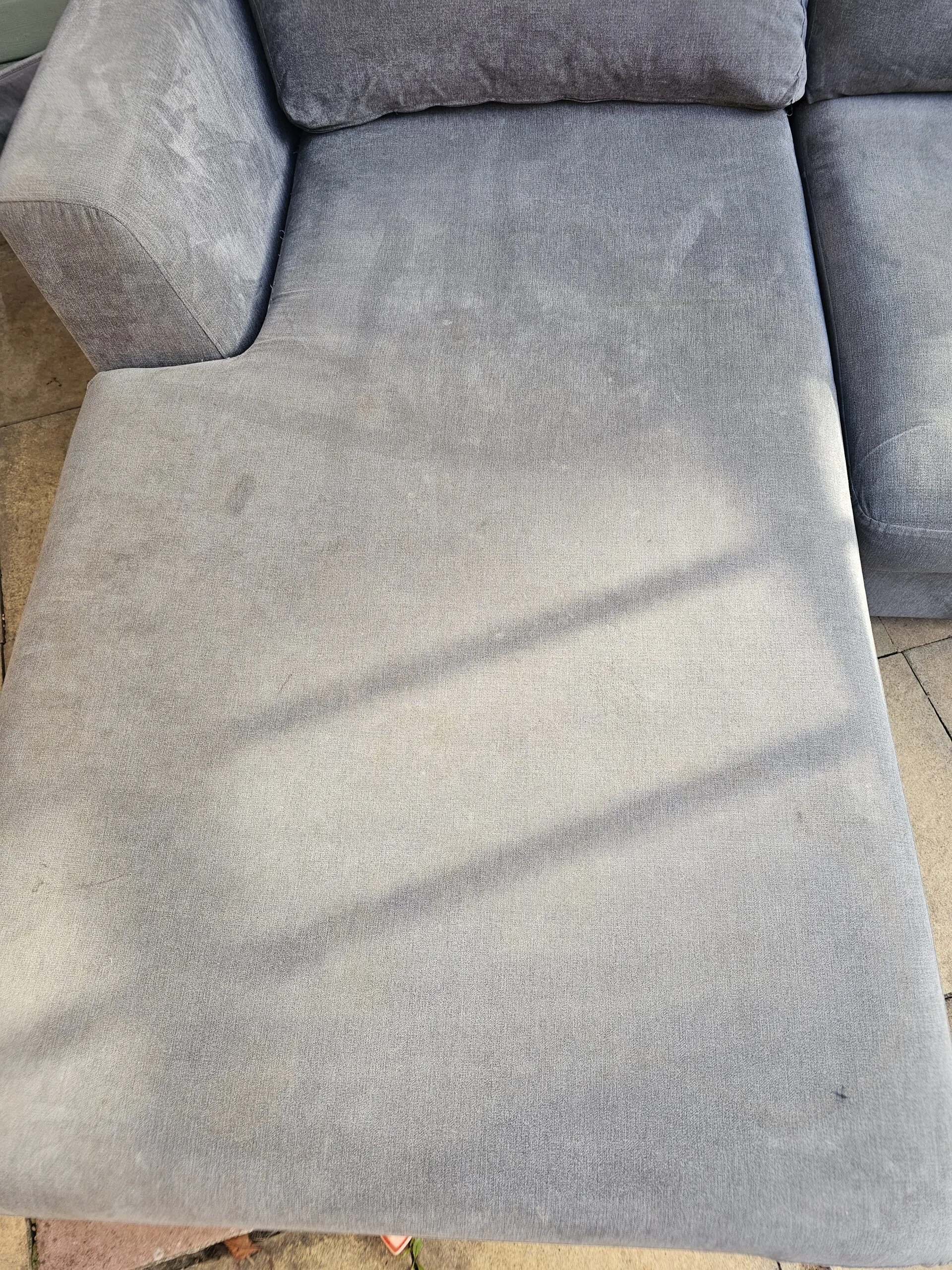 Solid, dependable but still graceful Corner Sofa. No rips or tears, some stains on bottom cushions due to having a child but a fully functional sofa. Looking for a lovely new home, only selling due to buying a bigger sofa.