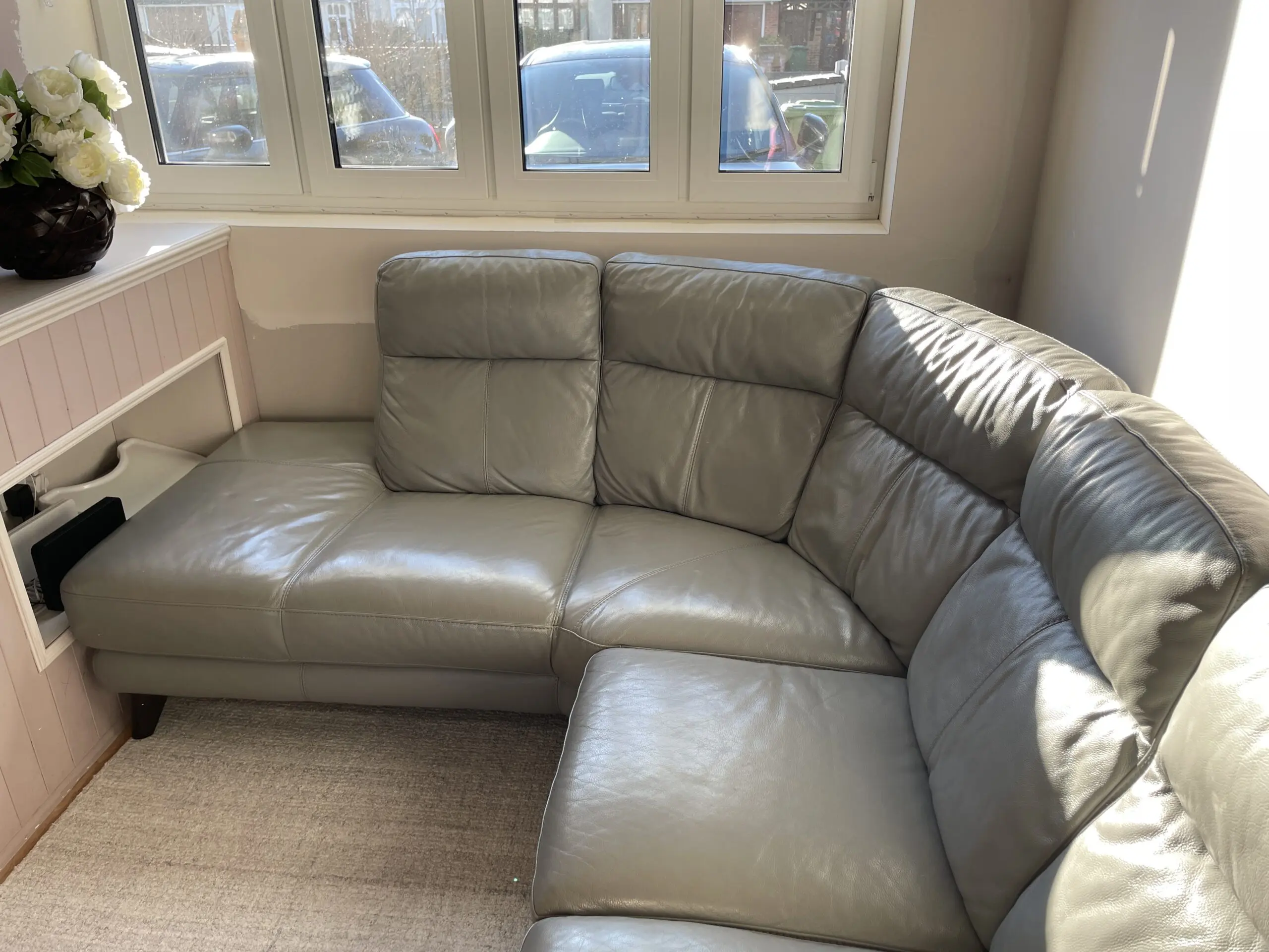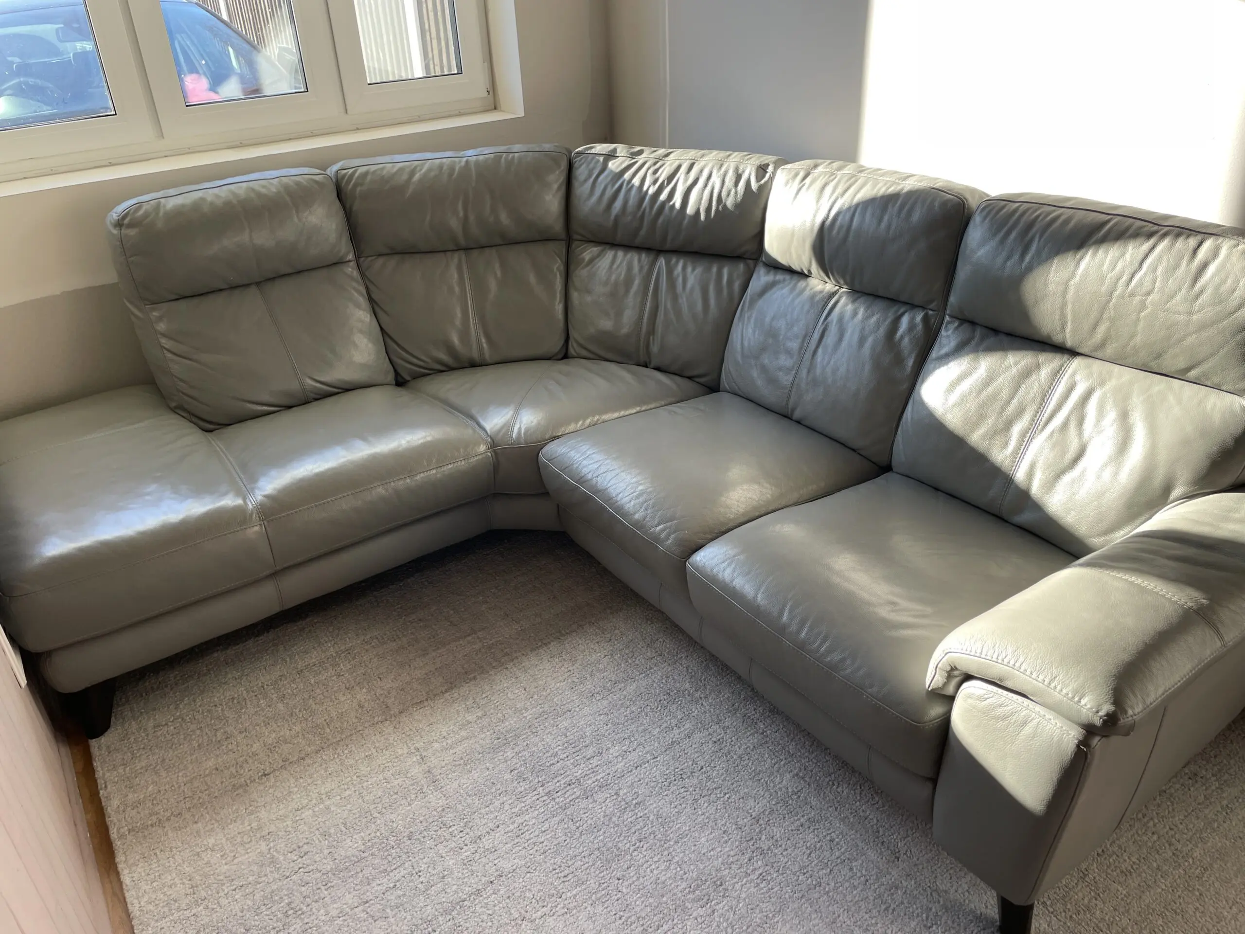 DFS grey corner sofa in really good condition with slight wear on the seat on the front . Comes in 2 parts