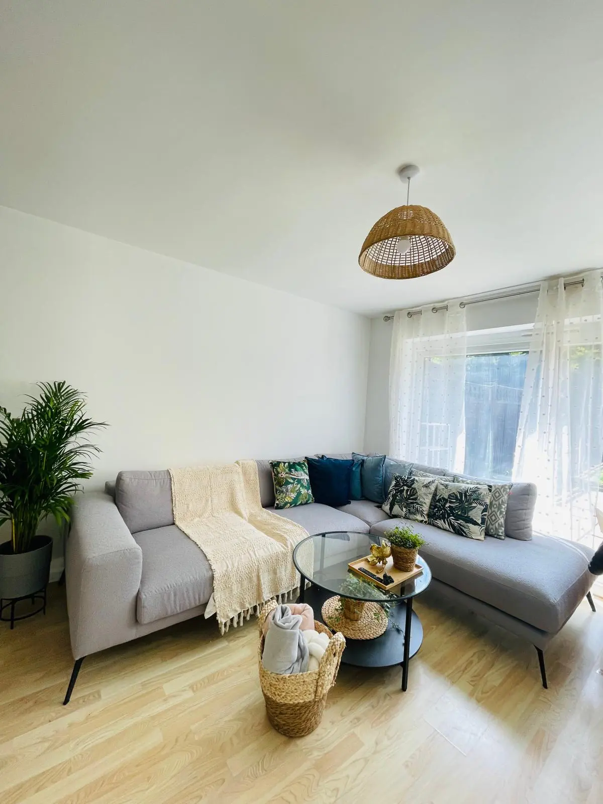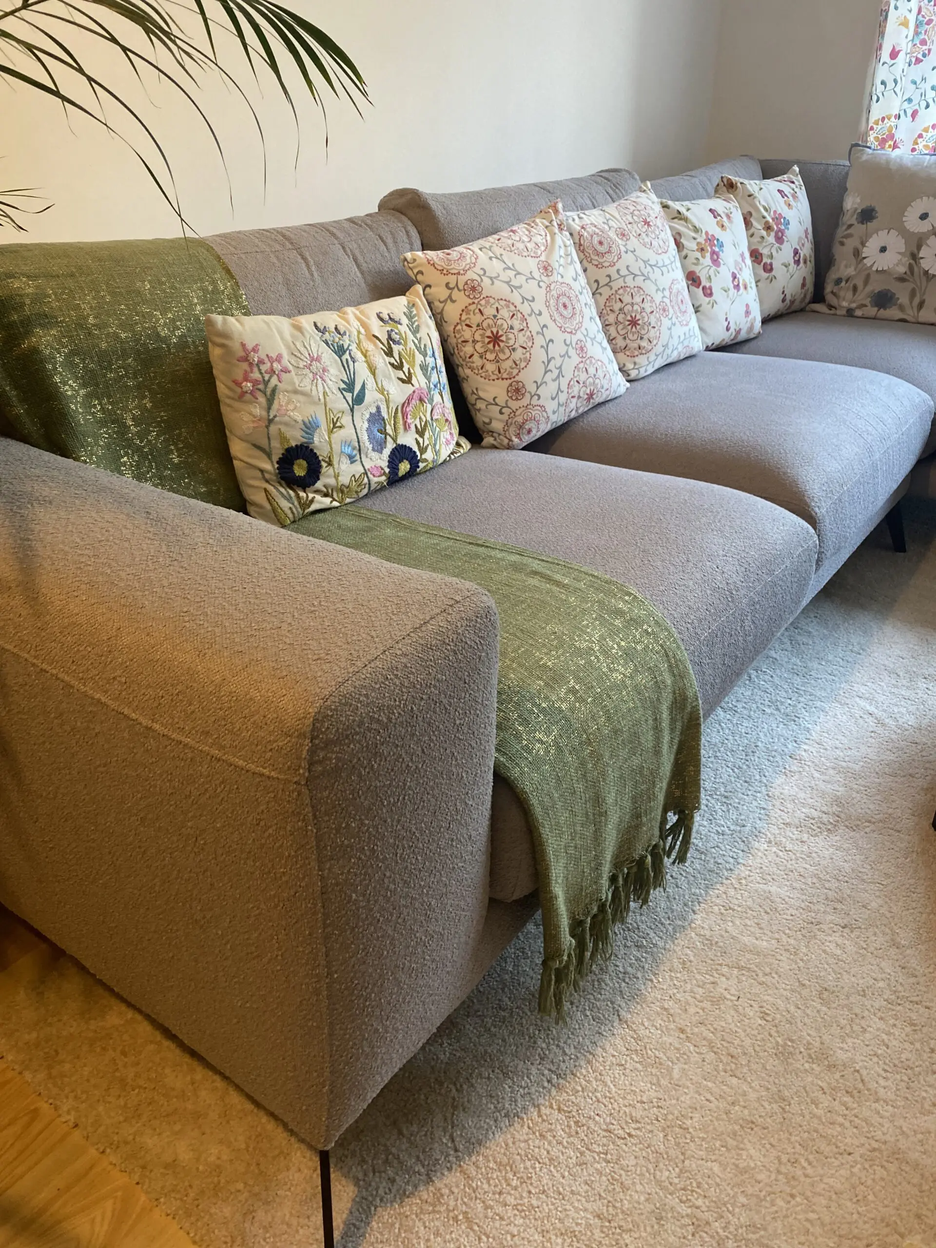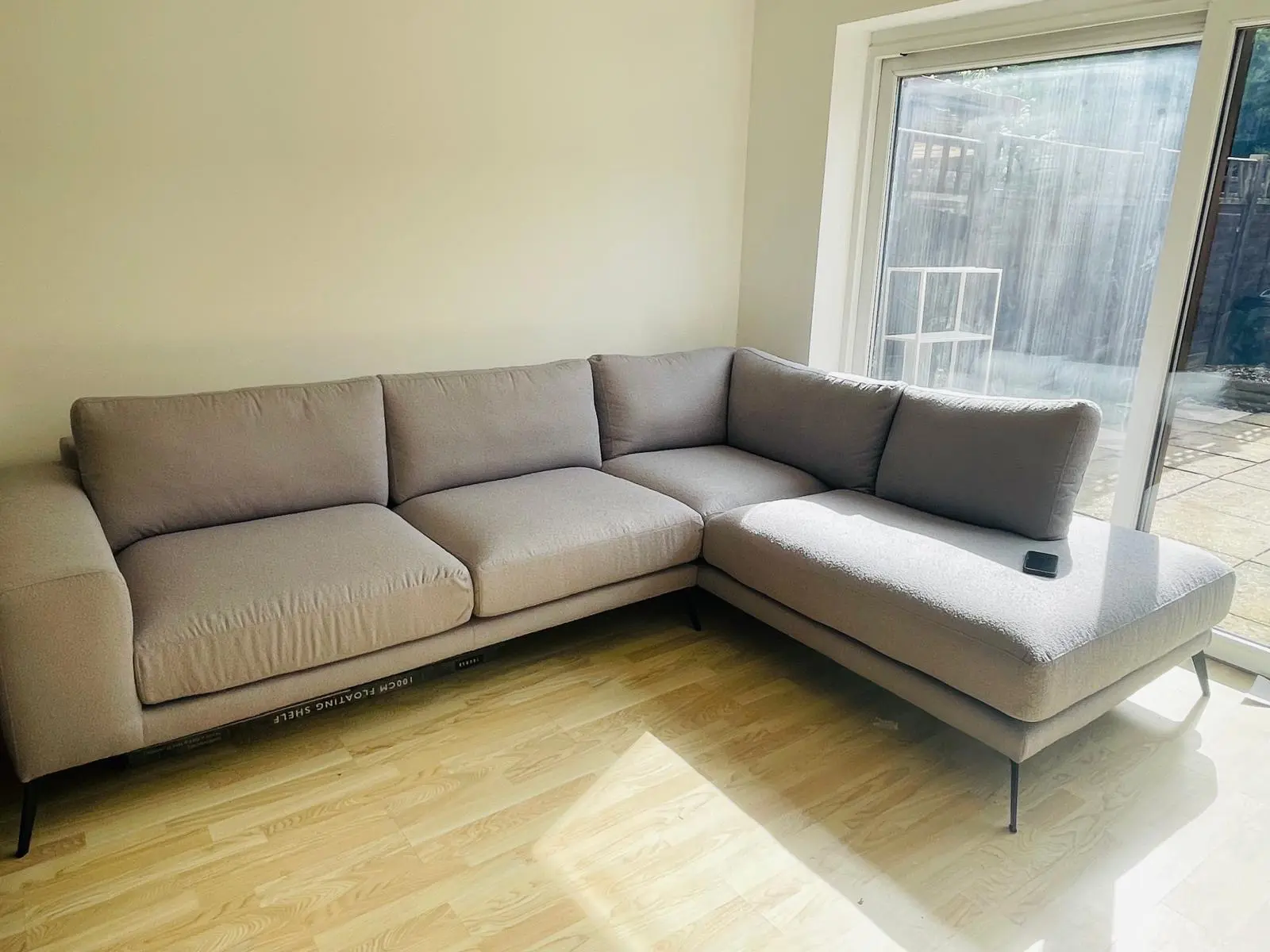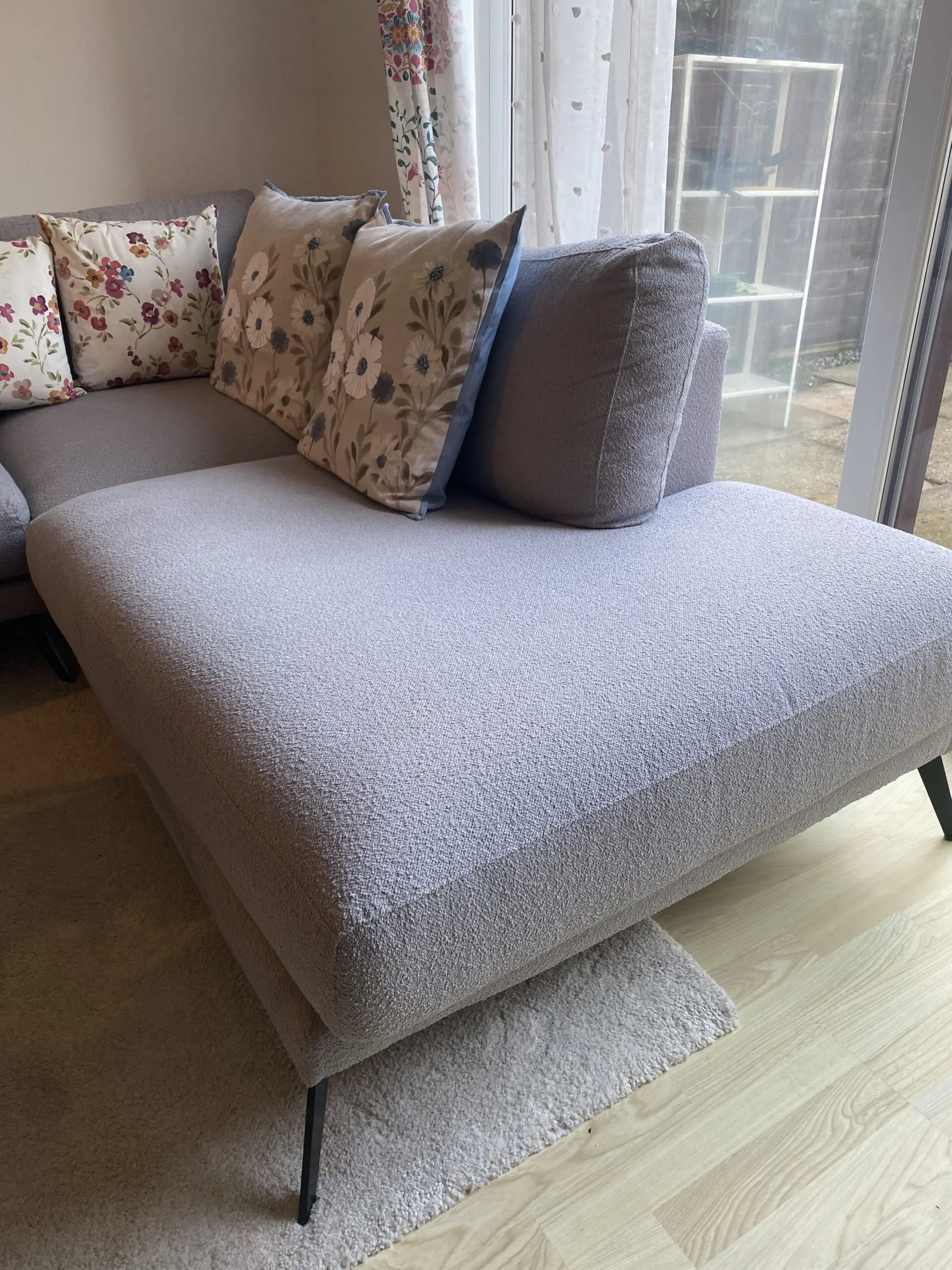 Modern light grey fabric, perfect for lounging and entertaining