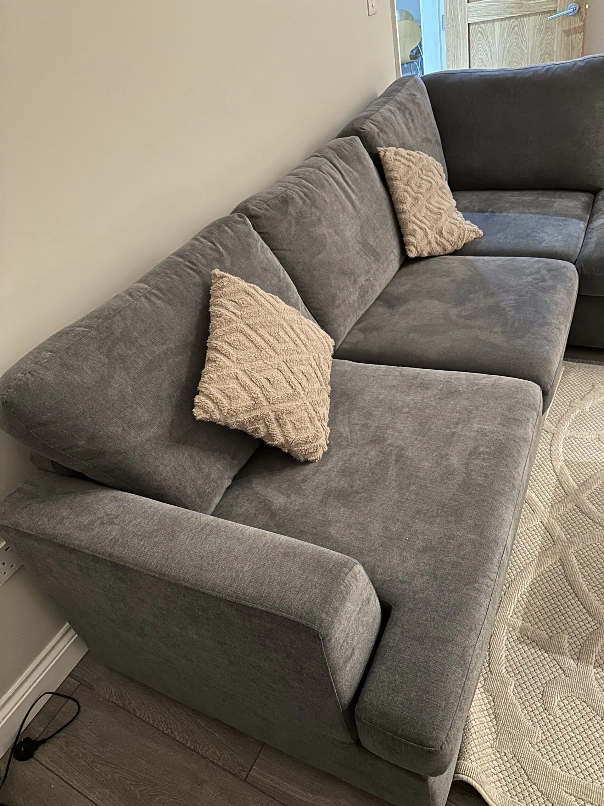Almost new. Selling due to relocation. This is a grey corner sofa from DFS