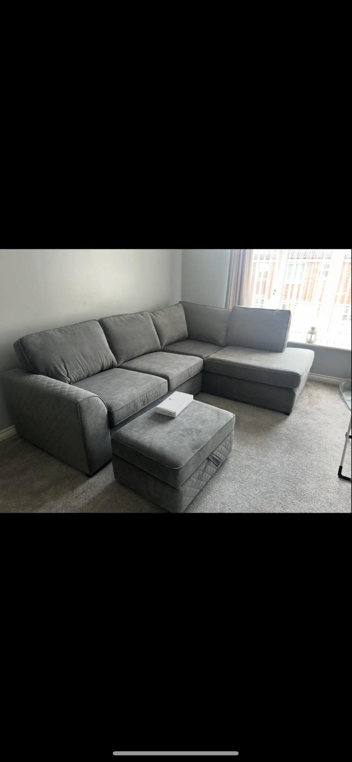 DFS grey left hand corner sofa bundle. left hand sofa with large footstool. had for 1.5 year in great condition, no stains, rips or tears. only selling as moving.