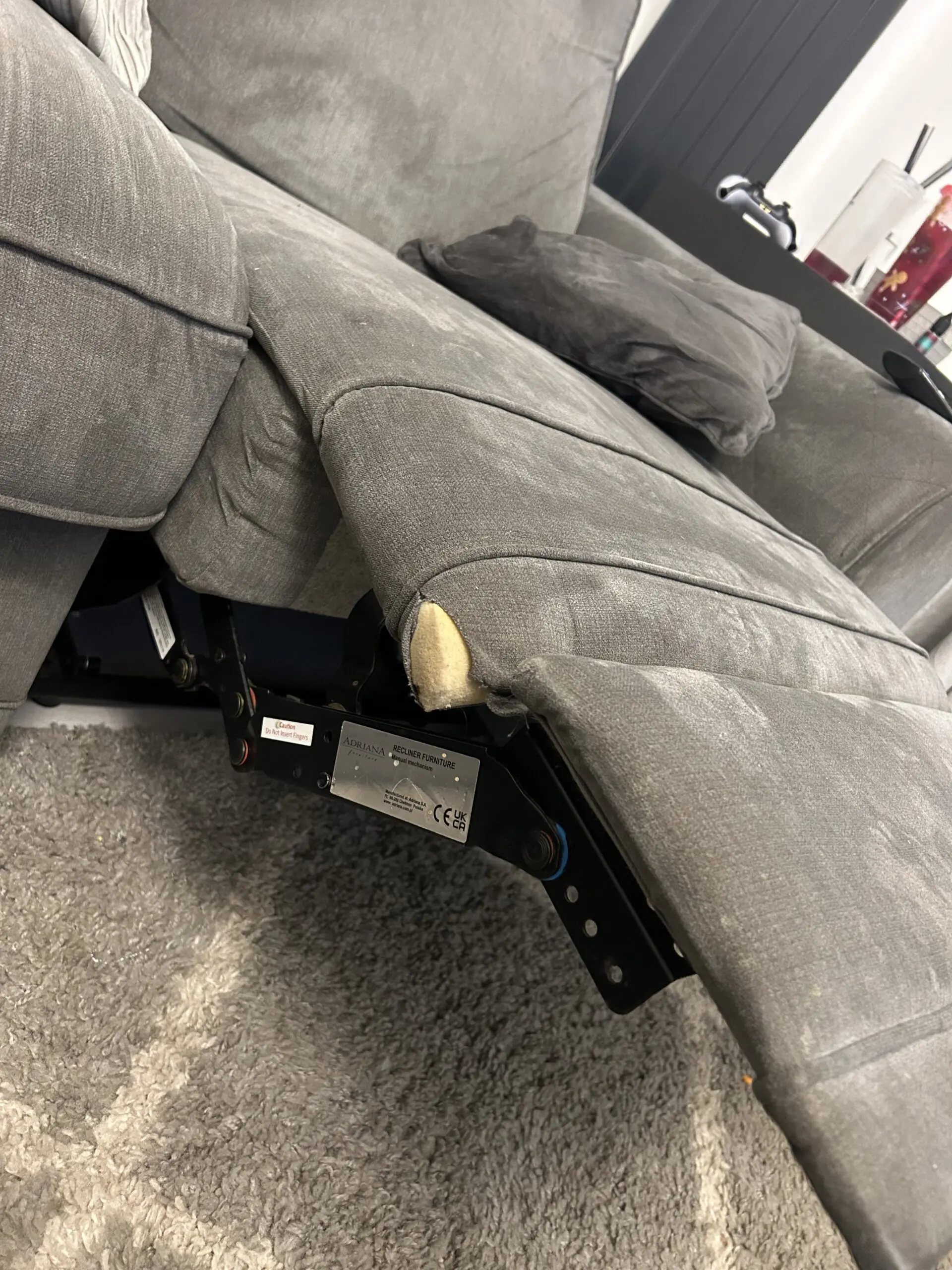 Great corner sofa only 2 year old just needs a clean and got a small bit of the memory foam poking out the recline part