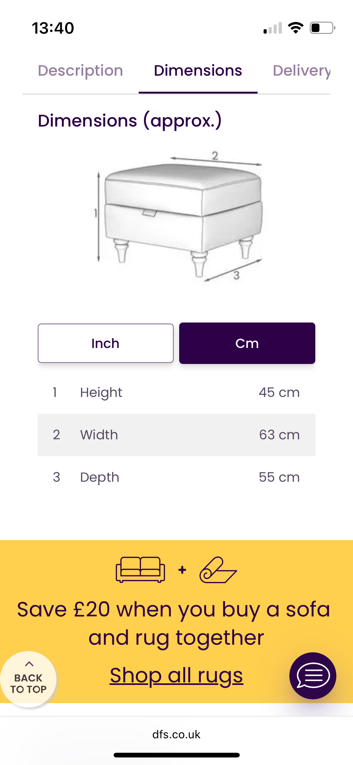 Comes with matching footstool and Fabric Care Kit