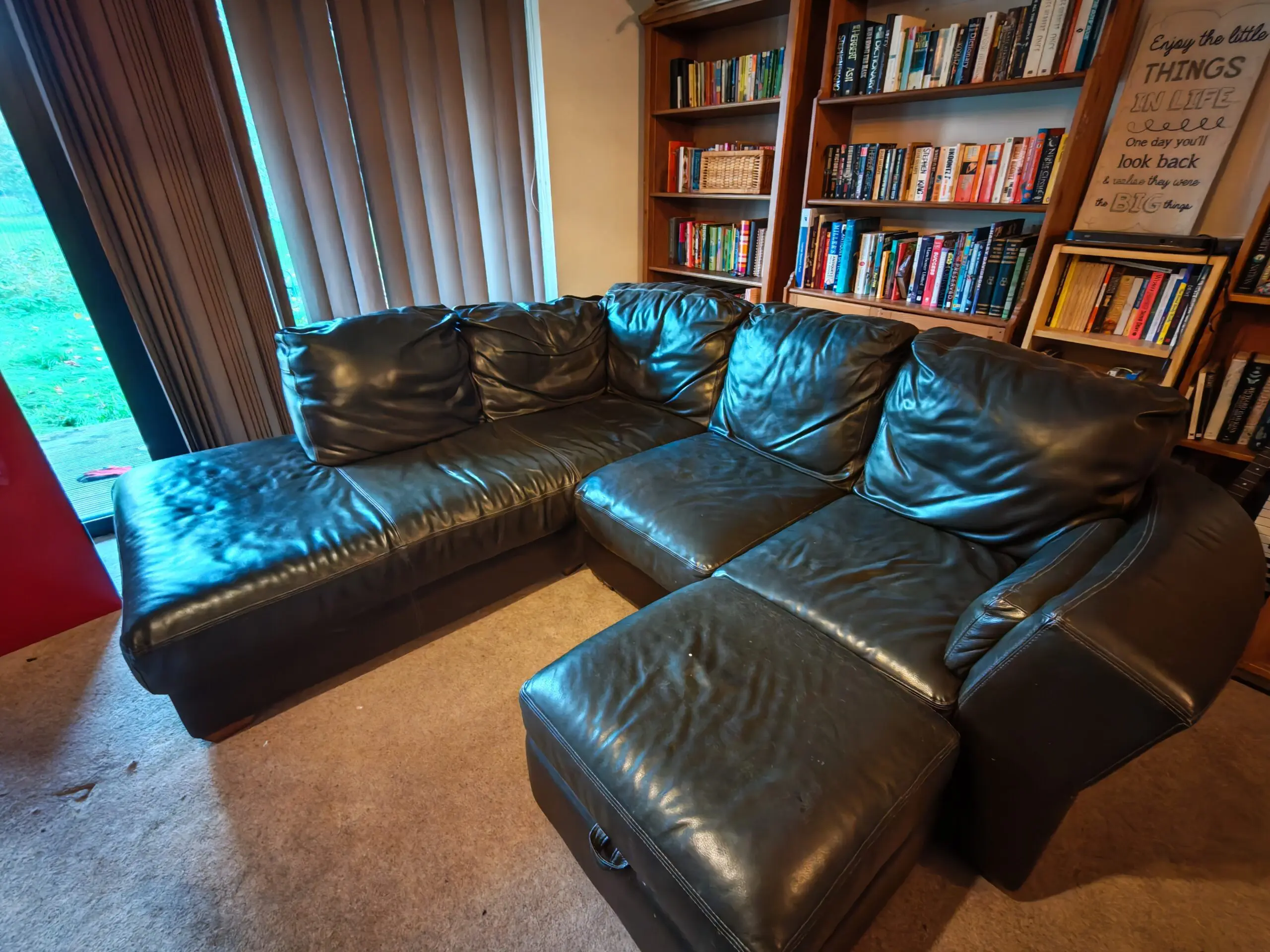 This spacious corner sofa offers exceptional comfort and plenty of seating for the whole family. The L-shaped design features a generous chaise lounge section, making it ideal for relaxing and entertaining. With deep, plush cushions and classic styling, it would suit both traditional and contemporary living spaces. The corner configuration maximises seating whilst making efficient use of room space, perfect for cosy family evenings or hosting guests.