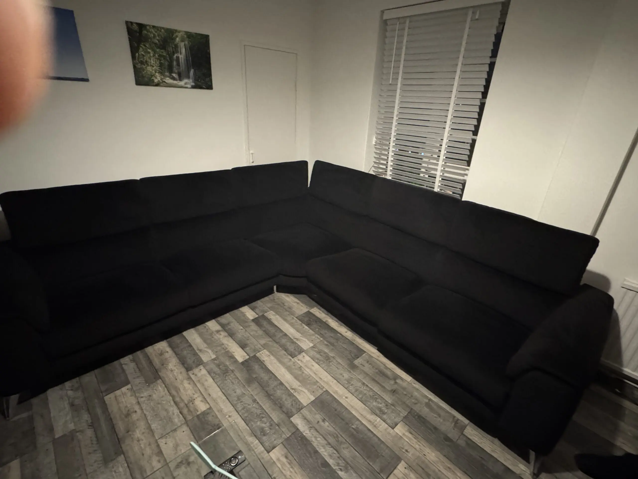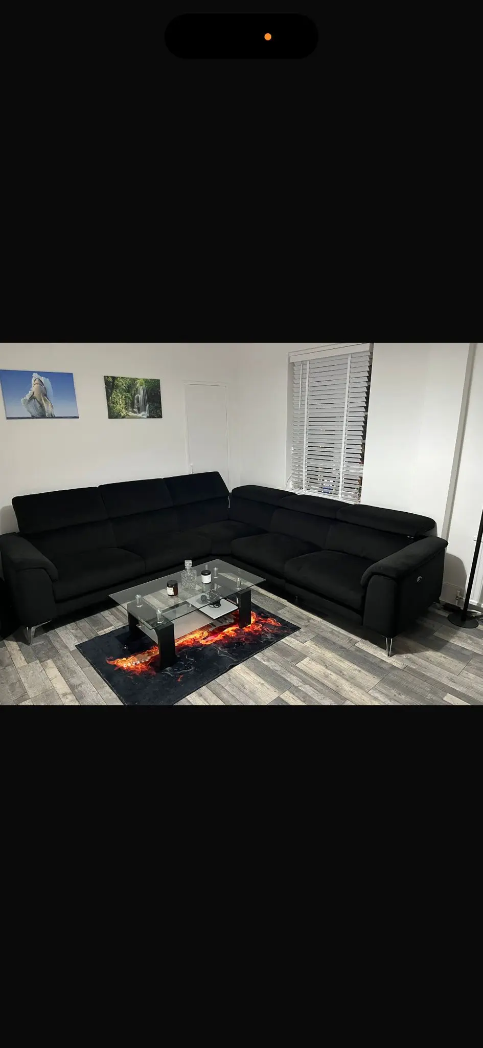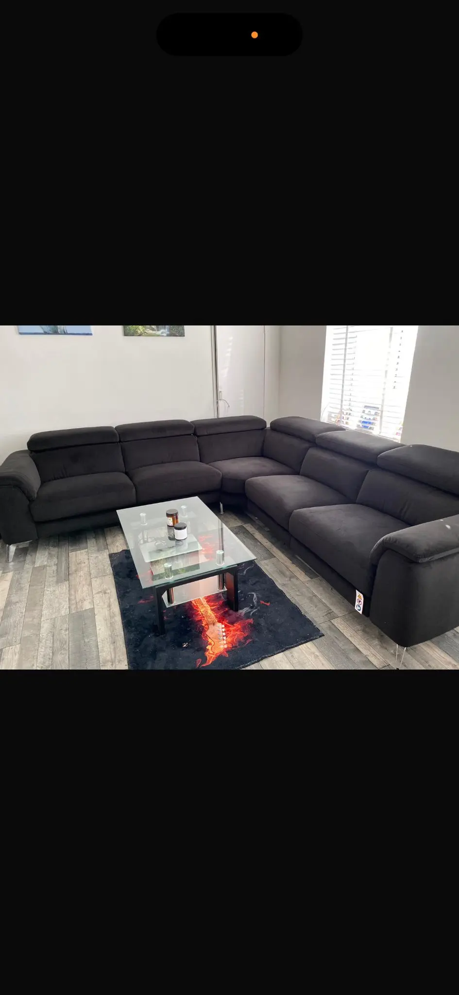 This stylish corner sofa offers excellent comfort and versatility for any modern living room. The contemporary design features adjustable headrests and generous seating space, making it perfect for family gatherings or relaxing evenings. With its sleek lines and practical L-shaped configuration, it maximises seating whilst fitting neatly into corner spaces. The neutral dark colour will complement any interior décor scheme beautifully. 2 corner units, one with electric reclining seat, and a middle unit. Recliner unit has USB unit for charging phone etc. comes with the cleaning products that were £250 alone