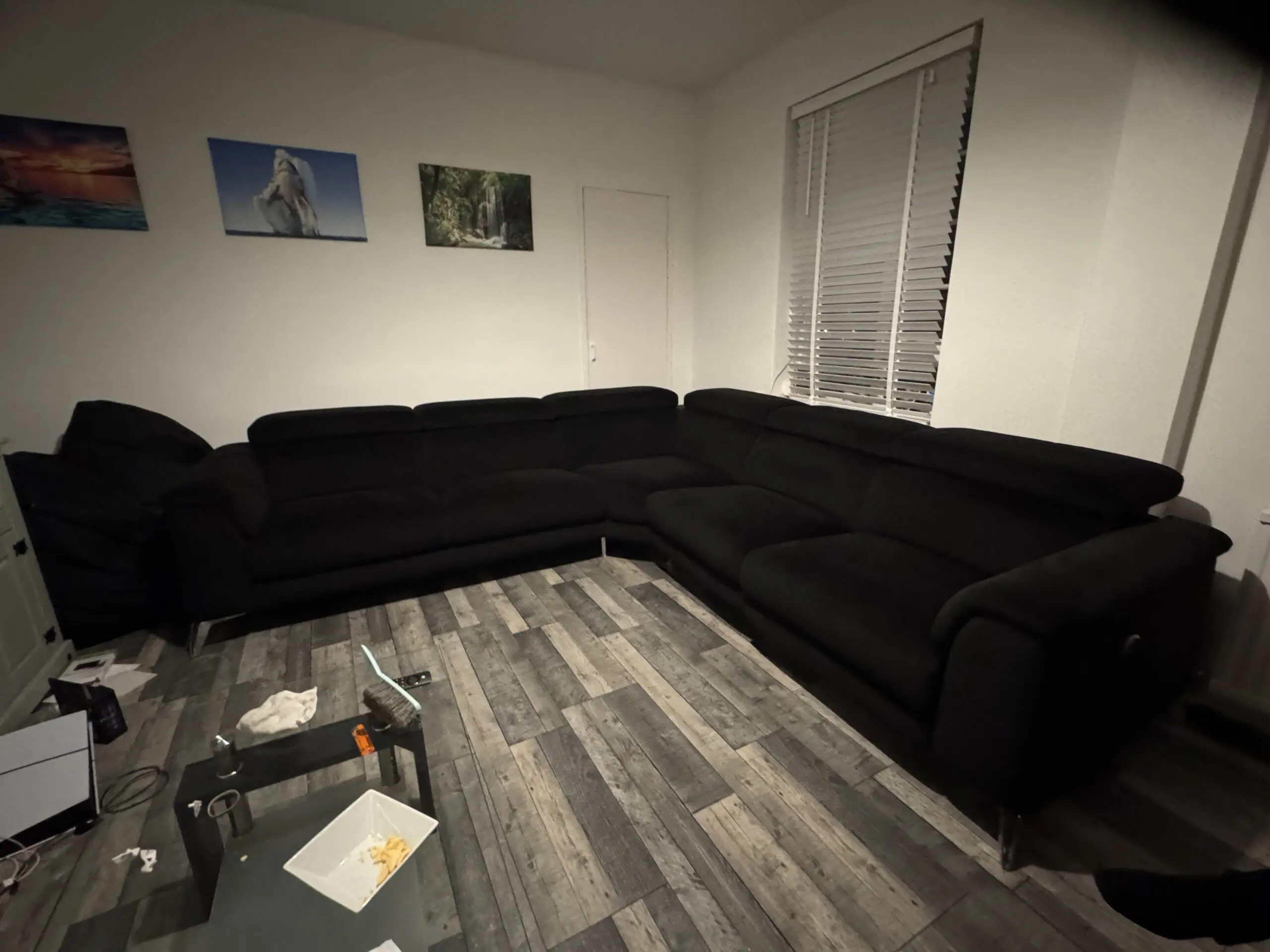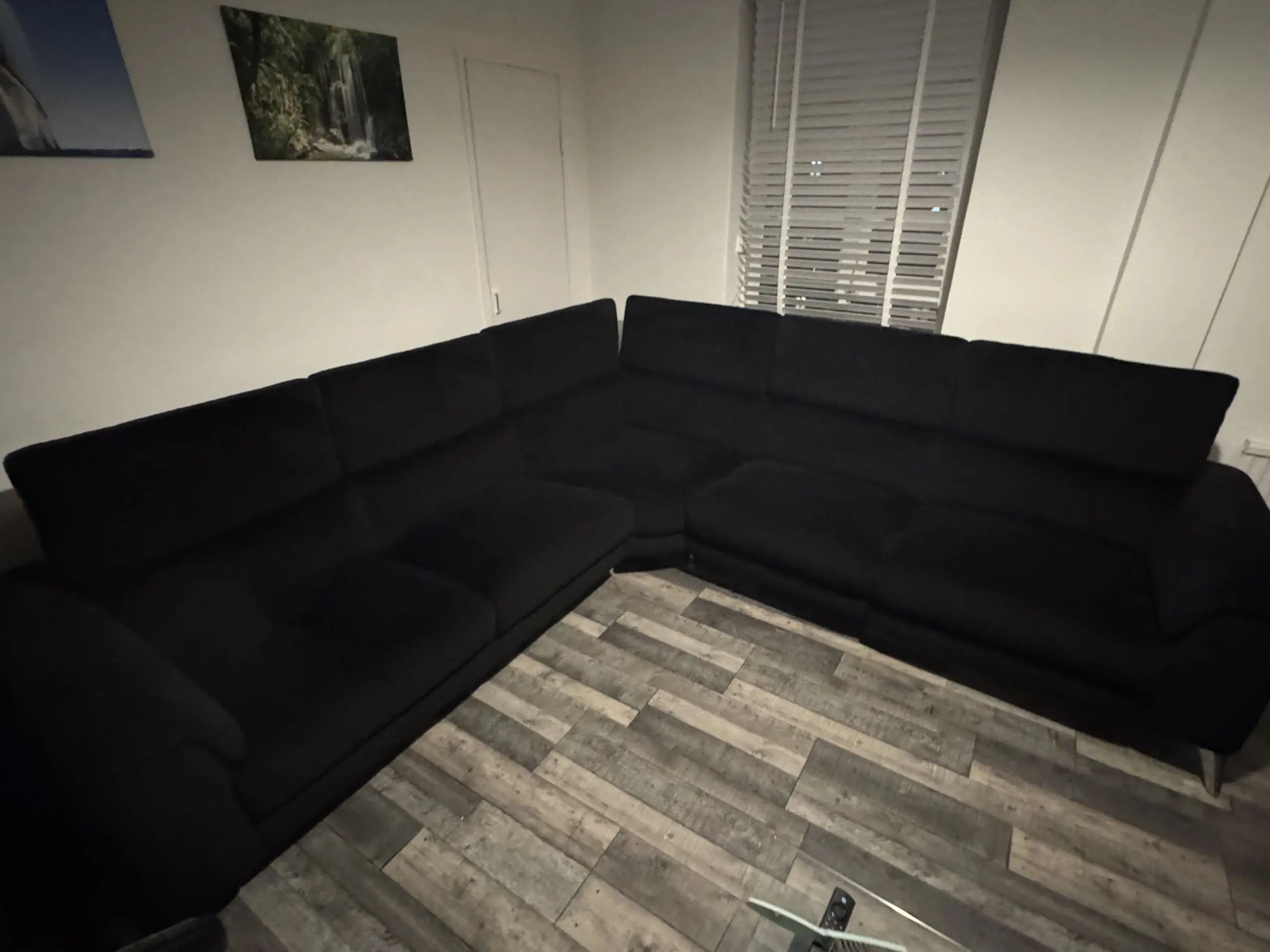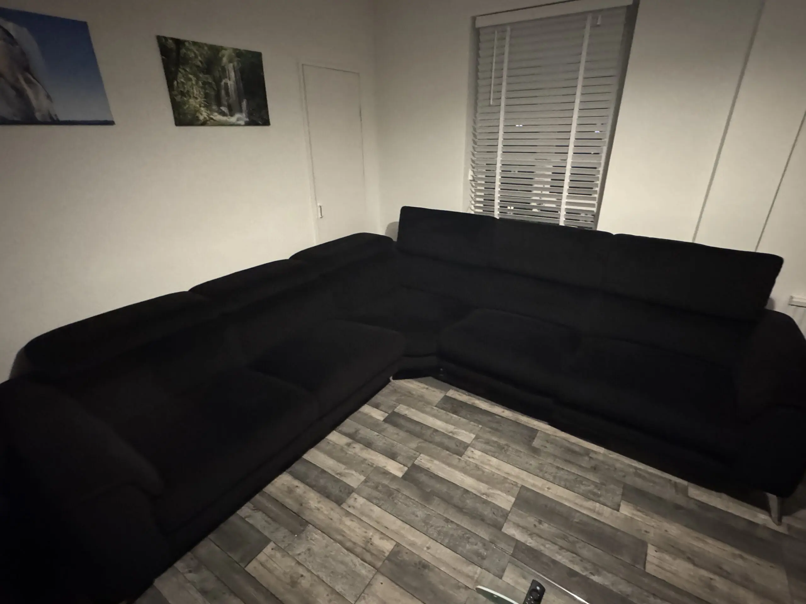 This stylish corner sofa offers excellent comfort and versatility for any modern living room. The contemporary design features adjustable headrests and generous seating space, making it perfect for family gatherings or relaxing evenings. With its sleek lines and practical L-shaped configuration, it maximises seating whilst fitting neatly into corner spaces. The neutral dark colour will complement any interior décor scheme beautifully. 2 corner units, one with electric reclining seat, and a middle unit. Recliner unit has USB unit for charging phone etc. comes with the cleaning products that were £250 alone