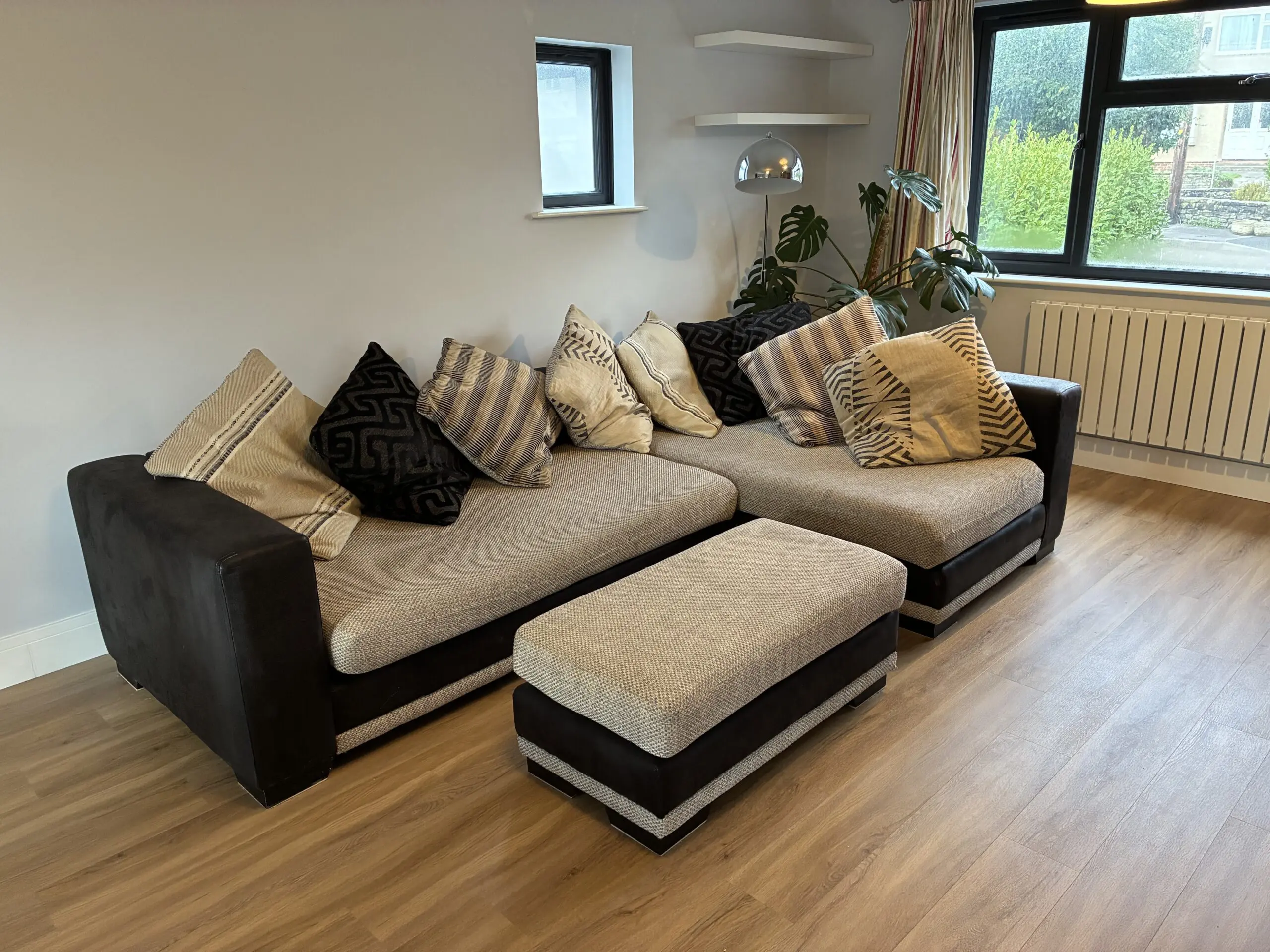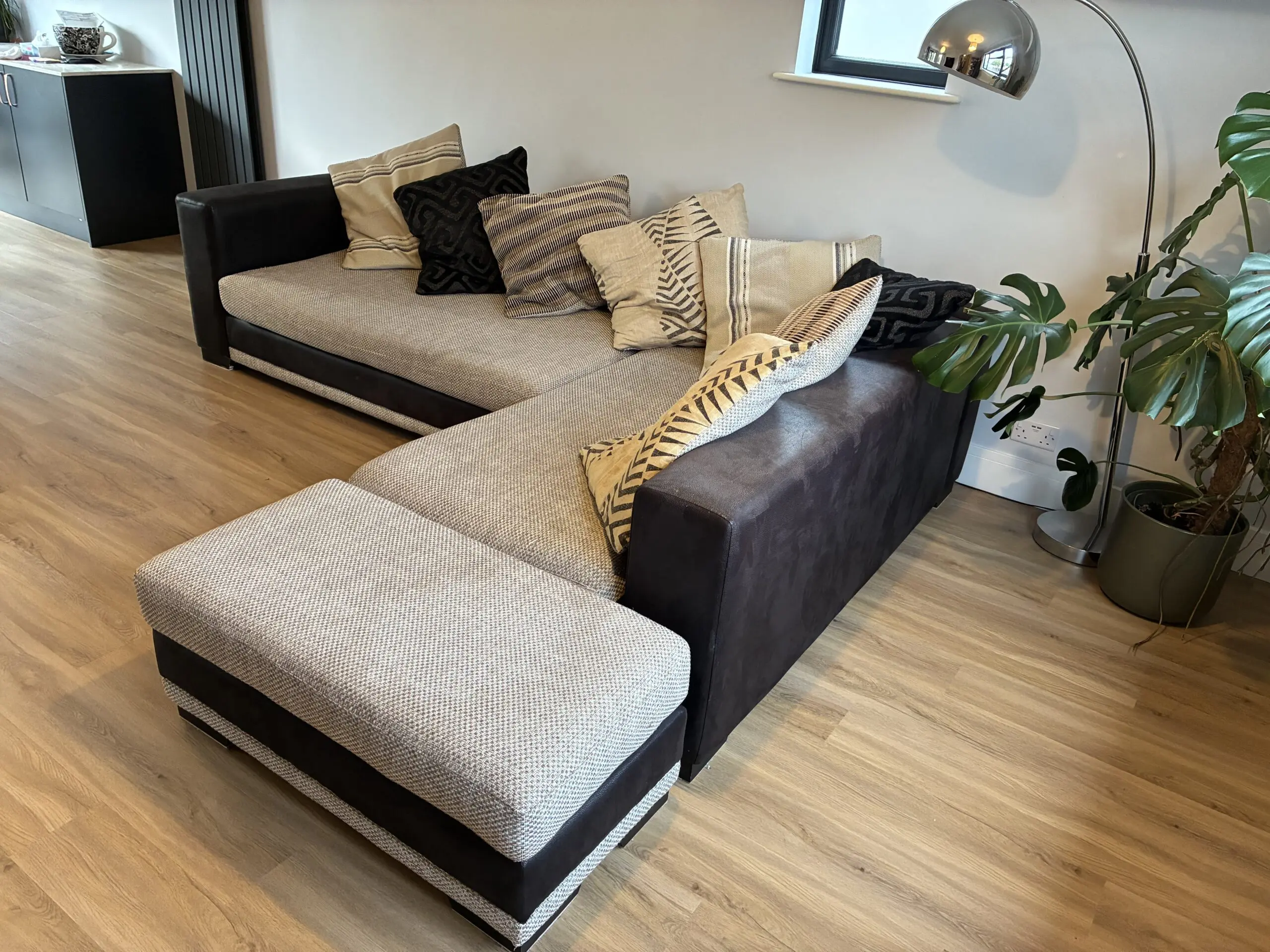 DFS Monaco left hand corner sofa with 8 scatter back cushions