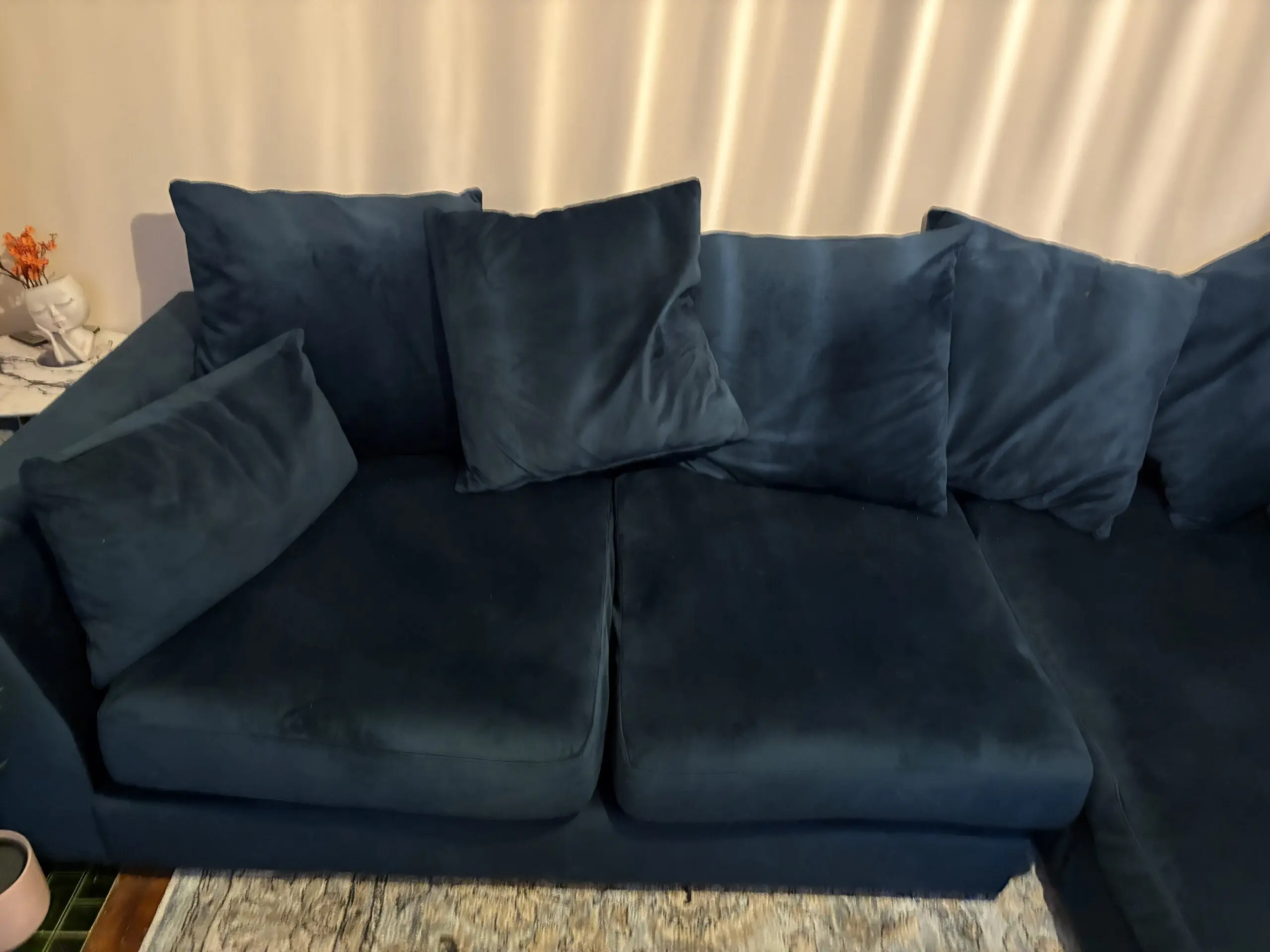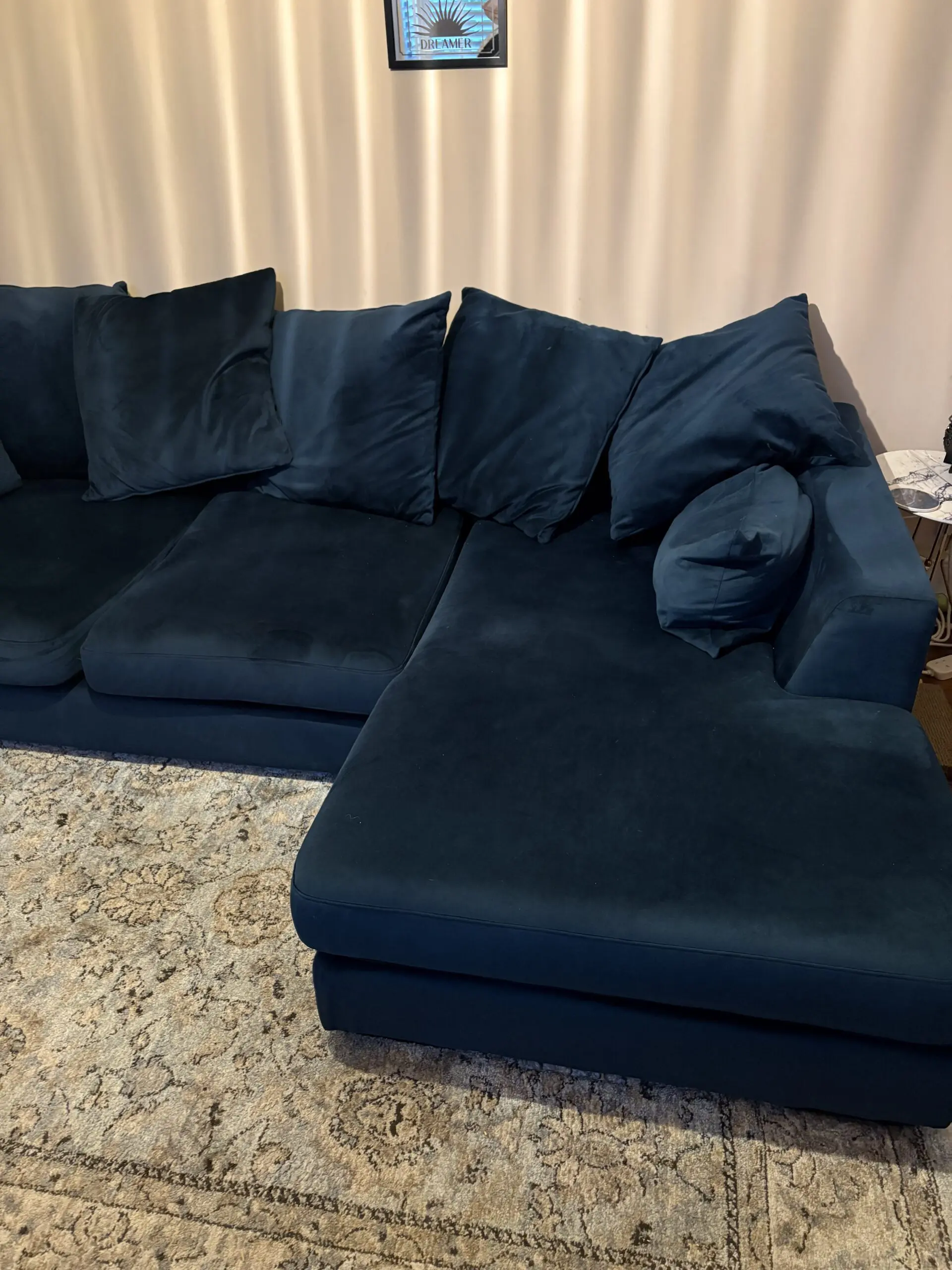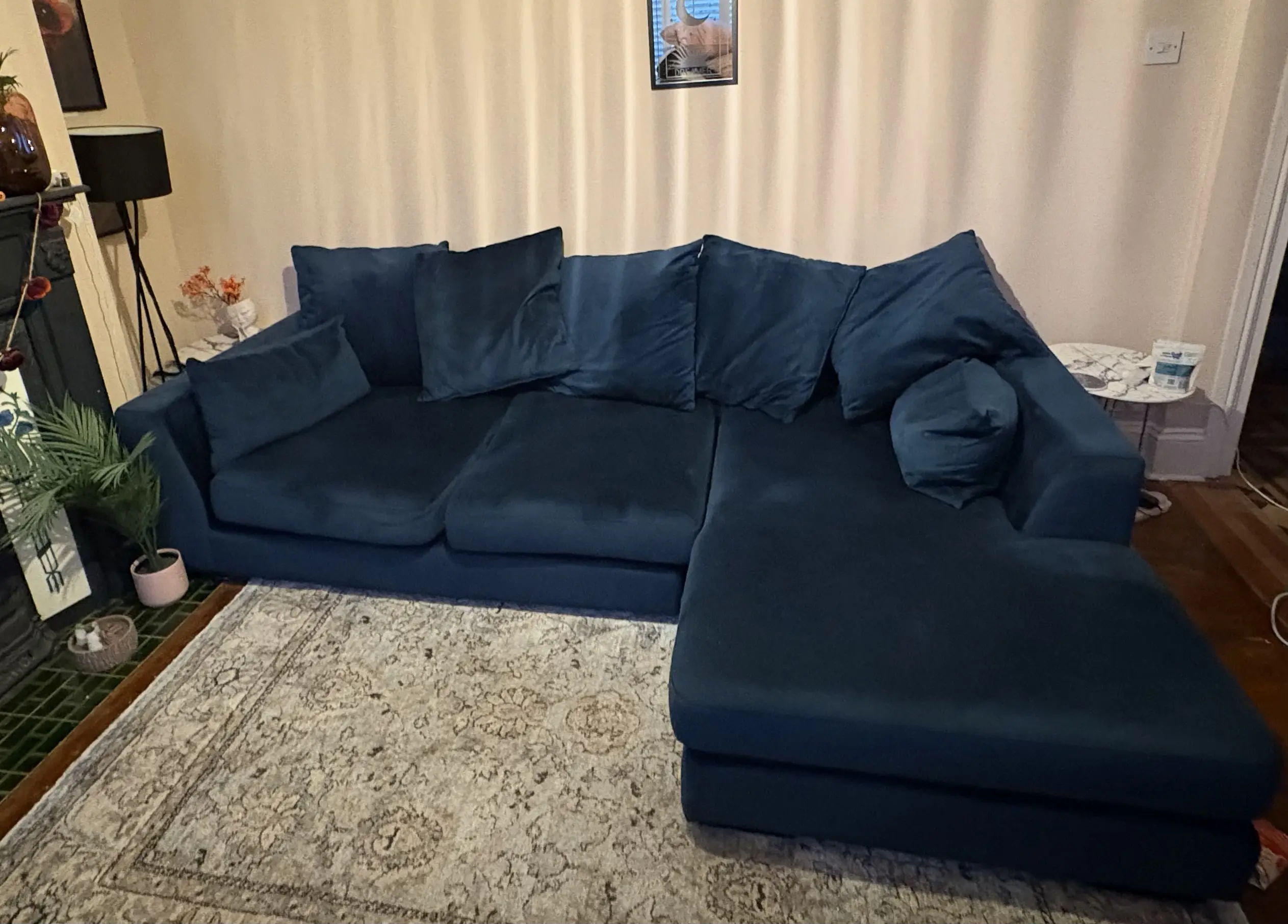 Navy Velvet Pillow Back Left Hand Facing Small Chaise End Sofa with storage footstool