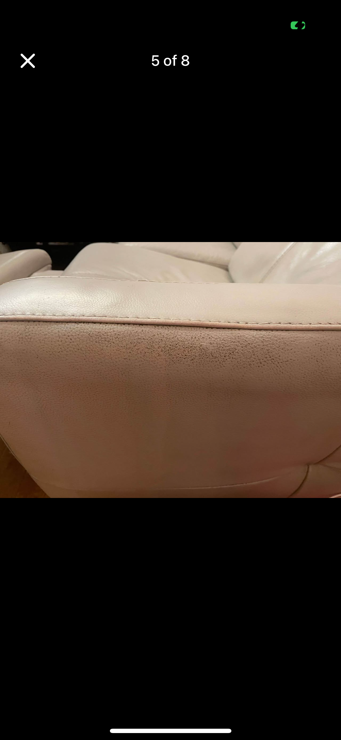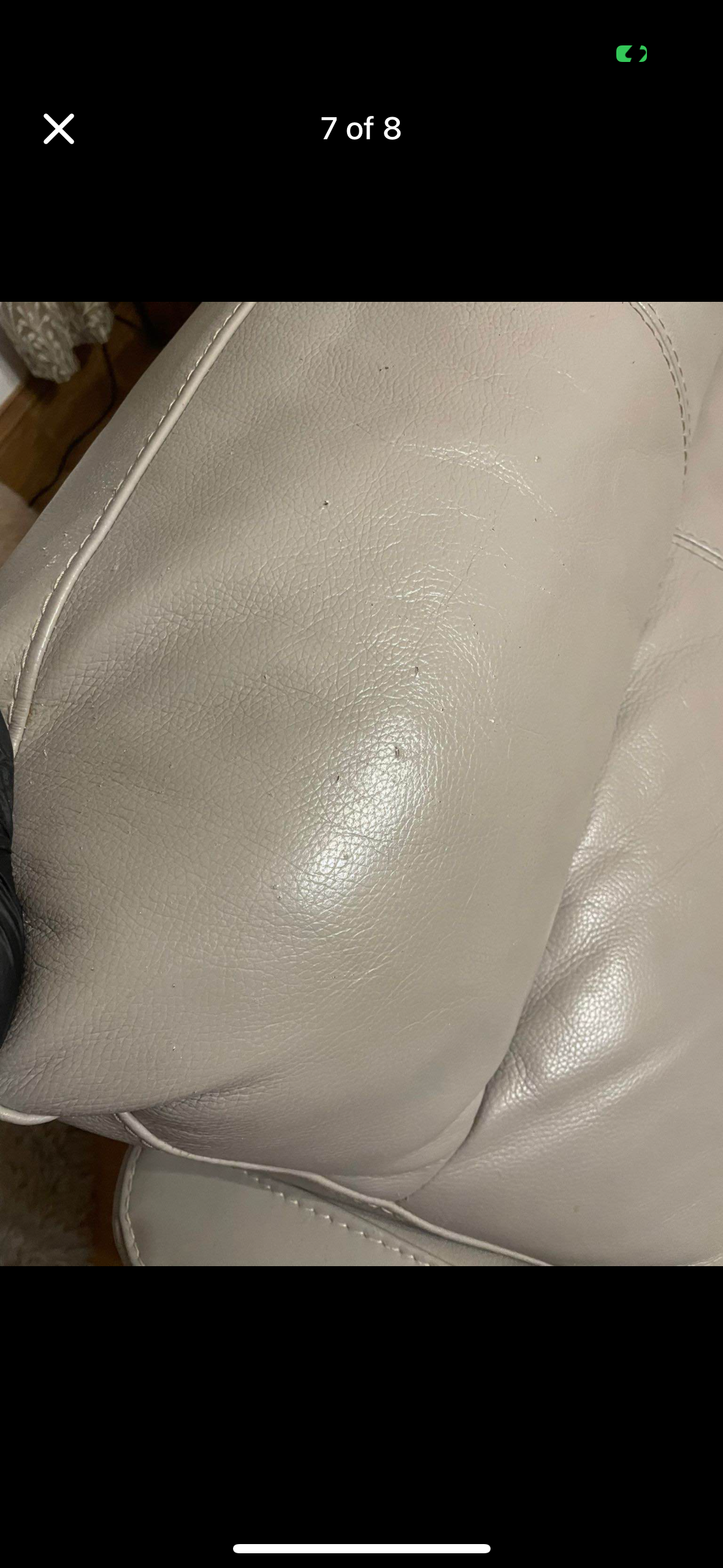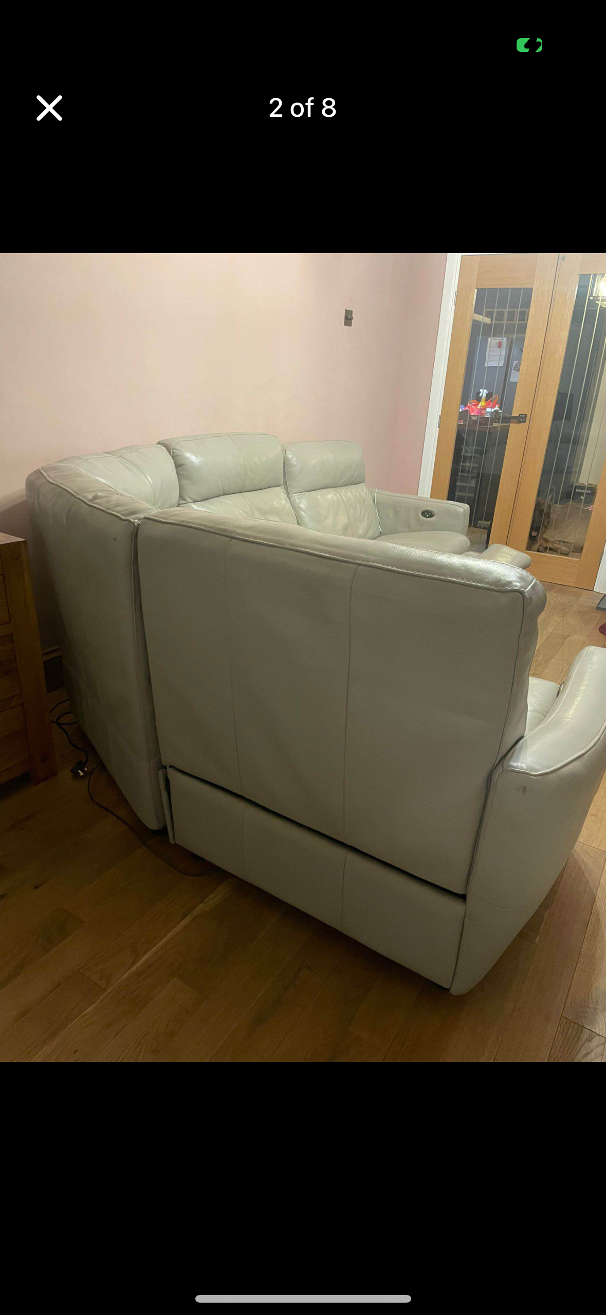 Well-loved but still in decent condition. This DFS grey leather recliner sofa has some wear and tear (see photos for details), but it’s comfy and has plenty of life left in it.