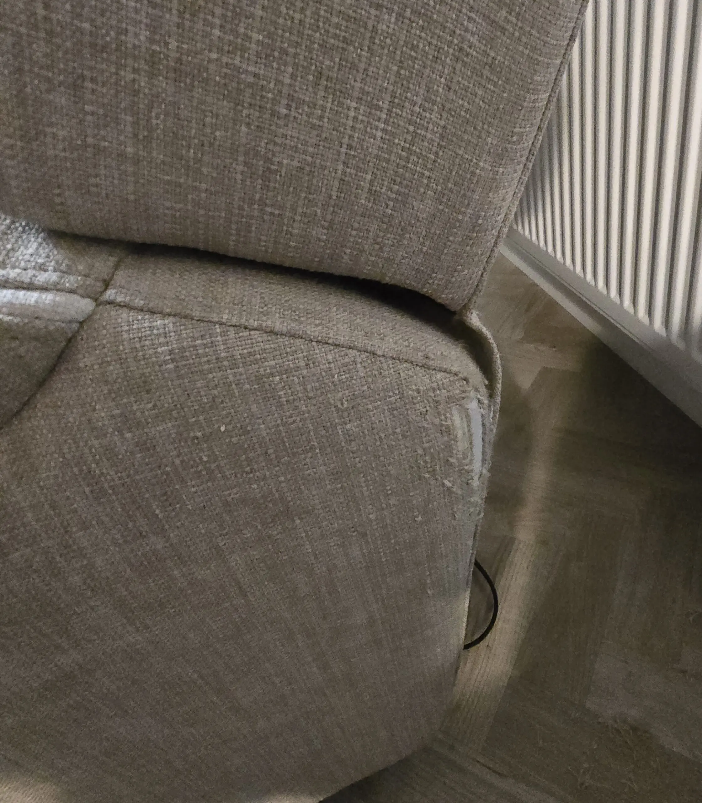 There is slight damage to both sides of the sofa due to our cat plucking it, but it is not overly noticeable (pictures shown).