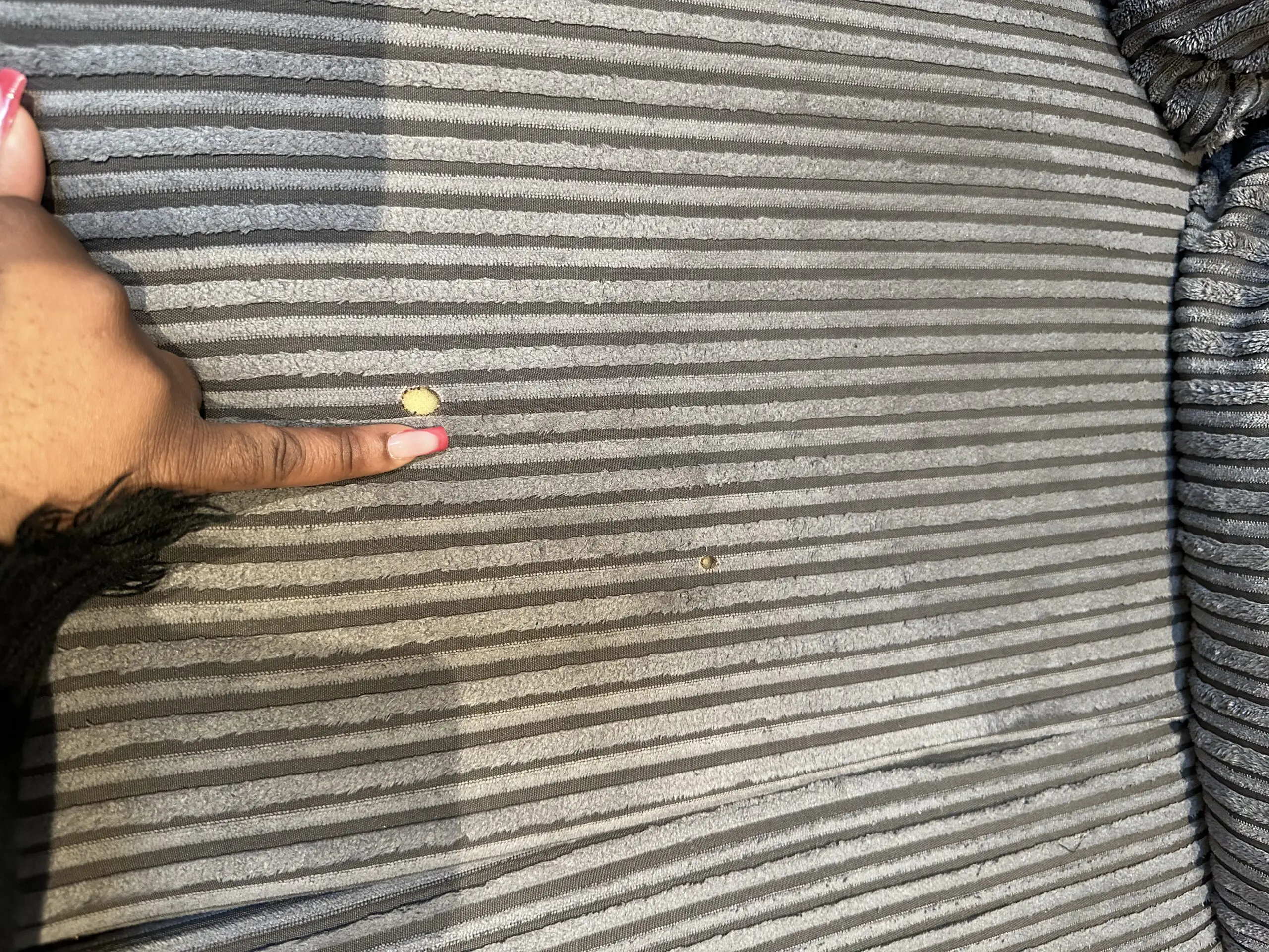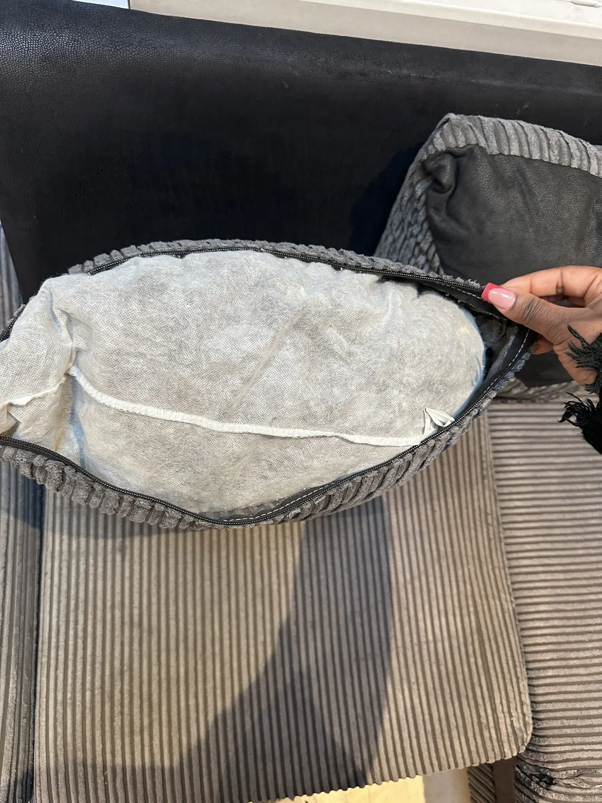 Been used for just over a year, however one zip has broken on the pillow cover after trying to put back on after washing and one seat has 2 tiny tumble dryer burns on it.
