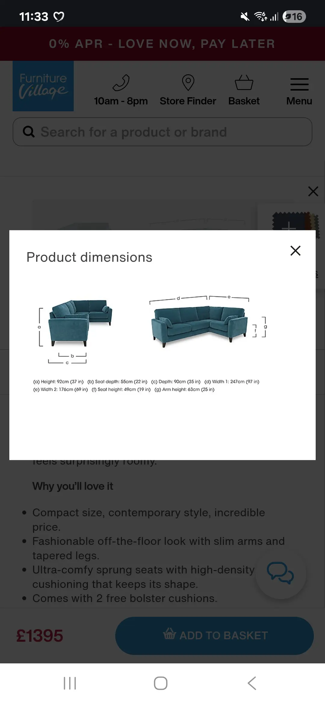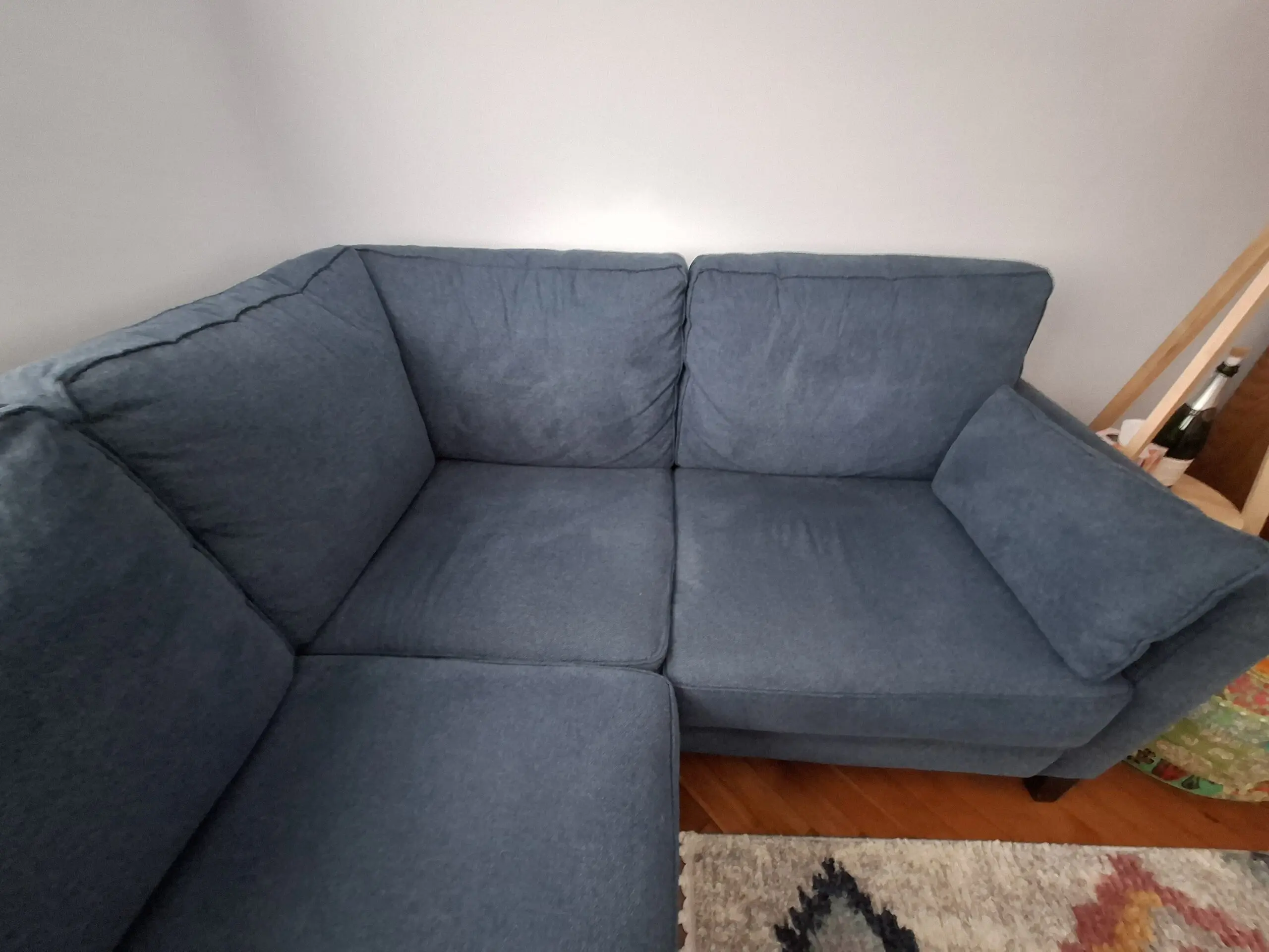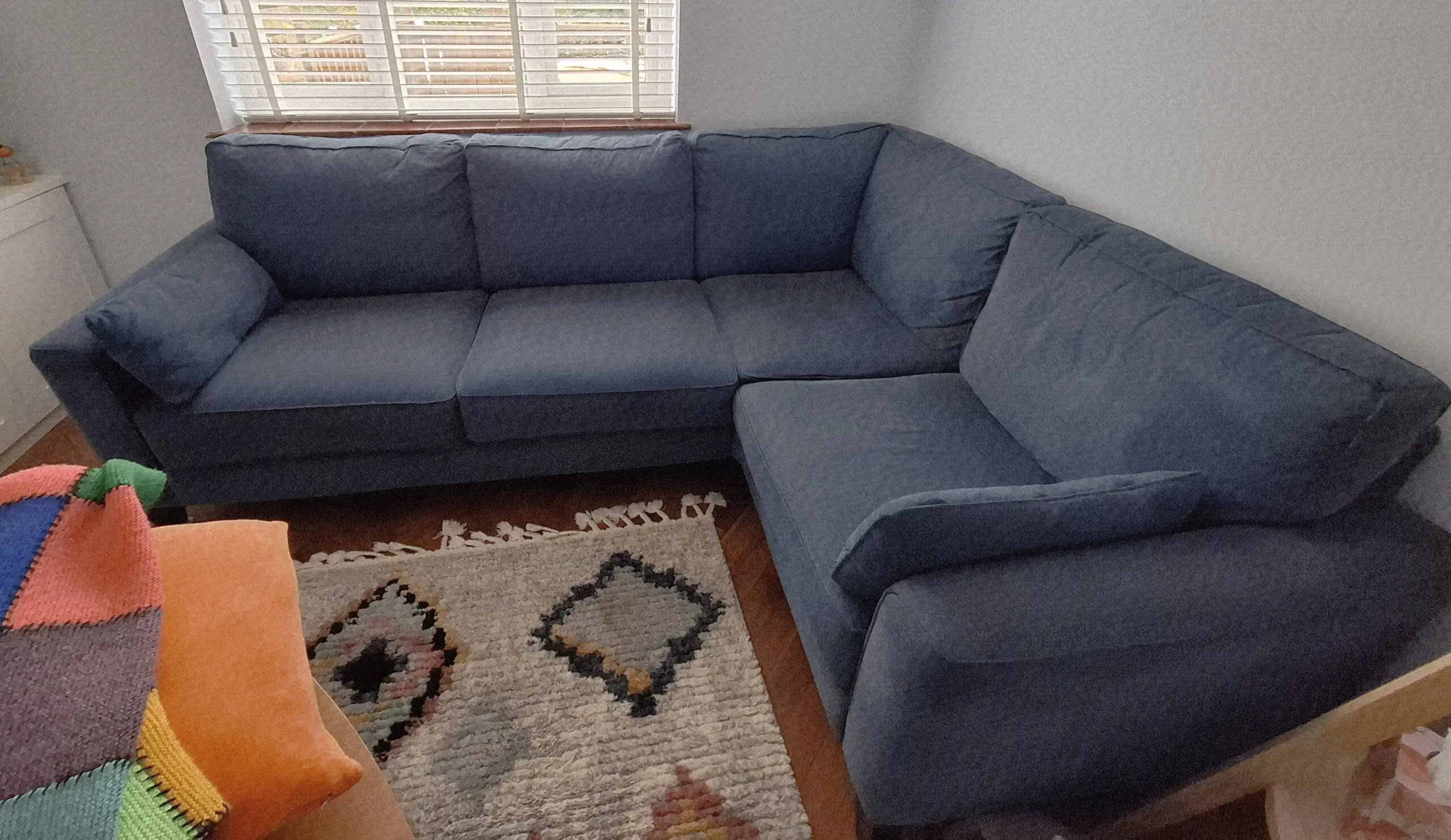Very good condition blue corner sofa from Furniture Village. Model name is Brondby. Had for 2.5 years but doesn’t fit our current living room very well.
