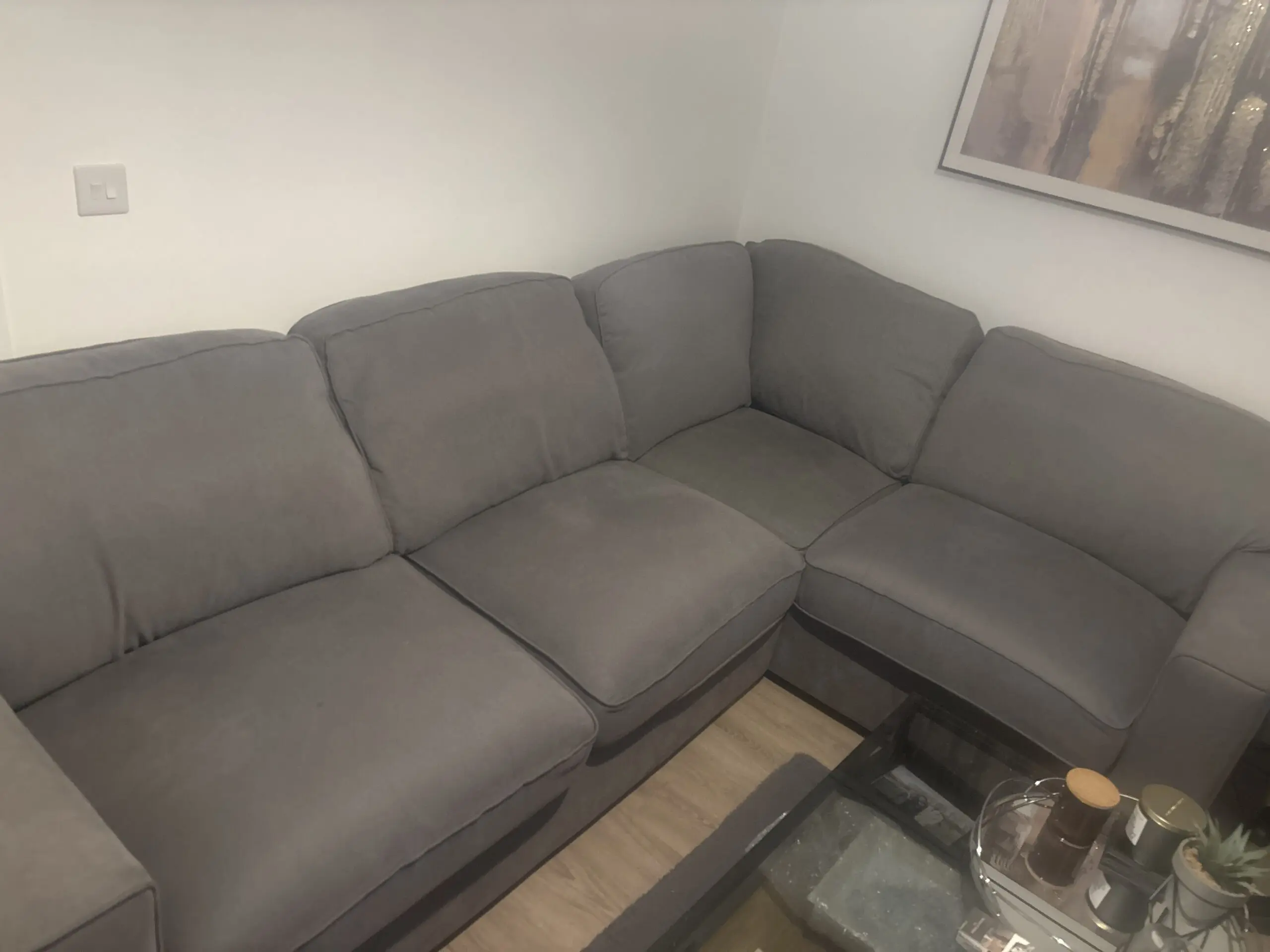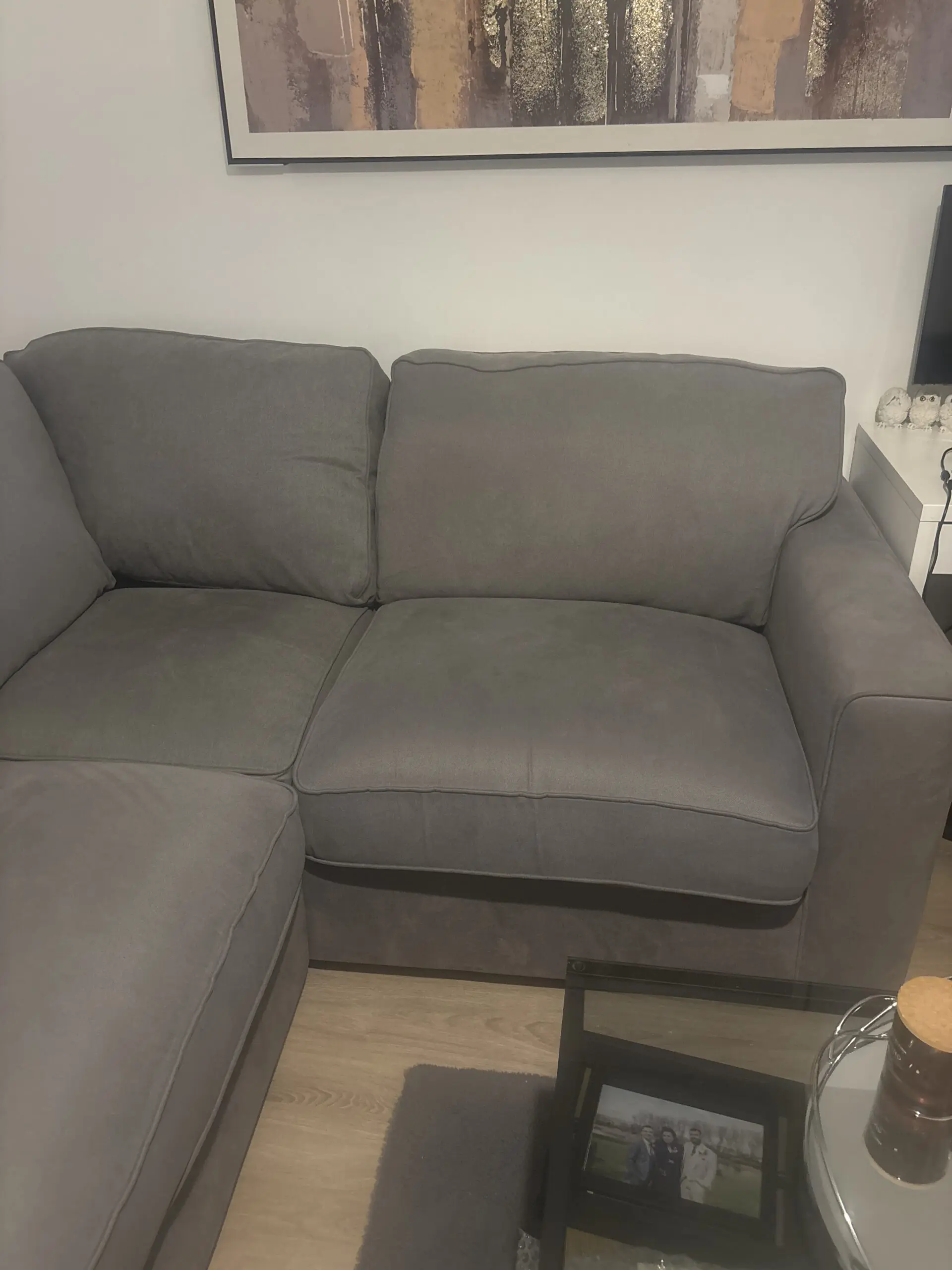 Grey RH corner sofa from Furniture Village with added foam flex. Depth of return is 195cm. Only selling due to not fitting in the lounge space. Covers are machine washable