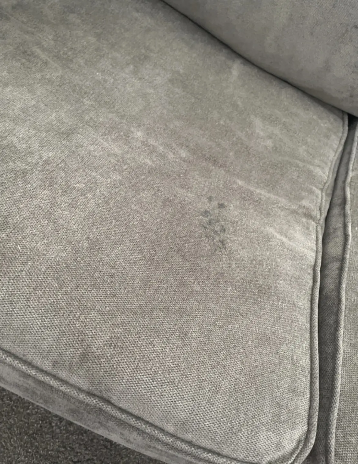 Mark on sofa, as see on picture but just need to get some remover as is glue, I’ll do it before sold but just incase I just want to be honest but will be able to get out.