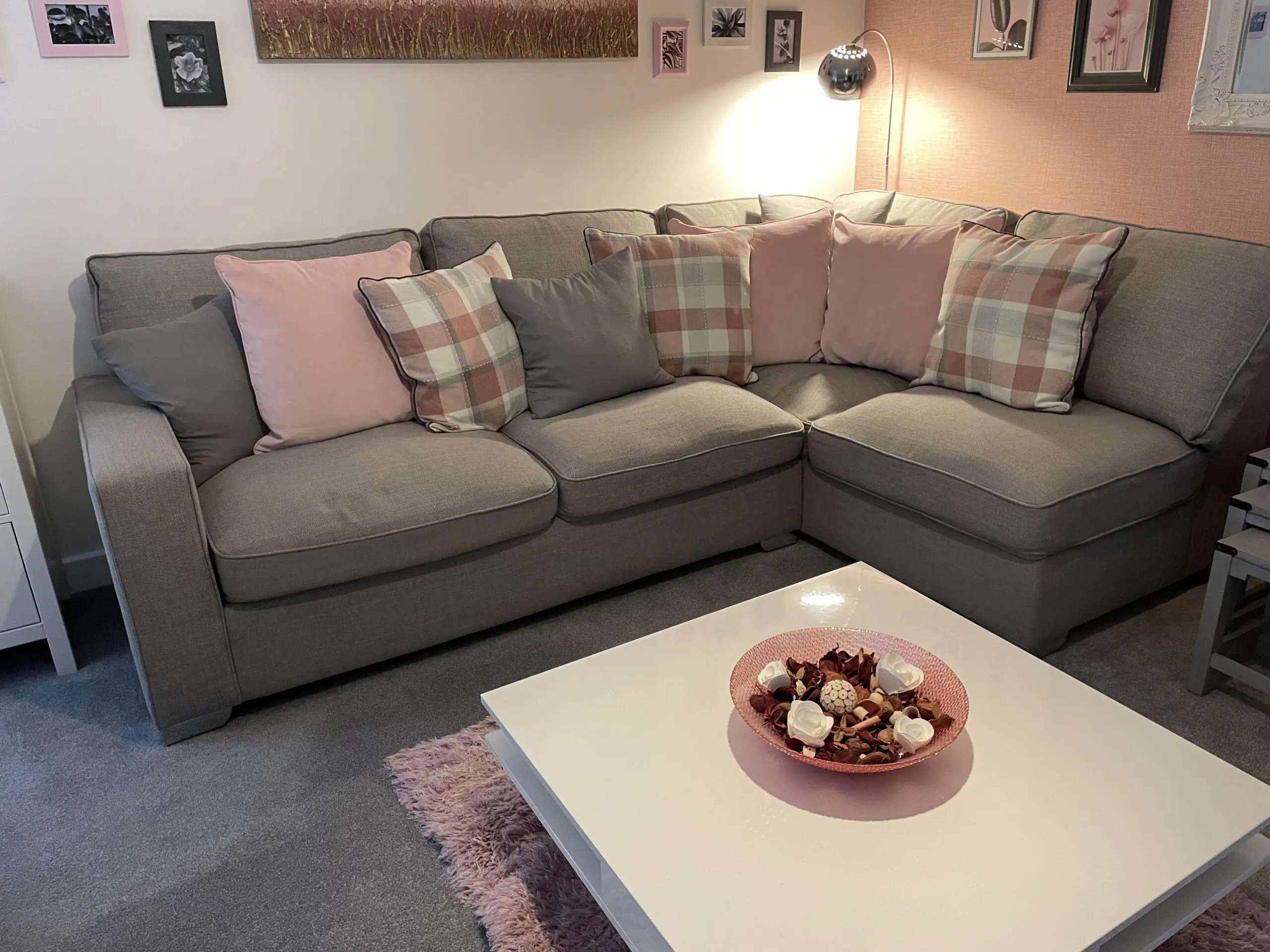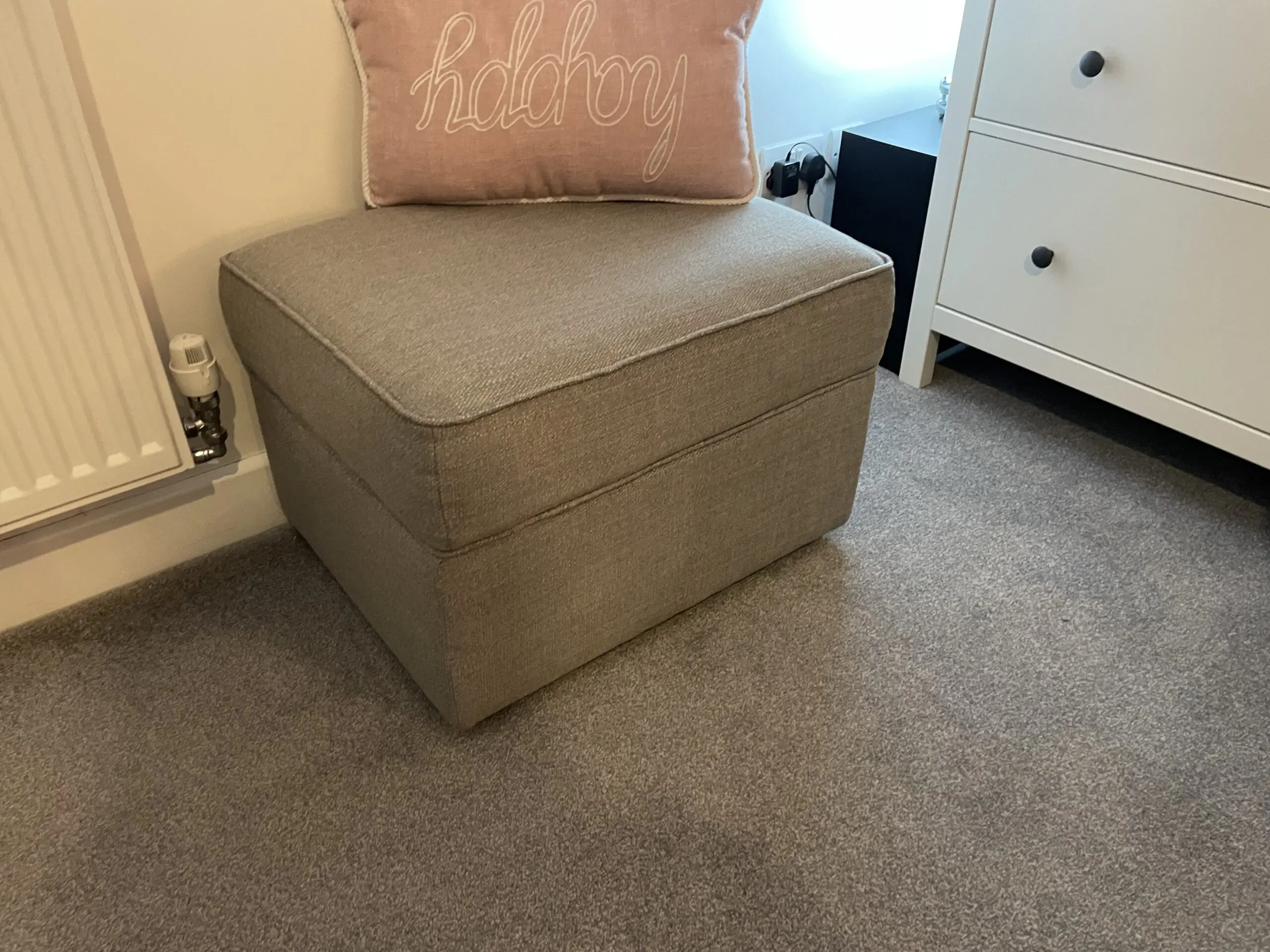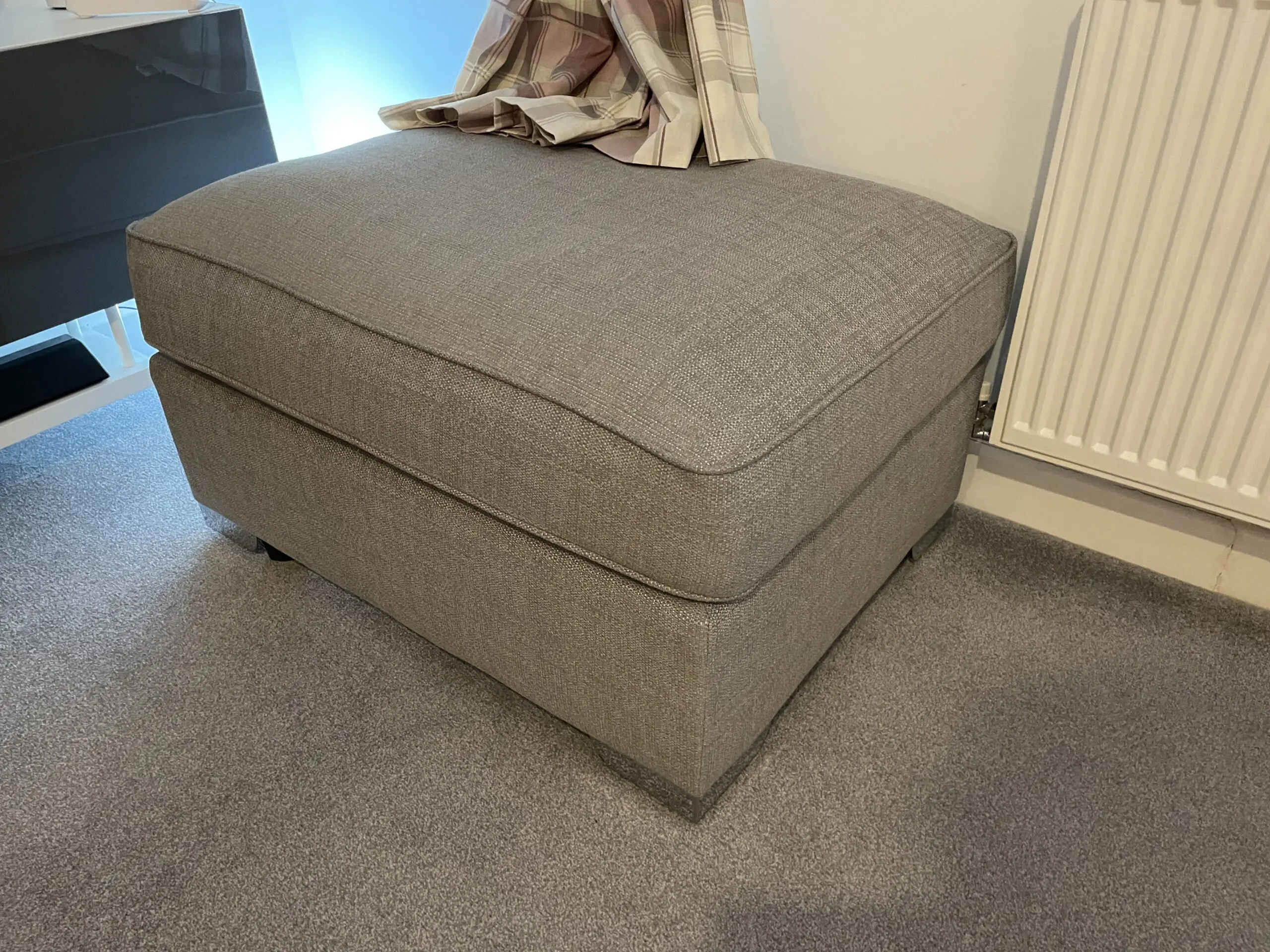 Right hand corner sofa, chair, storage footstool and banquette.